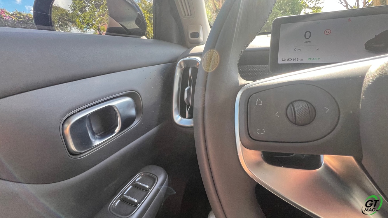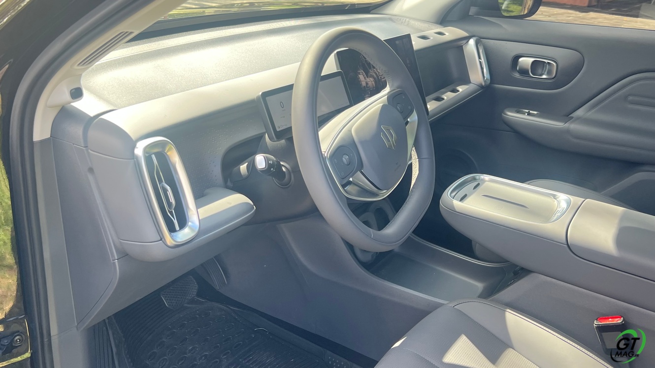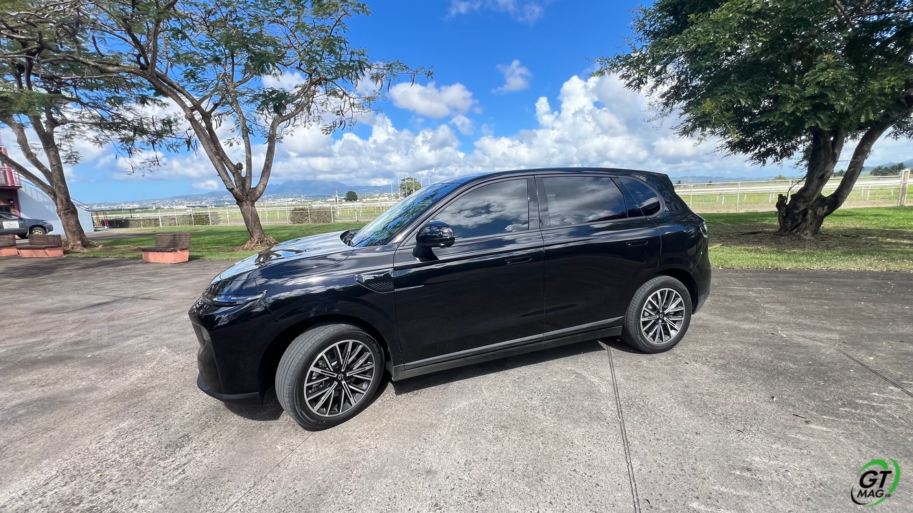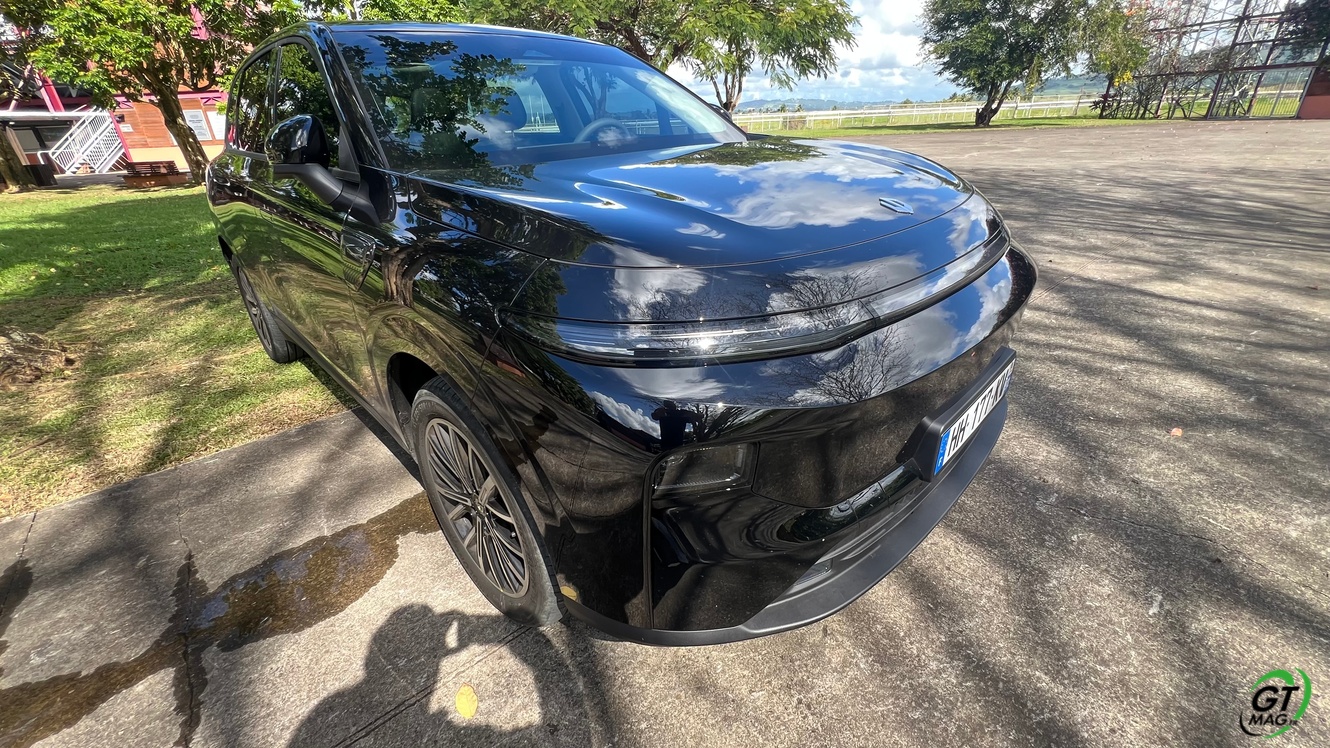 Les Leapmotor B10 et C10 partagent une plateforme et leurs technologies. Pas étonnant donc de retrouver le moteur électrique de 218 ch sur le train arrière du petit crossover. Il présente aussi une suspension McPherson à l’avant, 5 bras à l’arrière et même une répartition du poids 50/50. Ce dernier élément est sans doute aidé par les batteries. Eh oui, il y a en a deux au catalogue on l’a vu. En Martinique la grande batterie présente une capacité de 67,1 kWh, ce qui lui permet d’offrir une autonomie de 434 km. Elle charge à 168 kW elle prendra 20 min pour passer de 10 à 80 % de charge sur une borne rapide. Côté consommation et d’après mes petits calculs, il faudra toutefois tabler sur un appétit moyen gravitant autour des 16 à 18 kWh/100 km, soit près de 360 km à 390 km d’autonomie. Ma conduite, mon style ont été plutôt raisonnable flirtant parfois avec une écoconduite que je maitrise très bien, mais aussi des moments d’accélérations voulues et prolongées sur notre rocade ou autoroute…