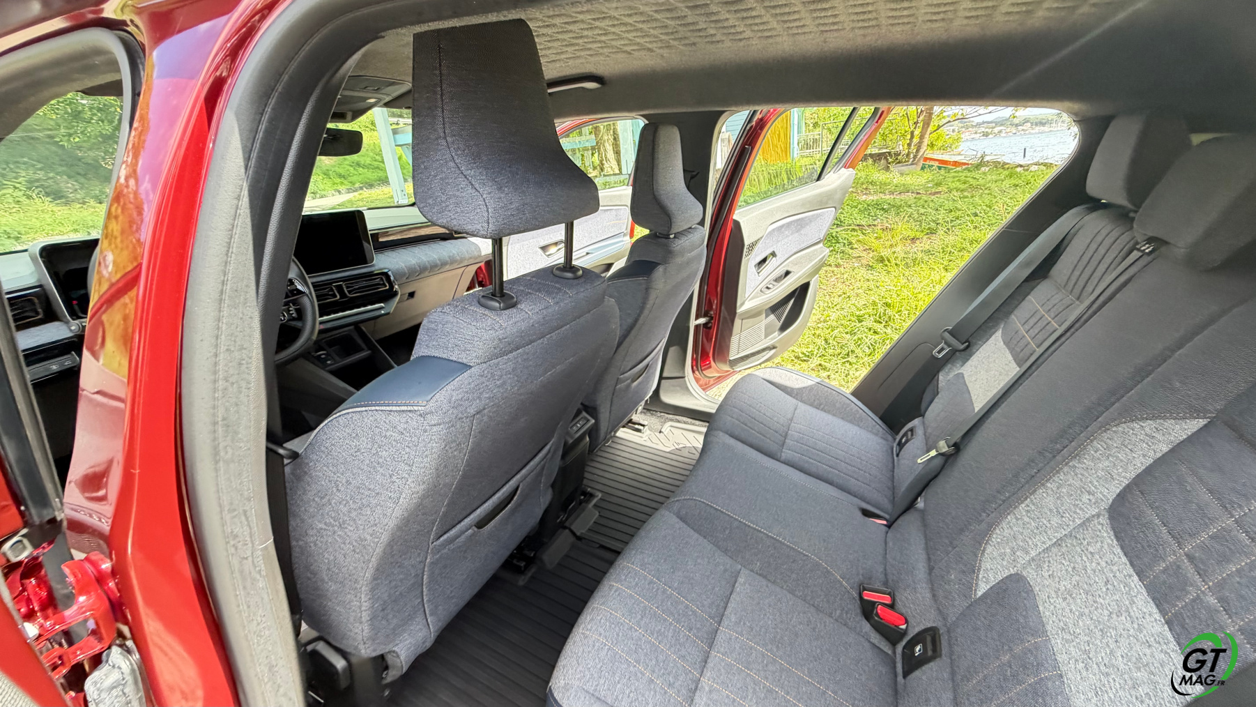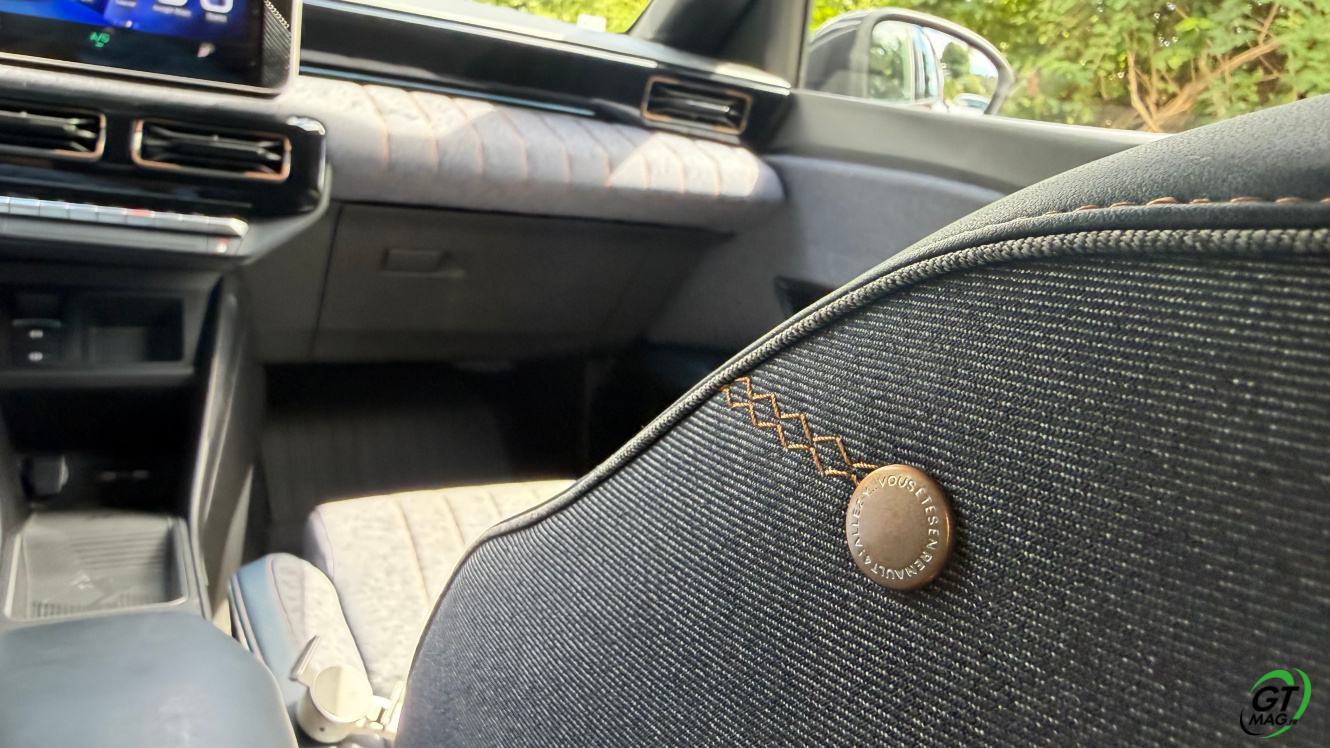 Notre version de la Renault 4 E-Tech se distingue grâce à des jantes alliage 18 pouces diamantées noires Sixties, une antenne requin plus moderne, ainsi que des barres de toit longitudinales en aluminium noir, à la fois esthétiques et pratiques. La sellerie adopte un look plus recherché, avec un textile 100 % recyclé façon jean matelassé, contrasté par un textile refined bleu foncé et des surpiqûres cuivrées apportant une touche chaleureuse. L’ambiance intérieure gagne en sophistication grâce à l’éclairage à LED, y compris un éclairage d’ambiance 3 zones, qui contribue à un ressenti plus haut de gamme, notamment la nuit.