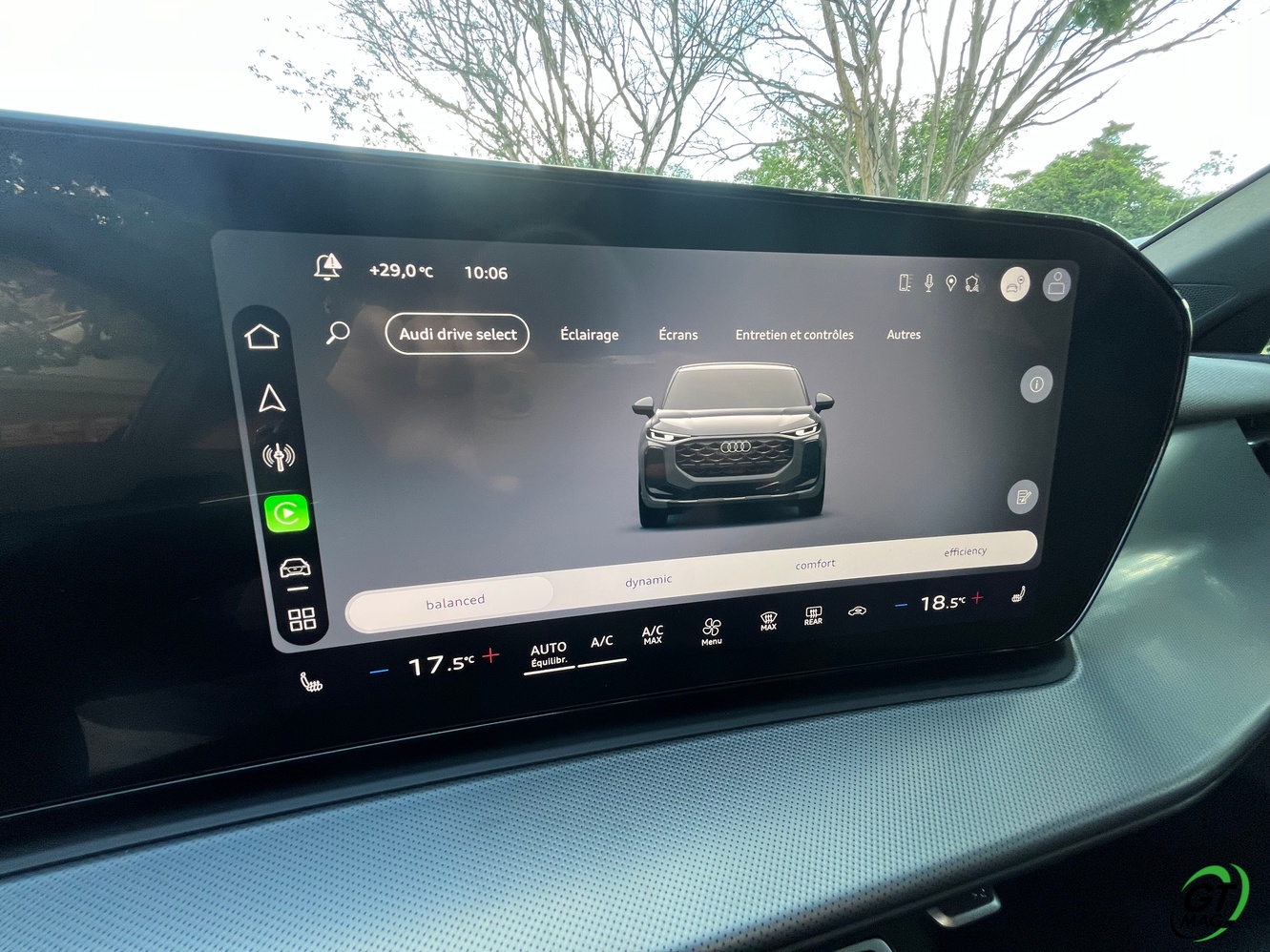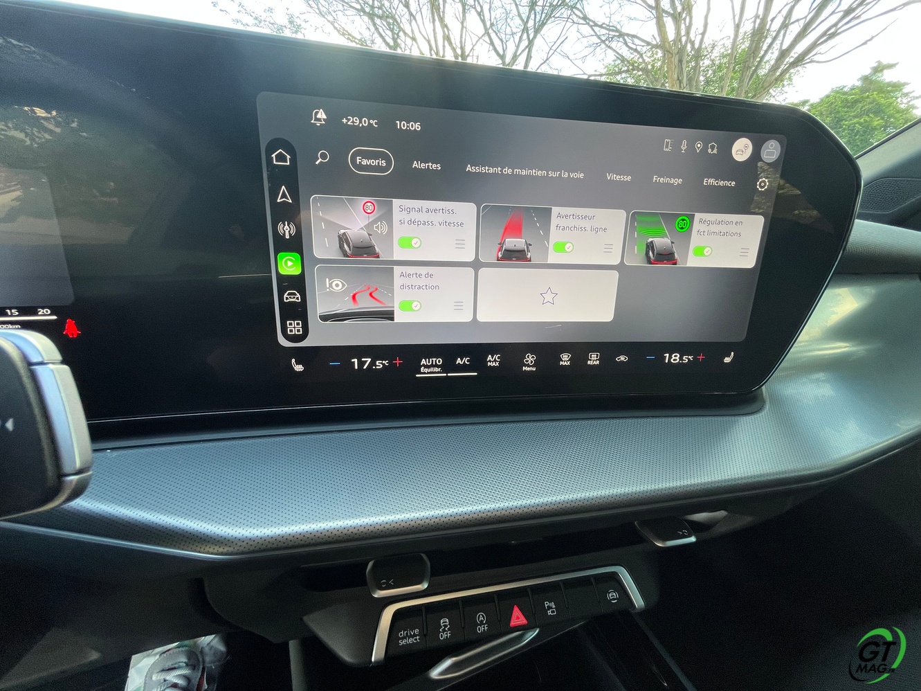 Le système Audi drive select introduit le mode Balanced en remplacement du mode automatique. Ce mode représente l’équilibre optimal entre dynamique de conduite et confort, activé par défaut au démarrage. Les conducteurs peuvent le configurer selon leurs préférences individuelles via le MMI. La suspension de série a été développée pour améliorer l’expérience de conduite. La suspension adaptative optionnelle réagit en continu aux caractéristiques de la route, calculant l’amortissement idéal pour chaque roue en une fraction de seconde. Les amortisseurs à double valve permettent un contrôle séparé des phases de rebond et de compression, optimisant la dynamique tout en préservant le confort. Le châssis parfaitement équilibré propose une conduite sûre et dynamique avec une place pour l’intuitif laissant au conducteur le choix d’une conduite sportive précise et accrocheuse ou des solutions de conforts optimales pour une écoconduite plus sobre et plus confortable pour les passagers… A vous de voir et de l’essayer… TOUS NOS ESSAIS AUDI SUR GTMAG.fr ICI !!!