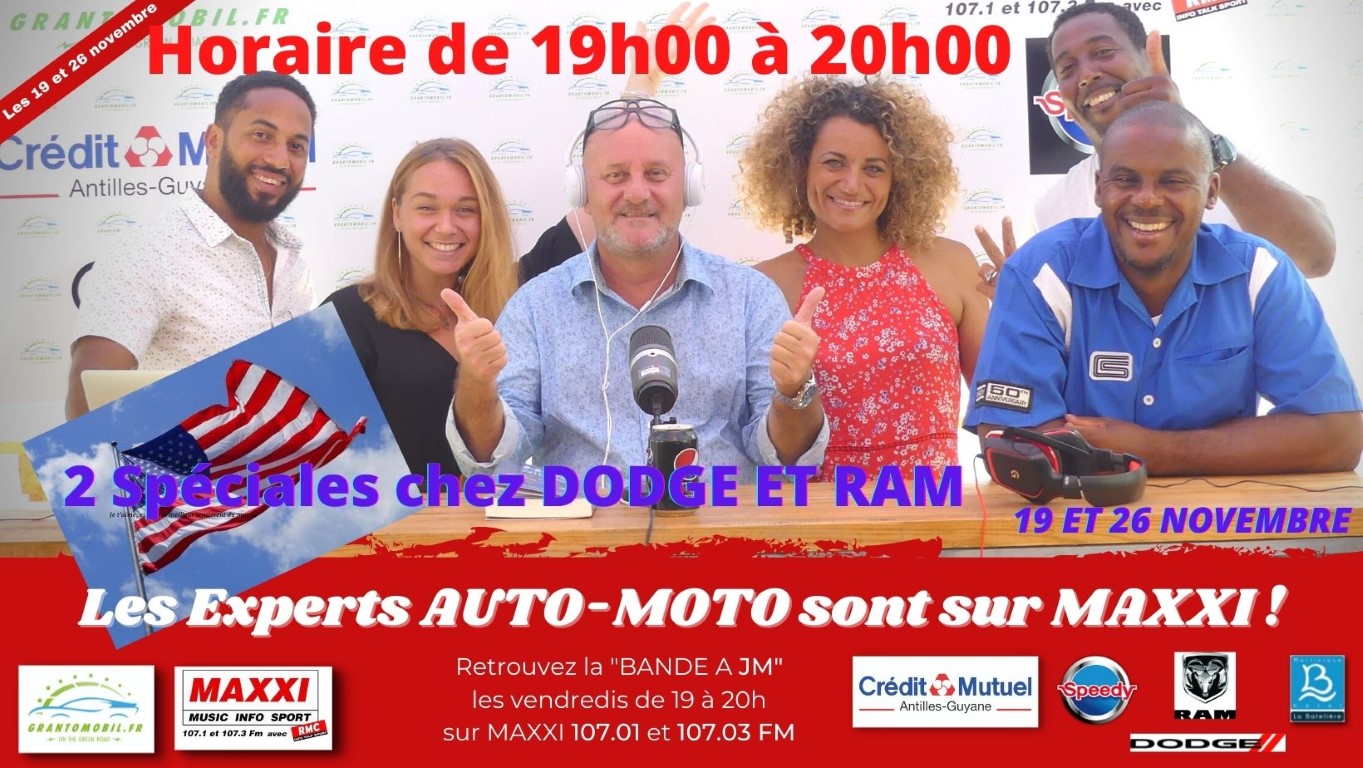 Ce vendredi www.grantomobil.fr est avec La bande a JM sur MAXXI Martinique pour une seconde spéciale chez #DodgeRamAntilles c'est sur MAXXI Martinique !!! Nous serons avec #ManuelBernard responsable des ventes de la nouvelle #concession très #américaine zone des Mangles... Nous parlerons de voitures des #usa surnommées affectueusement #BigMama avec #EléonoreThéodose Steeven Orosemane Cpte Perso nous parlera #MonsterTruck et #Nascar et nous recevrons ...