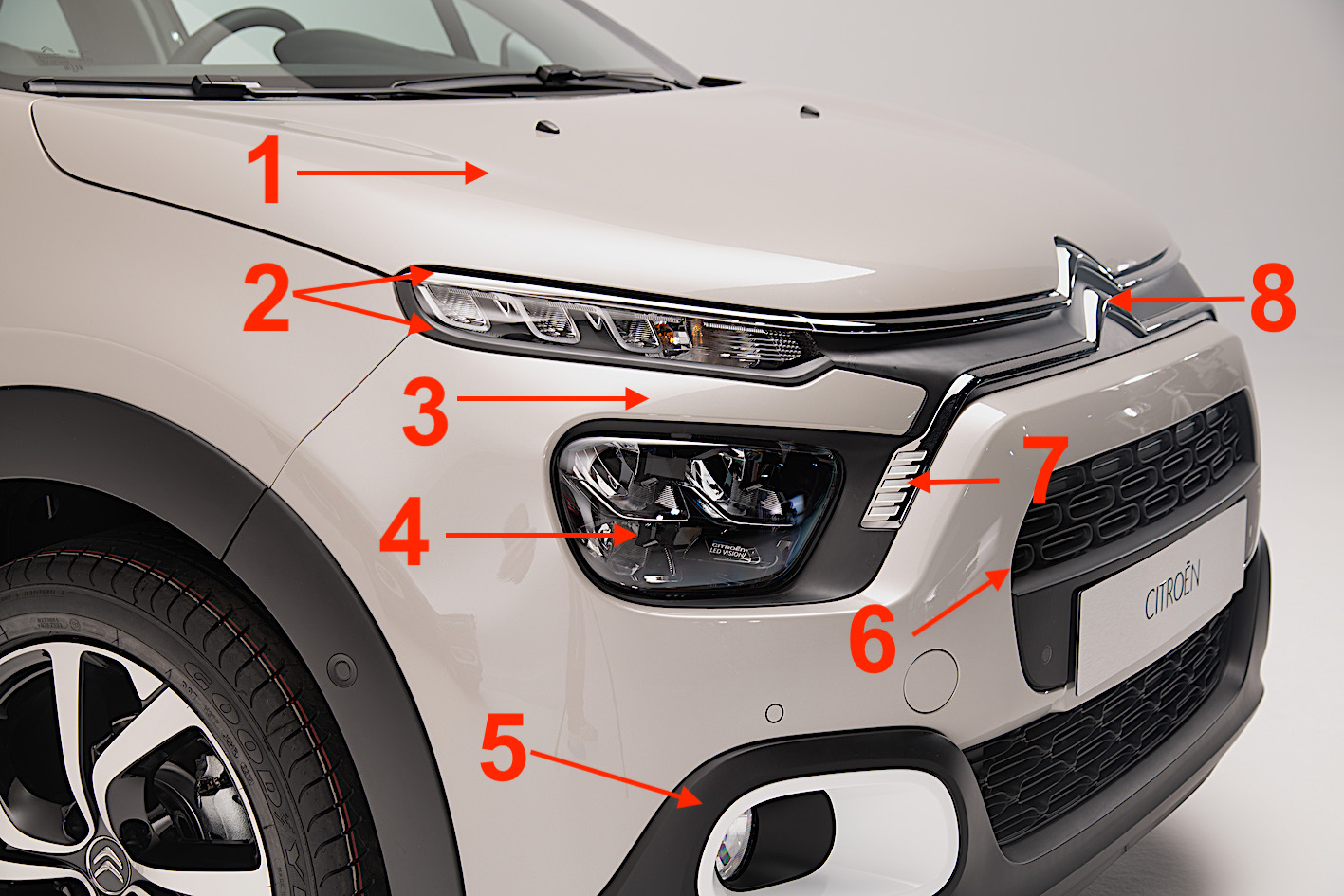 2- Deux nouvelles pièces sont crées pour entourer les feux de jour auparavant bordés par l’aile du chevron.