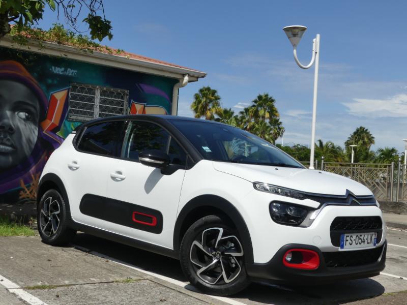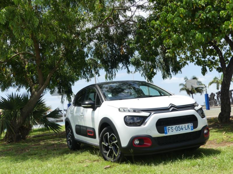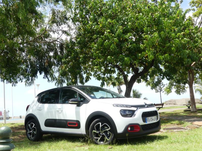 Retour chez Sodiva Citroën après la conférence de presse que nous vous avons proposé mardi dernier à l’occasion du 5ème rallye Ho Hio Hen avec l’ASA TROPIC que vous pouvez retrouver ici… Après la très belle réussite de la nouvelle C3 près de 750.000 exemplaires ont été écoulés depuis le lancement de la troisième génération à l’automne 2016 et elle figure à la quatrième place des ventes dans l’Hexagone au premier semestre 2020, selon les chiffres publiés par le CCFA (Comité des constructeurs français d’automobiles). La voici re-liftée à la fois pour continuer son chemin stylistique et collé aux nouvelles tendances du segment pour également aller grappiller des parts de marché à la 208 et autre Clio, les deux citadines qui lui contestent encore le haut du podium… Départ de chez Citroën Martinique