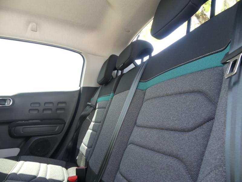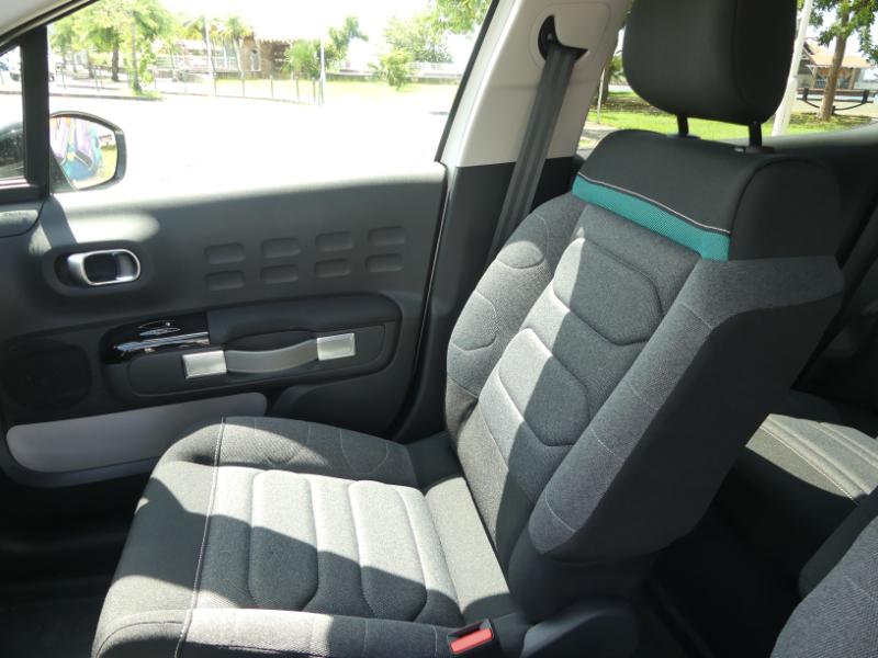 Citroën joue sur ce qui fait la réputation de ses modèles et donc aussi sur de nouvelles possibilités de personnalisation (97 combinaisons désormais !), deux nouveaux coloris (Spring Blue et Rouge Elixir) et deux jeux de jantes inédits comme je vous l’écrivais. Ensuite, cette nouvelle C3 accueille plusieurs décors intérieurs, dont un placage ton bois clair sur la planche de bord. Mais c’est surtout le système « Advanced Comfort » qui fait la différence, issu des C4 Cactus et C5 Aircross. Comprenant des sièges plus moelleux qui passent de 5 à 15 mm d’aipaisseur mais aussi un maintien latéral renforcé (mais pas la suspension à butées hydrauliques), il peut se compléter par un accoudoir central en option. Une inédite aide au stationnement avant complète le tout.