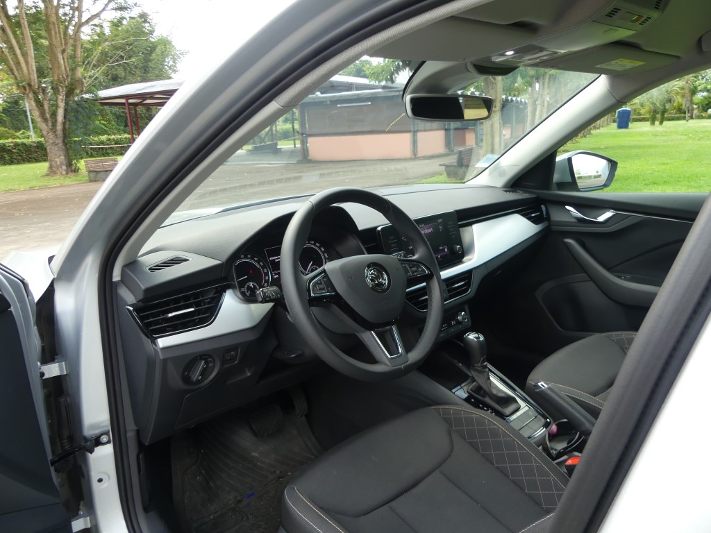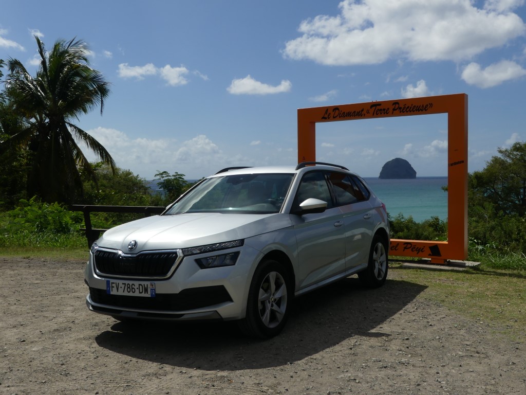 D’apparence sobre, le poste de conduite est clairement agencé. Les matériaux de bonne qualité côtoient un large écran tactile ainsi qu’une instrumentation digitale élaborée d’un maniement intuitif. Le faible niveau sonore à vitesse constante procurent un appréciable agrément de marche, notamment sur notre autoroute. En utilisation urbaine, le Kamiq s’avère fûté et capable de se faufiler dans les ruelles de Fort de France en restant sobre… Départ du Lamentin en Martinique pour nos routes du bord de mer…
