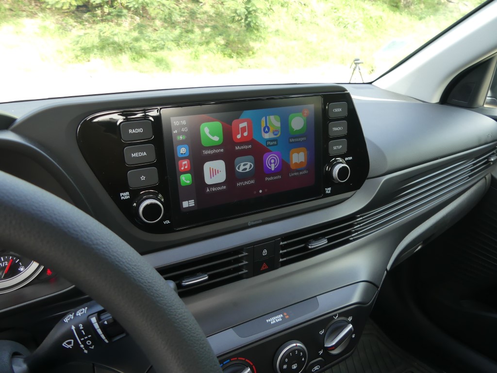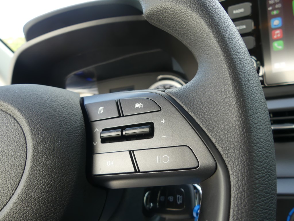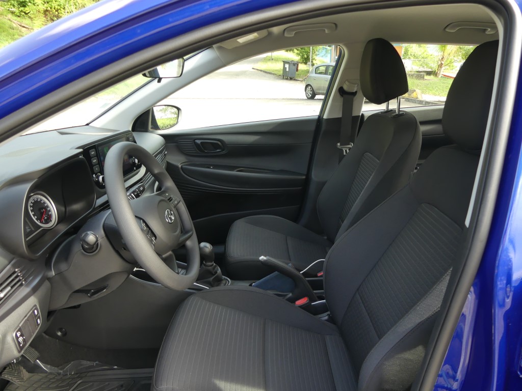 A l’intérieur, la dotation se compose de la climatisation, des quatre vitres électriques, de la radio, des feux automatiques, du maintien dans la voie ou encore du freinage d’urgence automatique. Sans parler de l’habituelle garantie cinq ans de la marque. Plus polyvalent, le 1.0 turbo de 100 ch est disponible à partir du deuxième niveau, Intuitive, à dotation identique. La version haute Executive grimpe au tarif avec le même 1.0 100 ch, associé de série à une boite automatique à 7 rapports sur cette finition. Les options sécurité offre un panel d’aides à la conduite sur la i20 : aide au maintien de la trajectoire (LFA), aide anticollision dans les angles morts (BCA), alerte anticollision de trafic transversal arrière (RCCA), régulateur de vitesse intelligent basé sur la navigation (NSCC), aide anticollision en marche arrière (PCA-R), alerte de départ du véhicule qui précède (LVDA), limiteur de vitesse intelligent (ISLA)…