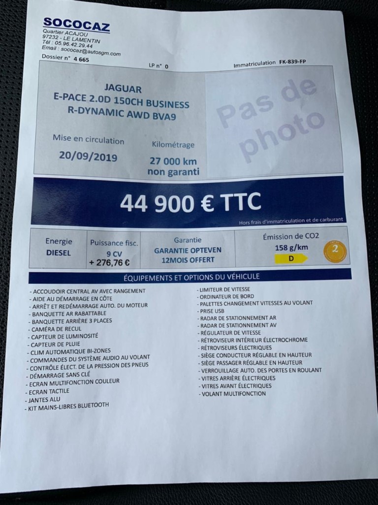 A SAISIR JAGUAR E-PACE 2.0lD 150ch BUSINESS AWD BVA9