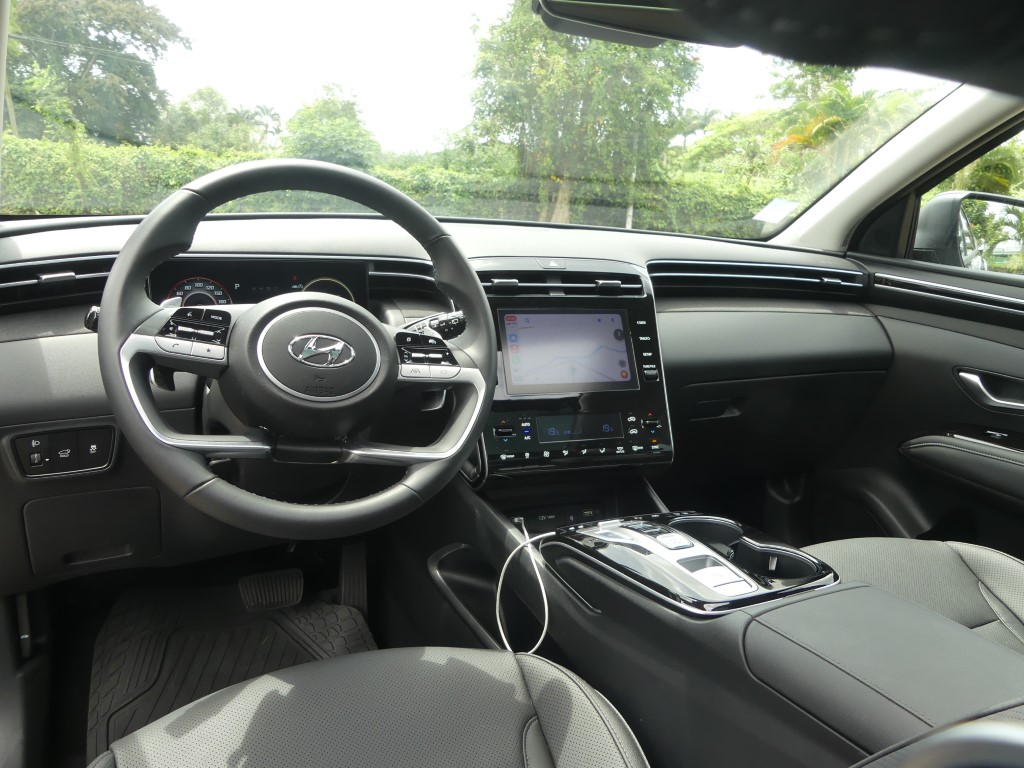 Mais en ce début d’année en Martinique, c’est au tour du best-seller de la marque d’entrer dans la danse, à savoir le Tucson, alors qu’il s’offre une toute nouvelle génération, dévoilée au début du mois de septembre 2020. Une quatrième génération, en comptant l’ix35 produit de 2010 à 2015 qui fait le plein de nouveautés sur tous les plans, avec un but : se rapprocher des leaders du segments, et notamment de la star incontestable : la Peugeot 3008, tout juste restylée l’été dernier. Le Tucson coréen est un peu plus long. Ce qui lui permet d’offrir une large habitabilité, avec en particulier une généreuse place pour les jambes à l’arrière. Bon progrès en confort : la suspension tolérante encaisse bien la plupart des inégalités. Le silence est aussi appréciable, à moins de pousser très haut le régime moteur. Bizarrement, la banquette manque de moelleux. Son dossier s’ajuste en inclinaison, ce qui module un peu le volume du coffre, bien loti d’origine.