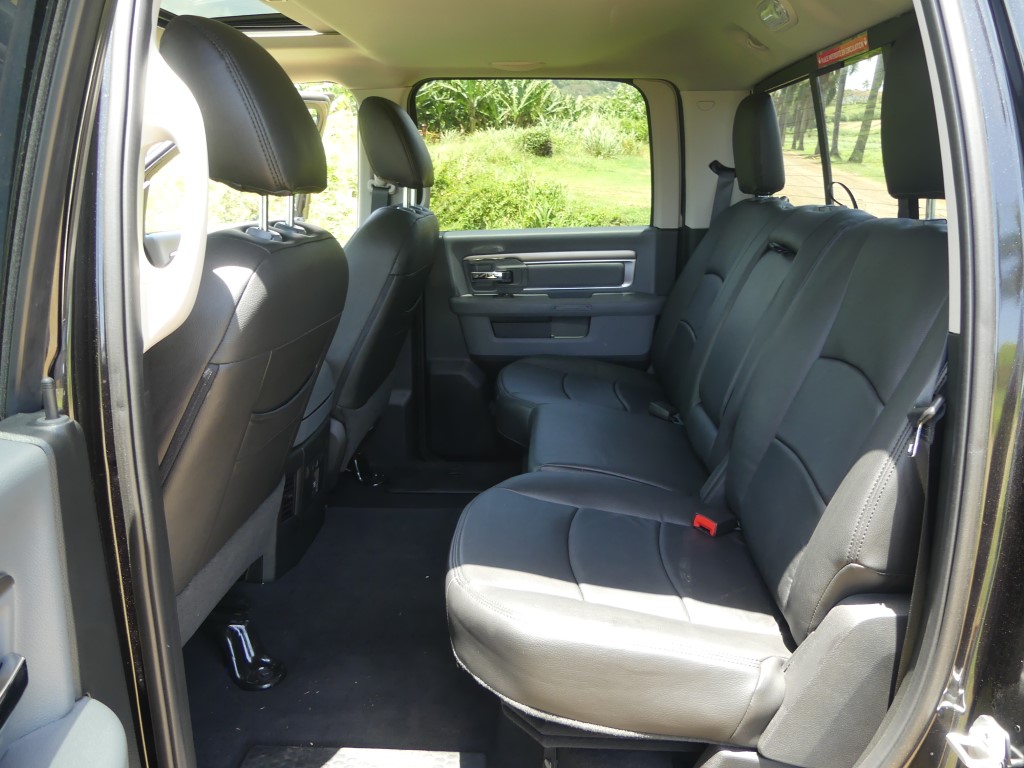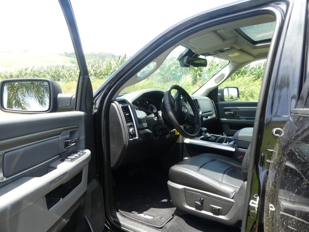 La dernière génération du système primé Uconnect englobe tout, allant de la connectivité cellulaire intégrée aux réglages personnalisés ou pour les caractéristiques disponibles comme les sièges chauffants/ventilés, Keyless Enter’n Go (accès et démarrage sans clé) et bien plus encore. De plus, sur les modèles comprenant une finition haut de gamme (Longhorn, Limited…), le véhicule dispose du plus grand écran tactile reconfigurable disponible, ayant une taille de 12 pouces (avec écran d’accueil personnalisable à touche unique selon les finitions), ce qui permet aux occupants d’avoir une meilleure maîtrise et visibilité des différentes fonctionnalités (navigation, système audio…). En matière de confort, étant donné qu’il s’agit d’une camionnette pleine grandeur, oubliez les supports lombaires et une position cintrée. Par contre, même après plusieurs heures au volant en Martinique, on se sent bien, preuve que RAM a élaboré de bonnes assises. À ce titre, ils sont chauffants et massant. Avec le RAM 2019, dans sa livrée Limited, tout l’équipement dont on peut rêver se retrouve à bord. Franchement, on en vient presque à se dire qu’on est dans un produit de luxe plus que dans un camion.