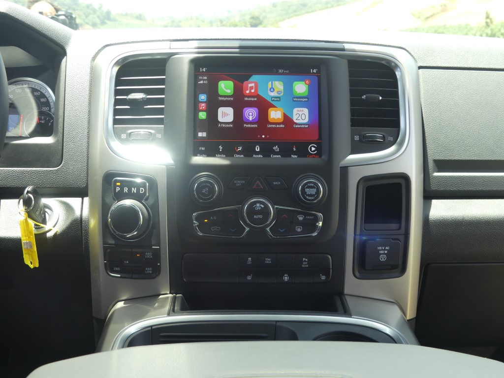 Comme nous le savons, la première production du RAM 1500 intègre pas le fameux système « eTorque mild-hybrid » qui permet un couple électrique supplémentaire grâce à l’apport d’une pile de 48 volts pour la première moitié de tour de roue. Le système se montre plutôt bienvenu et contribue à faire descendre la consommation de la bête. Rappelez-vous sous le capot de notre version, on retrouve l’éternel V8 HEMI de 5,7 litres avec sa tonitruante puissance de 400 chevaux et un couple de 555 NM. Provenant de la précédente génération, la boite automatique à huit rapports revient et c’est parfait. Le mariage de ce V8 et de cette 8 vitesses fonctionne particulièrement bien. Afin de se donner une certaine conscience écologique, le système propose la désactivation des cylindres comme nous l’avons vu. Sur ce point, RAM n’a pas mis en place un vrai mode ECO qui aurait « forcé » un peu plus souvent la désactivation. Dans les meilleures conditions routières possible, le régime ECO en vert apparaît que très rarement sur l’écran. De la même façon il n’y a pas de mode « Sport », comme on le voit souvent dans la grande famille des Pick-up. Étant donné que la mécanique est puissante, cette option aurai sûrement apporté des salves de puissances en sus. Au terme de l’essai en trajet mixte, nous trouvons une sûre moyenne de plus de 12.5 litres/100 km. Sa ka maché !