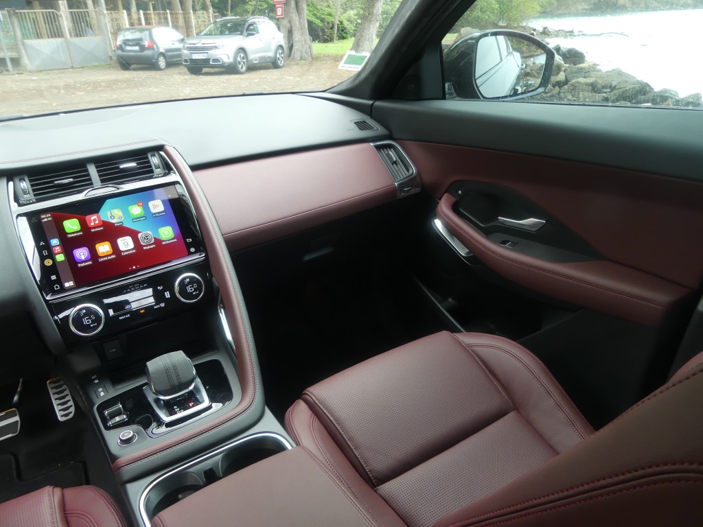Dans l’habitacle, l’interface avec le conducteur derrière le volant passe au tout numérique, sur un écran de 12,3 pouces doublé d’un affichage tête haute. Un écran tactile central plus grand de 11,4 pouces contre 10 pouces auparavant fait également son apparition au niveau de la console centrale. Ce dernier est traité chimiquement pour plus de résistance et revêtu d’une couche anti-reflets et d’une couche anti-traces. Il intègre une interface multimédia de dernière génération (Pivi Pro) avec mises à jour à distance. La molette centrale des commandes de climatisation disparaît tandis qu’à la base de la console centrale, un chargeur à induction est intégré. Les variantes à boîte automatique du E-Pace s’équipent d’un nouveau levier de vitesses plus bas et plus large, comme sur les XF et F-Pace restylés.