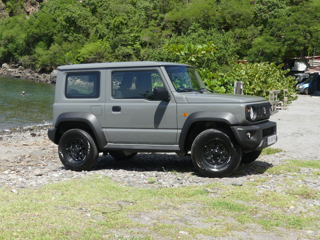 Avec ses 3,65 mètres de longueur et son étroitesse 1,64 mètres avec son tout juste 1,72 mètres de haut, le petit Suzuki 4x4 vient jouer dans la cours des grands SUV citadins avec quelques atouts à leurs dépends et du fait de son concept… Atouts qui vous seront fort aises, quand la bise sera venue, pour vous, heureux utilisateurs, qui pourrez à votre aise vous faufiler à travers les étroites ruelles de Fort-de-France tout comme celles tout aussi étroites de Saint-Joseph… Remarquez que ces avantages ne sont pas seuls adages, car le petit costaud de par ses bienvenus gènes, ne rêve sortie de la ville que d’espaces verts entre des Mornes et, bien sûrement, de tous les gravir…