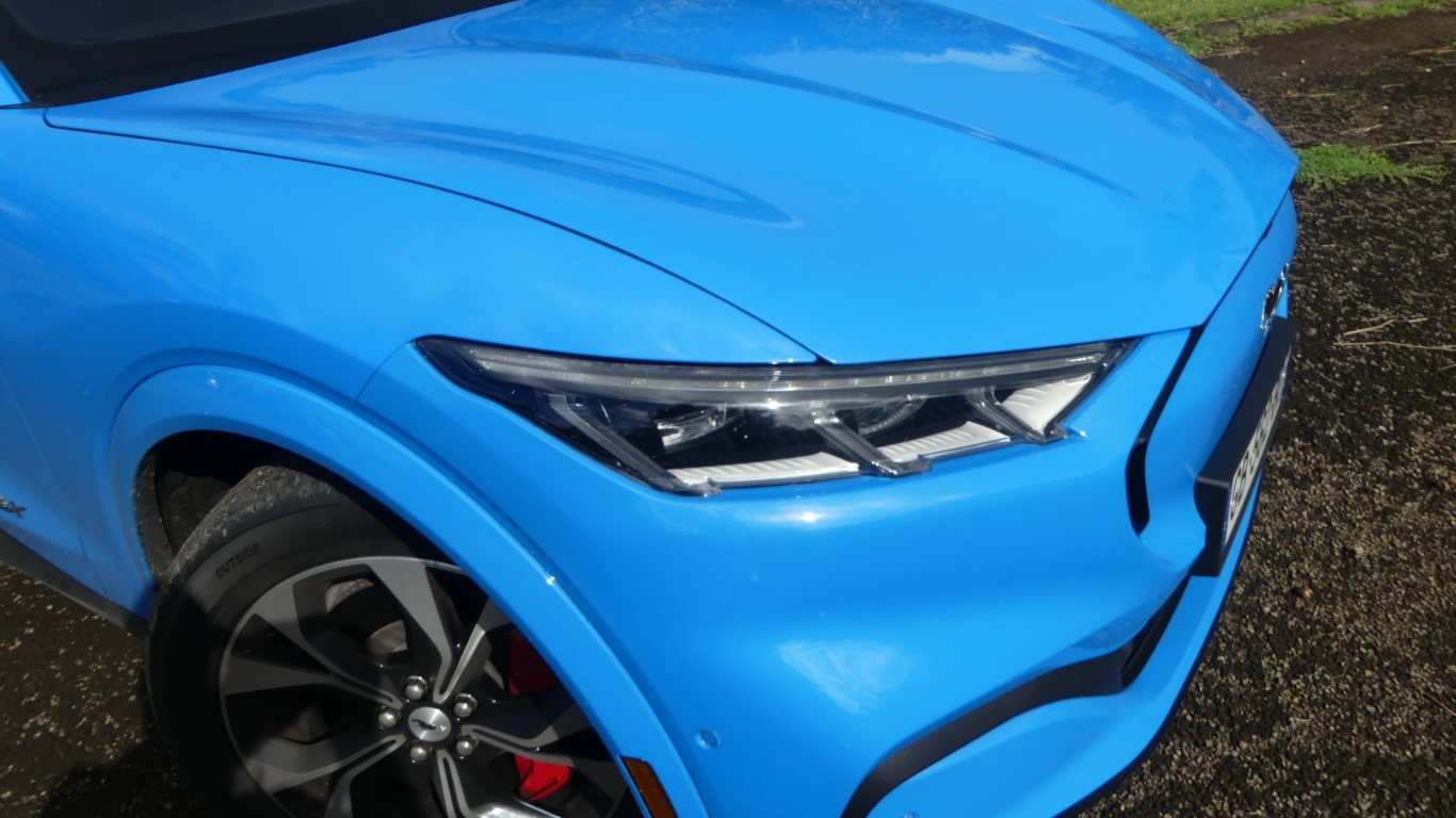 D’entrée de jeu le Match-e peut vous surprendre technologiquement à propos d'ouverture, en effet le SUV FORD MUSTANG est dépourvue de poignées classiques. Il propose plutôt un système qui permet de tirer la porte qui s'entrebâille automatiquement en appuyant sur le bouton E-Latch qui est intégré juste au-dessus sacrée première impression. Autre solution, la fonction Phone as a Key avec votre smartphone. Une fois ce dernier appairé en Bluetooth avec la voiture, il peut rester dans votre poche et fait office de clef tout ce qu'il y a de plus classique. Le monde d’après est déjà en Martinique il suffit de le savoir… Mon autre impression qui aurait du être la première ce sont ses lignes à ce sacré SUV Ford Mustang Match-e et voyez vous même… Avec un museau plongé vers le bitume naturellement existant, titillant, enivrant, avec son air de voiture de course des années folles…