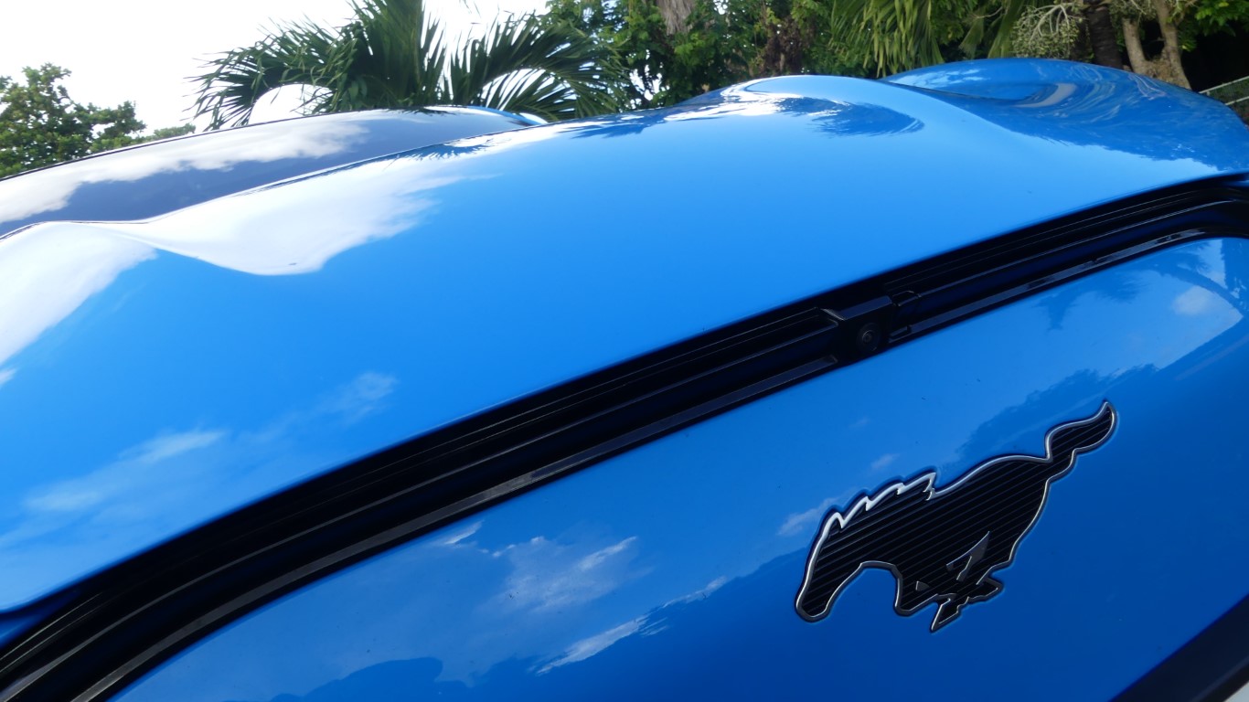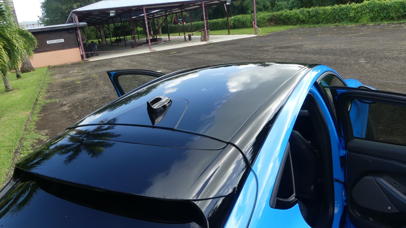 Mais revenons à notre Mustang du jour aux Antilles… C’est sans doute aussi notre modèle et sa couleur qui le rend encore un peu plus séduisant et un brin taquin. Je suis bluffé sur le parking de Centre Auto par la carrure bombée de ce prince charmant et par la stature de l’engin. Regardez,le Mach-e en impose avec des dimensions de 4,71 x 2,097 x 1,93 m, ses ailes élargies, ses lignes saillantes sur le capot et encore son imposante calandre. Une espèce de mélange savant entre hauteure des lignes et cambrure nostalgique qui fait irrémédiablement appel à nos souvenirs d’enfances, allé... J’ose… Ce SUV Mustang, dans la minute, provoque en moi une remonter soudaine de souvenirs à ‘cheval’ entre la Ford mustang 1967 au museau fuyant tout en longueur et la Jaguar Type E Serie III mais, toute deux qui aurait pu être dessiné par Ferdinand Alexander Porsche puis façonné par Enzo Ferrari… Ce SUV Ford en serait du coup le résultat étonnant… Félicitations aux ingénieurs de Ford plutôt sacrément bien inspirés… Bref, histoire d’impressions... Pour moi ça le fait, ça le fait très bien en Martinique…