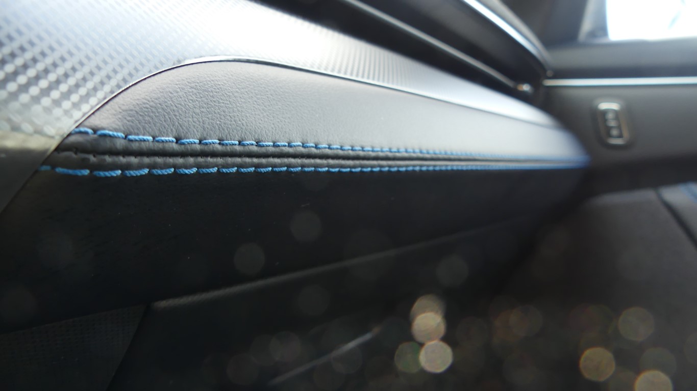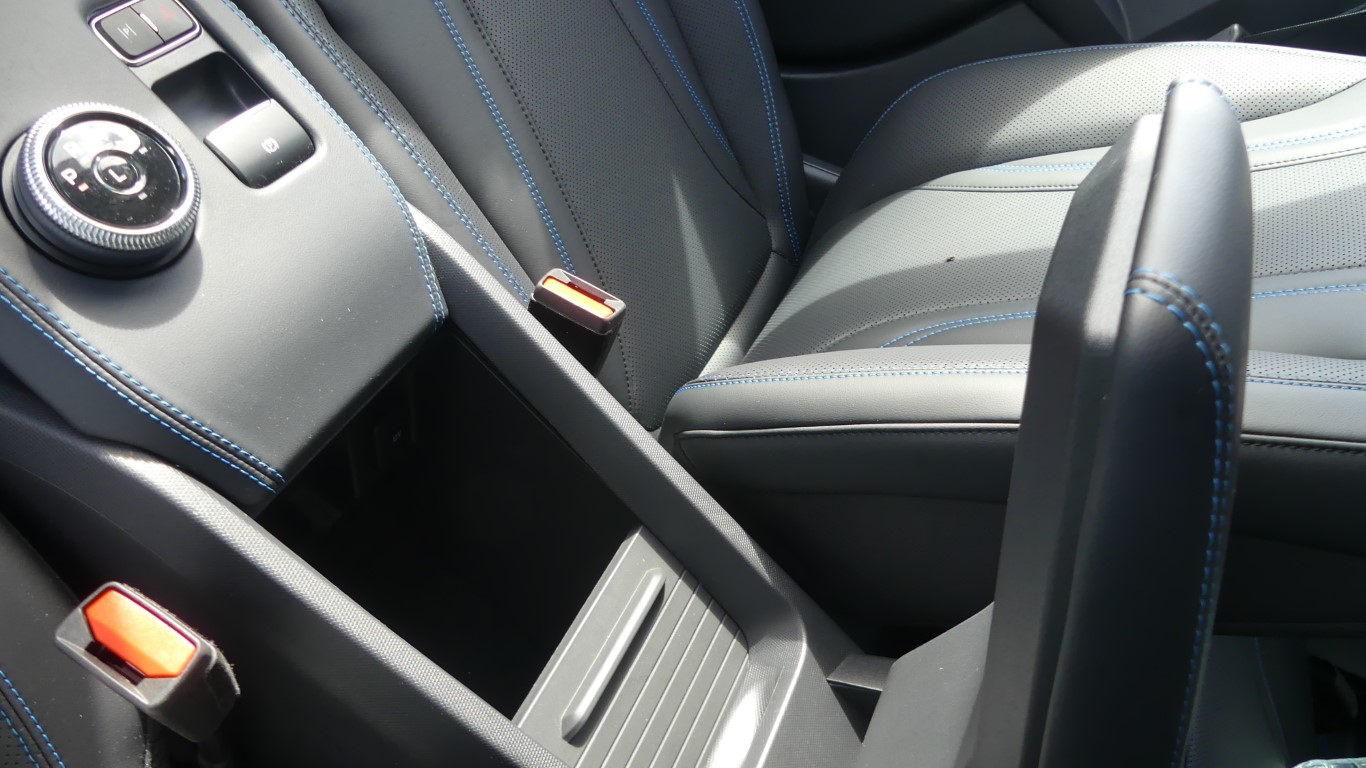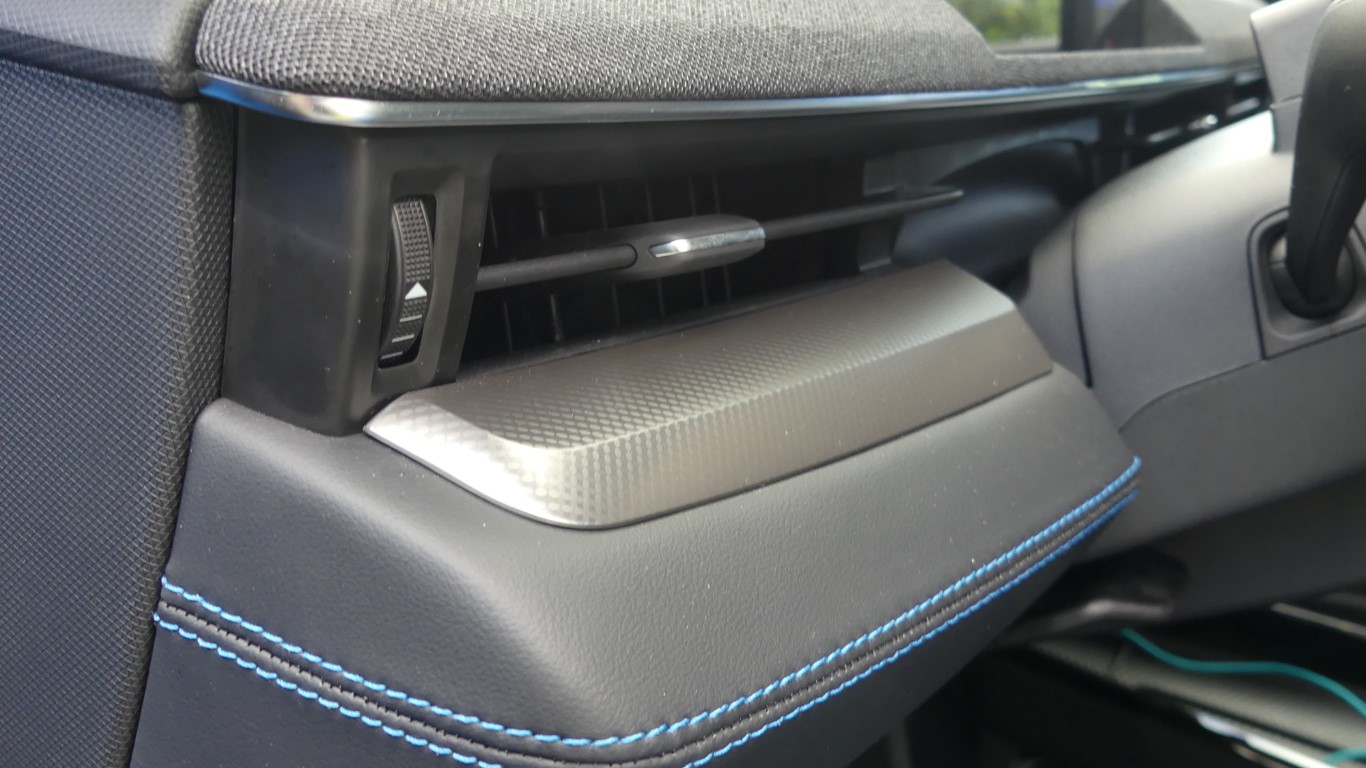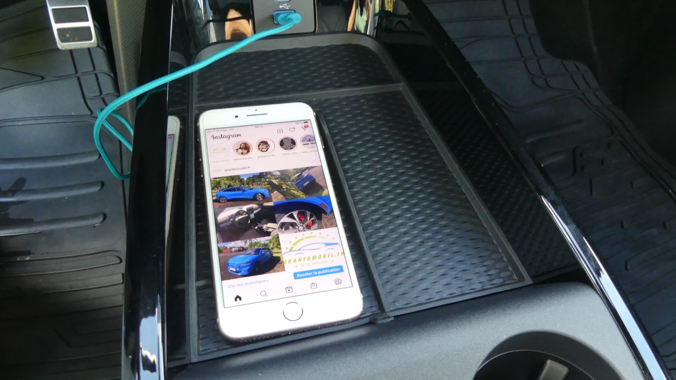 Cet espace à été plus grand afin d’afficher les informations les plus utiles, qu’il s’agisse du GPS, de CarPlay ou d’Android Auto par exemple. Pour finir, les réglages de la voiture sont accessibles via un volet qui prend place tout en haut de l’écran. L’affichage bénéficie d’une définition et d’une luminosité adaptées (notamment pour ne pas voir les traces de doigts). Nous n’avons pas déploré de reflets et un mode nuit est également prévu qui peut aussi être activé manuellement. L’instrumentation est également au format numérique avec un écran plus petit en mode paysage. Placé derrière le volant, il est parfaitement lisible et regroupe toutes les informations utiles : autonomie, vitesse, limitation de vitesse actuelle et rappel de navigation.