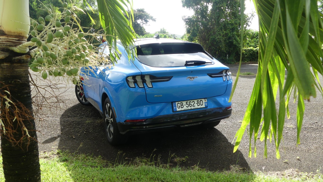 Dès l’activation des batteries, le SUV Mustang s’élance j’apprécie le silence à bord et l'accélération fulgurante, l’absence de vibrations et la bonne souplesse du moteur grâce au couple (580 Nm). Le châssis ayant fait l’objet d’attentions toutes particulières, il offre un compromis très séduisant entre confort et sportivité (0 à 100 km/h avalé en 5’’1). En utilisation sur nos bourgs, j’ai vraiment remarqué la bonne maniabilité et la légèreté de la direction. Pour qui recherche un SUV électrique à la fois performant (trois modes de conduite ), plaisant à conduire et doté d’une belle autonomie, la Mustang Mach-E est un choix d’autant plus crédible qu’il est profite d’une garde au sol plutôt inintéressante merci pour Madame... De plus pour notre île il est plutôt facile à manier au quotidien. Du reste il se positionne en vrai rival de la Tesla Modèle Y difficile à trouver chez nous mais aussi du Jaguar I-Pace lui bien présent…