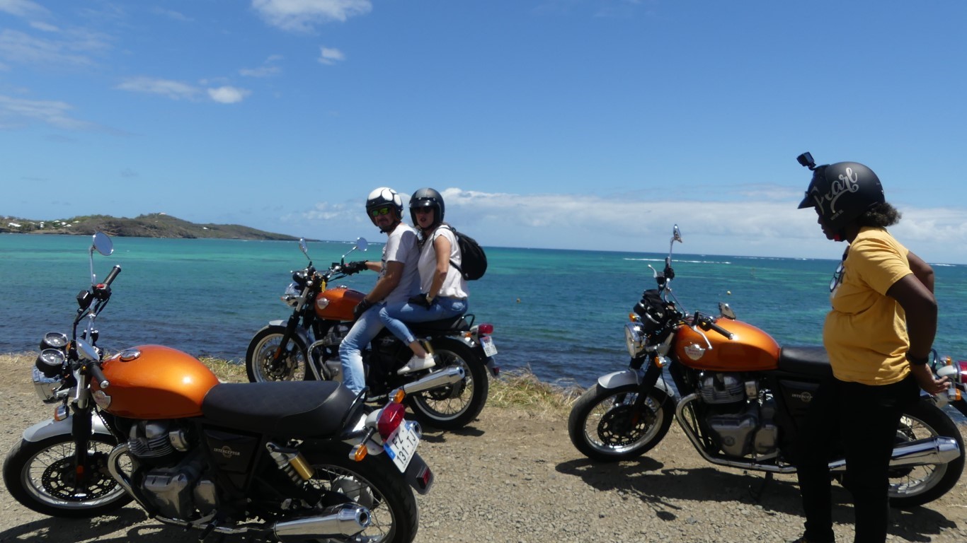Prenez le guidon d’une de nos Royal Enfield et (re)découvrez la Martinique autrement ! Votre guide vous fera découvrir les plus beaux points de vues de l’île en toute sécurité ! Ils pourront vous conseiller également des circuits personnalisés, thématiques et culturels.