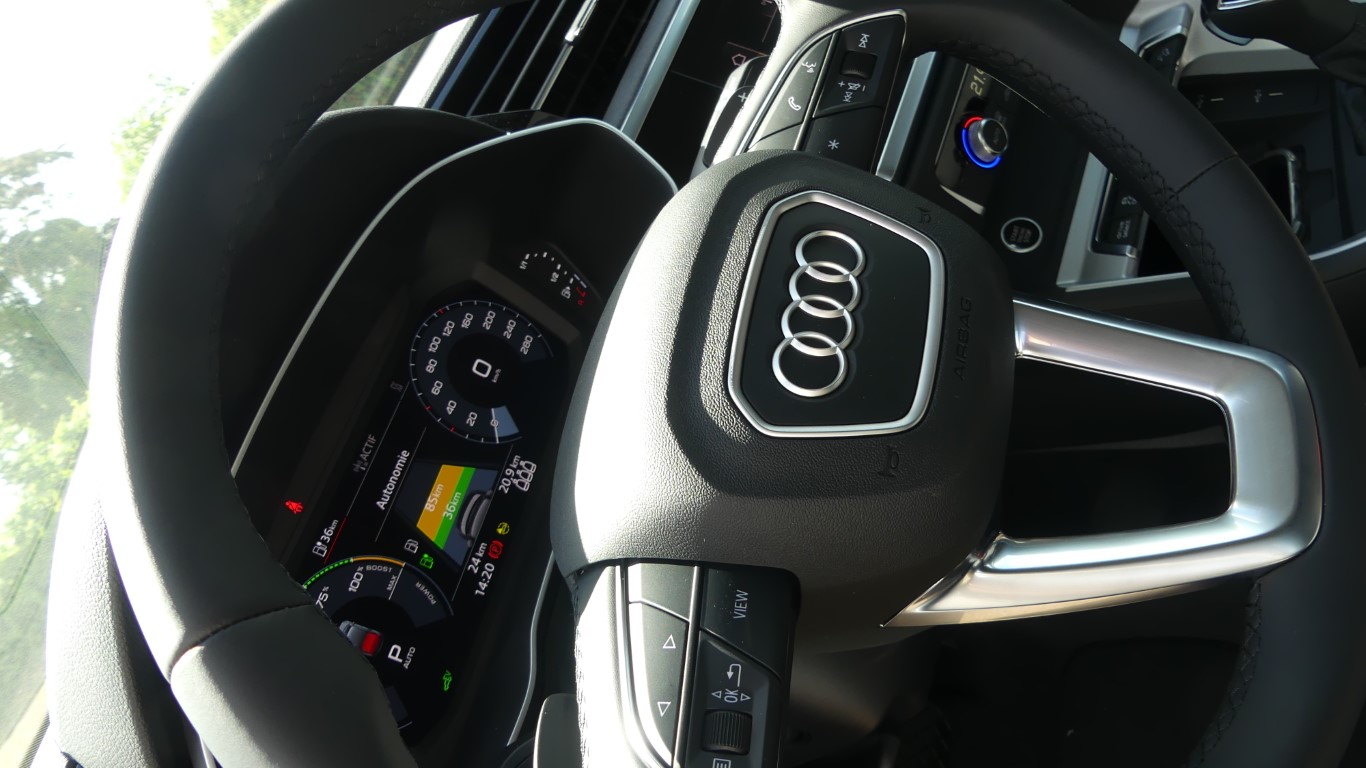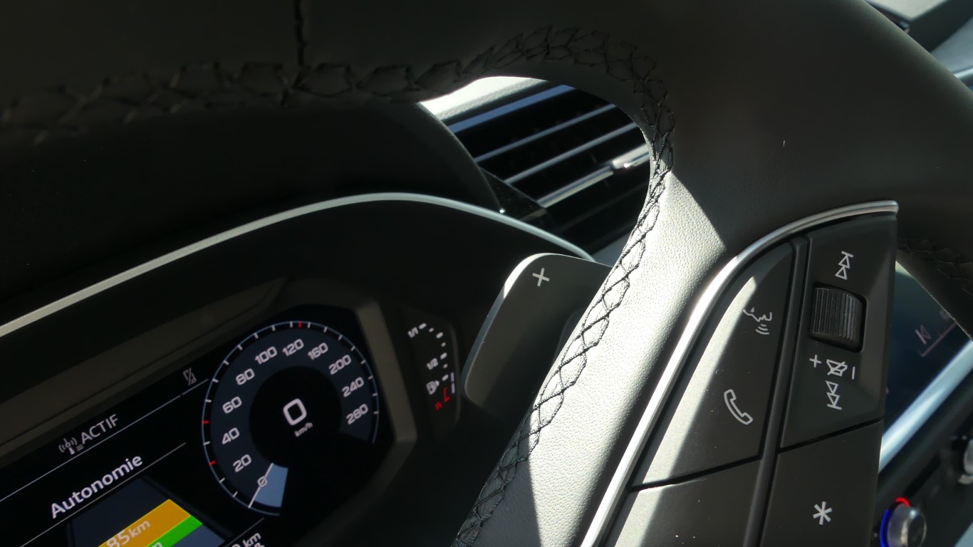 Deux écrans constituent la base du concept de fonctionnement et d’affichage. L’écran tactile MMI de 10,1 pouces occupe une position centrale dans le tableau de bord et affiche les flux d’énergie de la propulsion hybride et bien plus encore. Le conducteur peut regarder soit un tableau de bord numérique, soit le cockpit virtuel d’Audi, disponible en deux tailles en option. Un wattmètre affiche la puissance du système, l’état de la conduite, la récupération, l’état de charge de la batterie et l’autonomie. De nombreuses fonctions peuvent être commandées par une commande vocale en langage naturel comme niveau d’entrée supplémentaire, qui offre également la possibilité d’accéder à la connaissance du cloud.