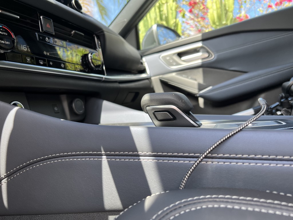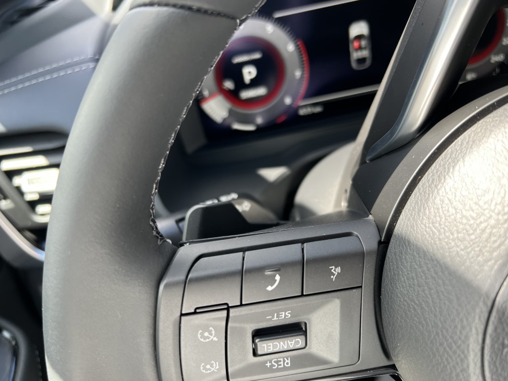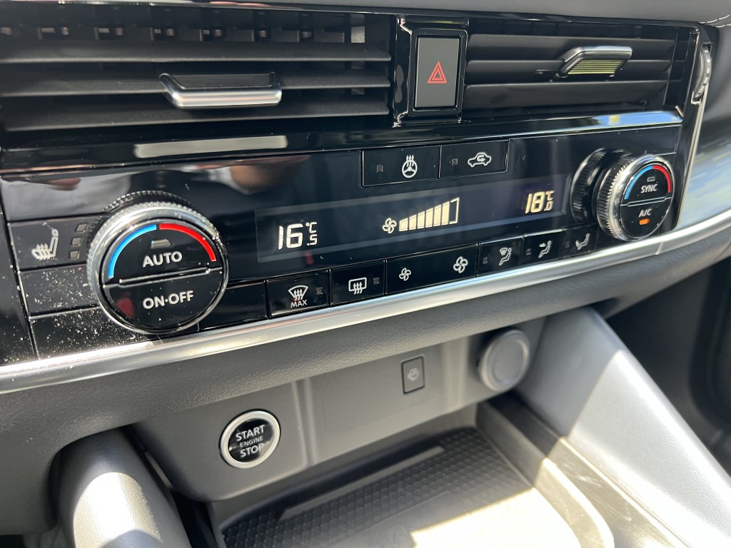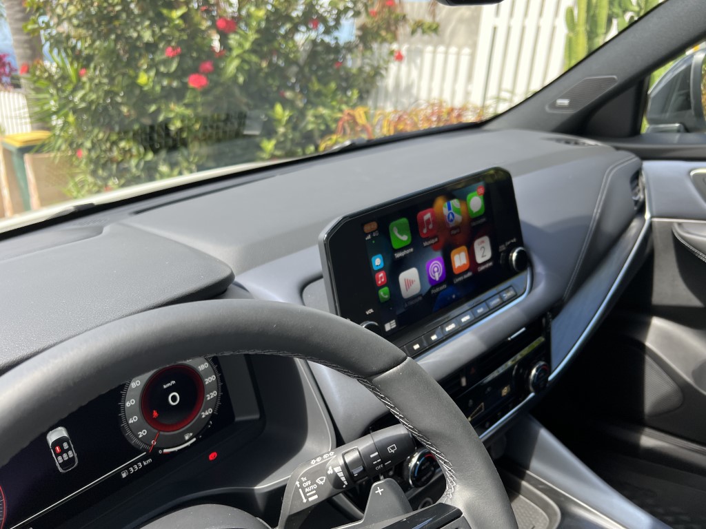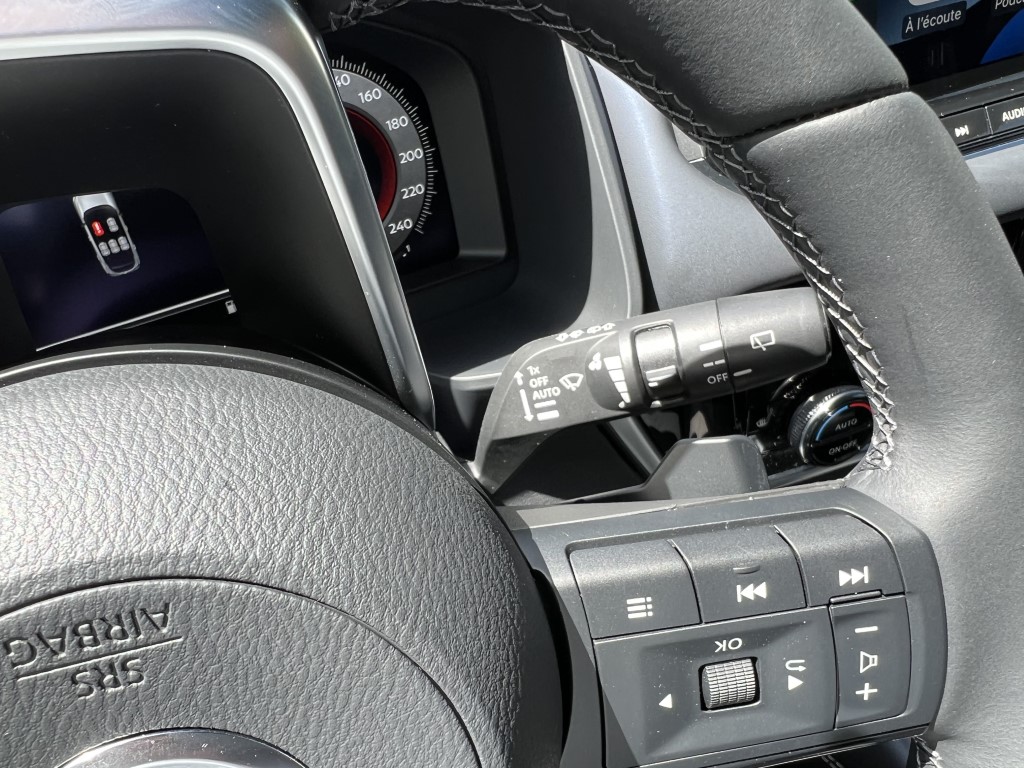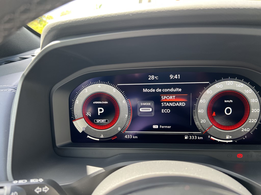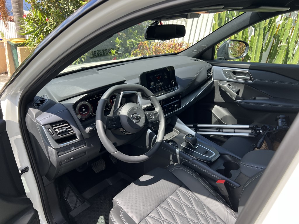 C’est le grand changement avec l’ancienne version. Le nouveau Qashqai se veut plus confortable, au détriment de la gestion de la prise de roulis. Il m’est aussi apparu plus silencieux et mieux fini, surtout dans cette version haut de gamme disposant d’un bel intérieur cuir et du toit panoramique. Le système d’info-divertissement progresse beaucoup. A ce sujet, et ce n’est pas seulement le fait de Nissan, on assiste à l’arrivée de nouveaux SUV dont la gamme de moteur se réduit comme peau de chagrin contrairement aux services connectés. Ces derniers, pour le Qashqai, permettent d’avoir le Wi-Fi à bord pour jusqu’à sept appareils, les services de NissanConnect et une application dédiée qui permet de surveiller le véhicule et d’interagir avec lui. L’écran central offre une diagonale de 9 pouces, une meilleure résolution et compatible avec Android Auto et Apple CarPlay sans fil.Sousses yeux, le conducteur découvre un combiné d’instruments sous la forme d’un écran TFT haute définition de 12,3 pouces. Grâce à cette technologie, vous pourrez choisir plusieurs configurations : informations de navigation, de divertissement, de trafic, du véhicule, le tout contrôlé à partir d’une molette sur le nouveau volant. Le HUD (Head Up Display ou affichage tête haute), qui projette des informations sur le pare-brise, mesure 10,8 pouces et offre la plus grande taille d’image du segment. On y retrouve les indications de navigation, les aides à la conduite et les informations routières. On dispose aussi d’un chargeur de smartphone à induction de 15W. Le festival de technologie (on se se demande comment on faisait avant…) continue avec les fonctionnalités Home-to-Car Google Assistant et Amazon Alexa. Cela vous permet, en autres choses, d’envoyer votre destination au GPS du QASHQAI en parlant à son assistant vocal…