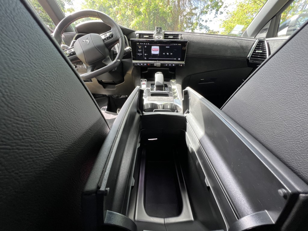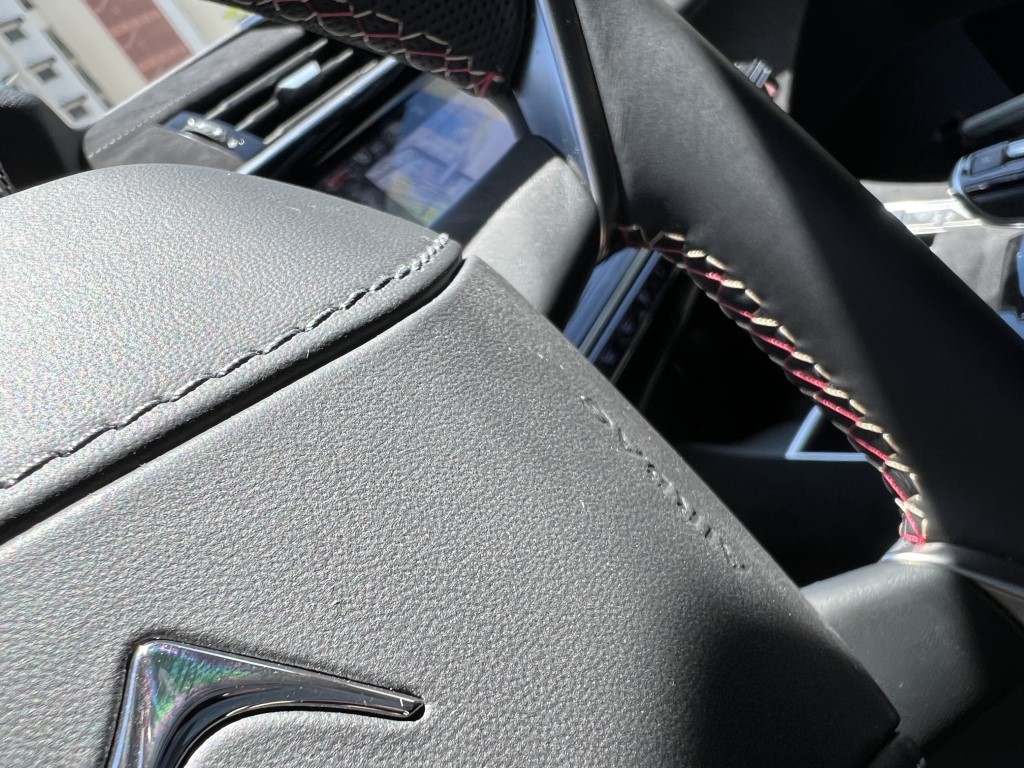 Poursuivant sur le thème de la finition en cuir, il convient de noter que même les dossiers des sièges et les parties non tactiles des cartes de porte sont recouverts de cuir, ainsi que des gaufrages de haute qualité et même des coutures même sur les zones perforées, les amateurs de maroquinerie et de haute couture française apprécieront certainement. Le DS 7 2023 restylé offre le choix de cuir élargi, donc il est devenu plus facile de personnaliser l’intérieur.