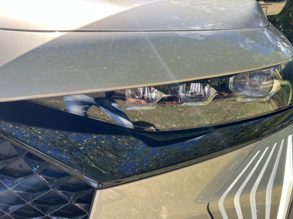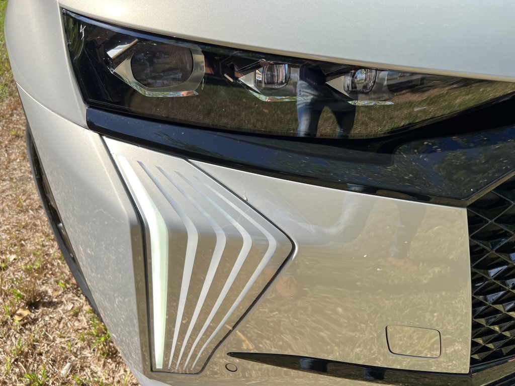 La face avant a reçu une calandre plus large et plus anguleuse, réalisée dans le style de la berline à hayon compacte DS 4 et de la berline d’affaires DS 9. Le DS 7 nouvelle bouture se distingue par les feux de position avec son propre nom DS Light Veil : un alignements jamais vu sur les côtés du pare-chocs qui sont constitués de cinq lignes verticales, 33 LED de chaque côté. Ce nouveau système de feux va sûrement vous permettre certains soirs de reconnaître en un clin d’œil dans votre rétro le SUV DS7 sur la route de votre resto préféré... Le VUS a obtenu les phares plus étroits. Ils sont désormais matriciels et à LED, mais sans les lentilles rotatives spectaculaires. Cet inconvénient est destiné à compenser le nouveau « voile » LED des feux diurnes.