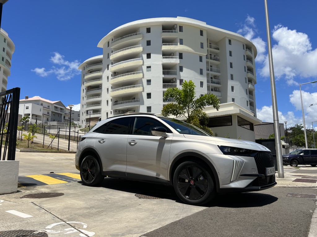 Je suis très heureux de vous retrouver pour cette nouvelle cession d'essais en Martinique... Vous allez le découvrir dans les jour à venir quelques très beaux rendez-vous nous attendent sur Grantomobil.fr avec nos essais de très beaux véhicules qui font leurs preuves sur notre marché local mais pas seulement.... Des voitures qui sortent ou qui évoluent tant du point de vue stylistique que de celui de leur fiabilité... C'est le cas ce matin de cette DS7 qui est le VUS le plus vendu de la marque premium Française... Fini le préfixe 'CROSSBACK' et pour la proue on découvre immédiatement qu'elle à été conçue dans l'esprit des tout derniers modèles DS... Un style chic assumé qui sent bon le luxe à la française voyons... Départ de chez DS Martinique avec Andréa TUFANO-MONNIE RESP CO chez Grantomobil.fr pour tout savoir sur le modèle phare de la marque...