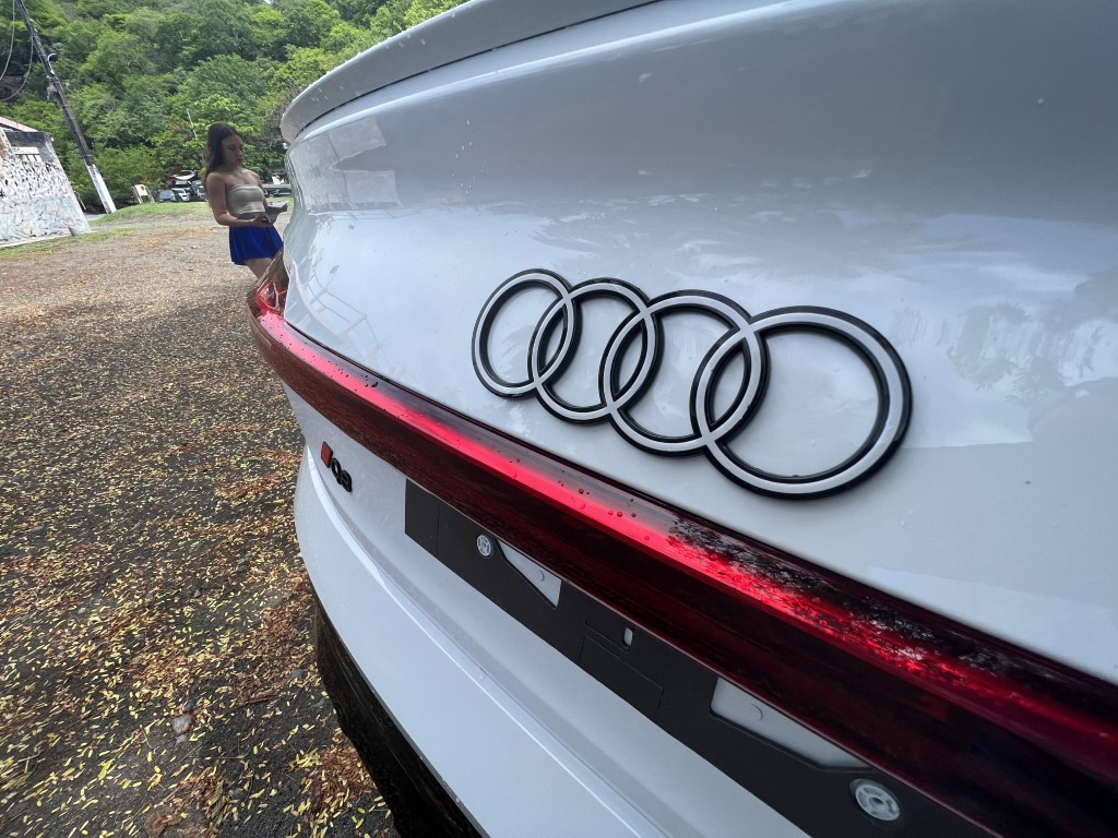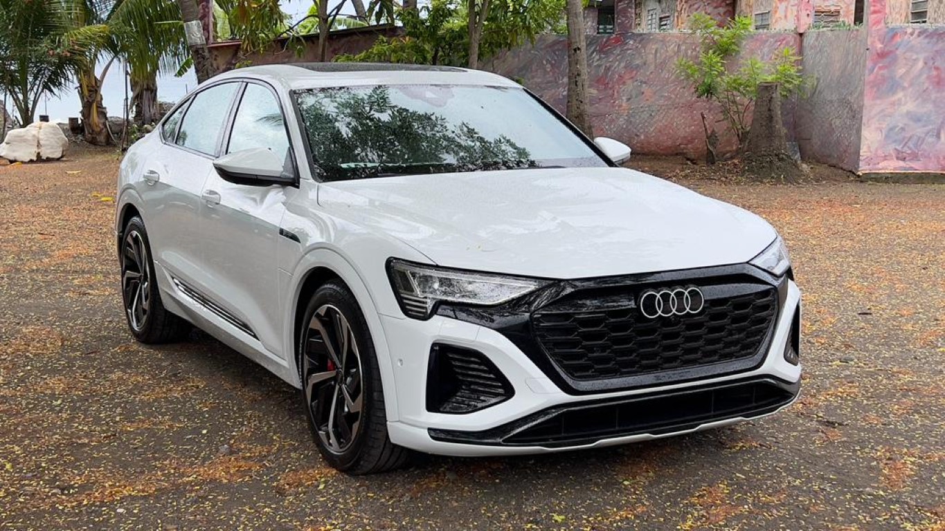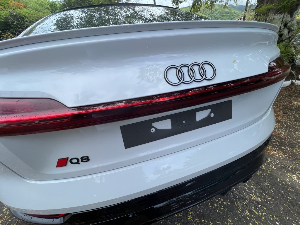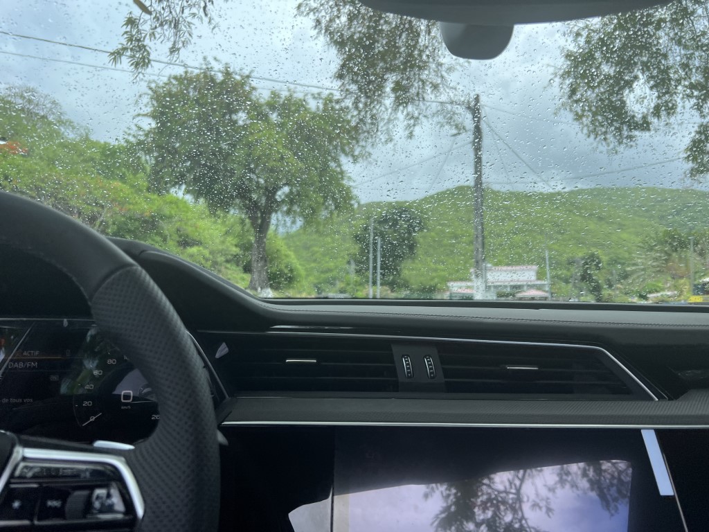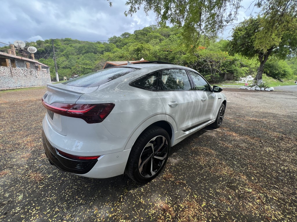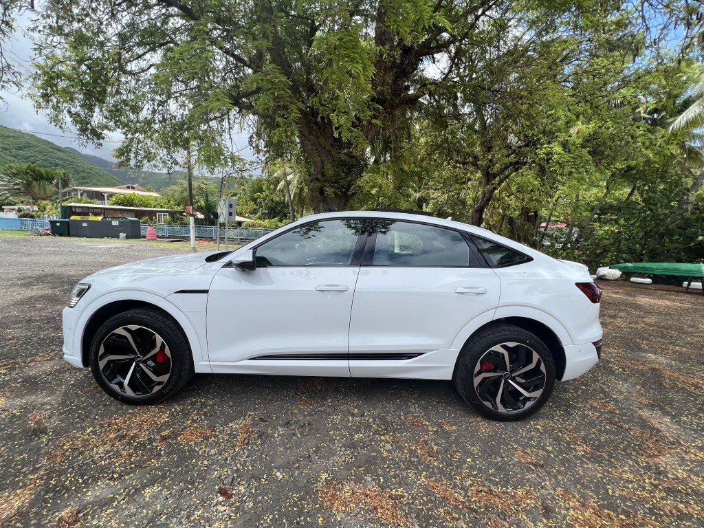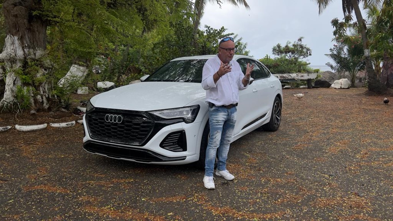 Et oui rappelons-nous ce modèle était le premier SUV de la marques aux anneaux lancé en 2018, aujourd'hui l’e-tron devient le Q8 e-tron. Derrière ce changement d’appellation qui le place en haut de gamme de l’offre électrique devant le Q4 e-tron et en attendant un Q6 e-tron, le Q8 e-tron 2023 fait prévaloir de multiples améliorations. Esthétiquement, on remarque en premier lieu le nouveau logo Audi de type 2D qui trône sur une calandre retravaillée avec un bandeau Led supérieur et le nouveau bouclier avant. A l’arrière, le bouclier est également retravaillé mais les feux ne changent pas. Dans l’habitacle, pas de révolution car rien ne change, hormis quelques apparats, et finalement l’amélioration la plus importante concerne l’intégration de nouvelles batteries qui améliorent considérablement l’autonomie. Départ de chez AUDI Martinique au pied de la Galléria...