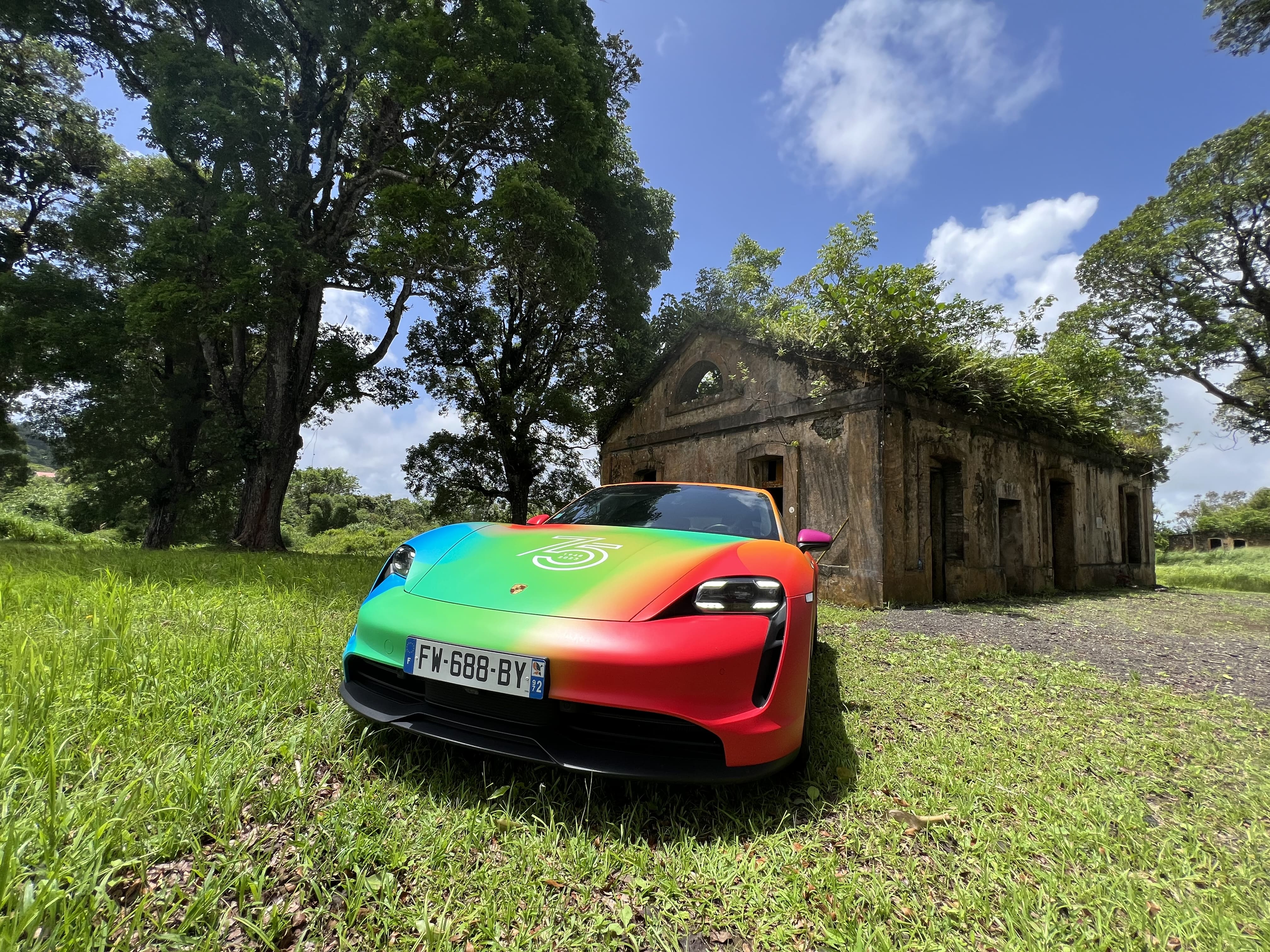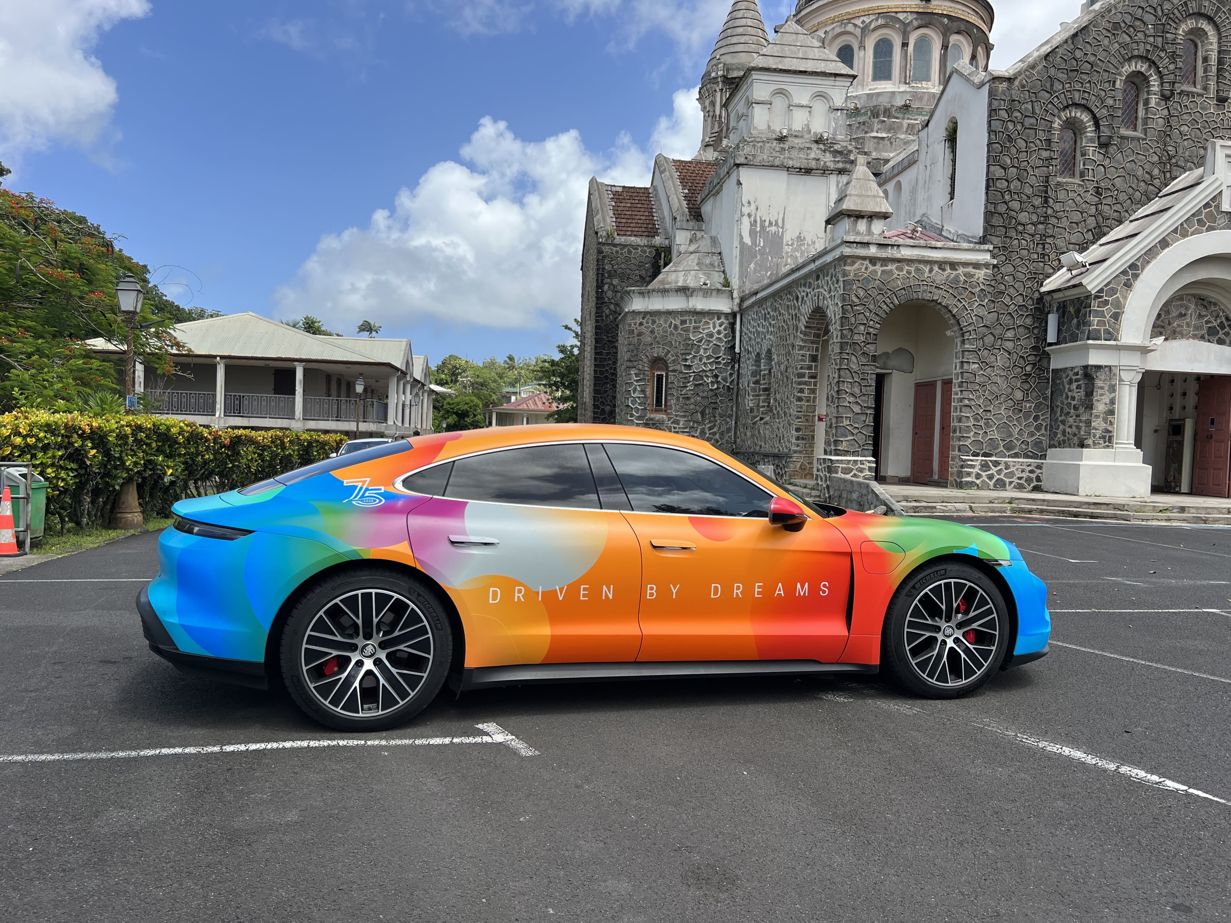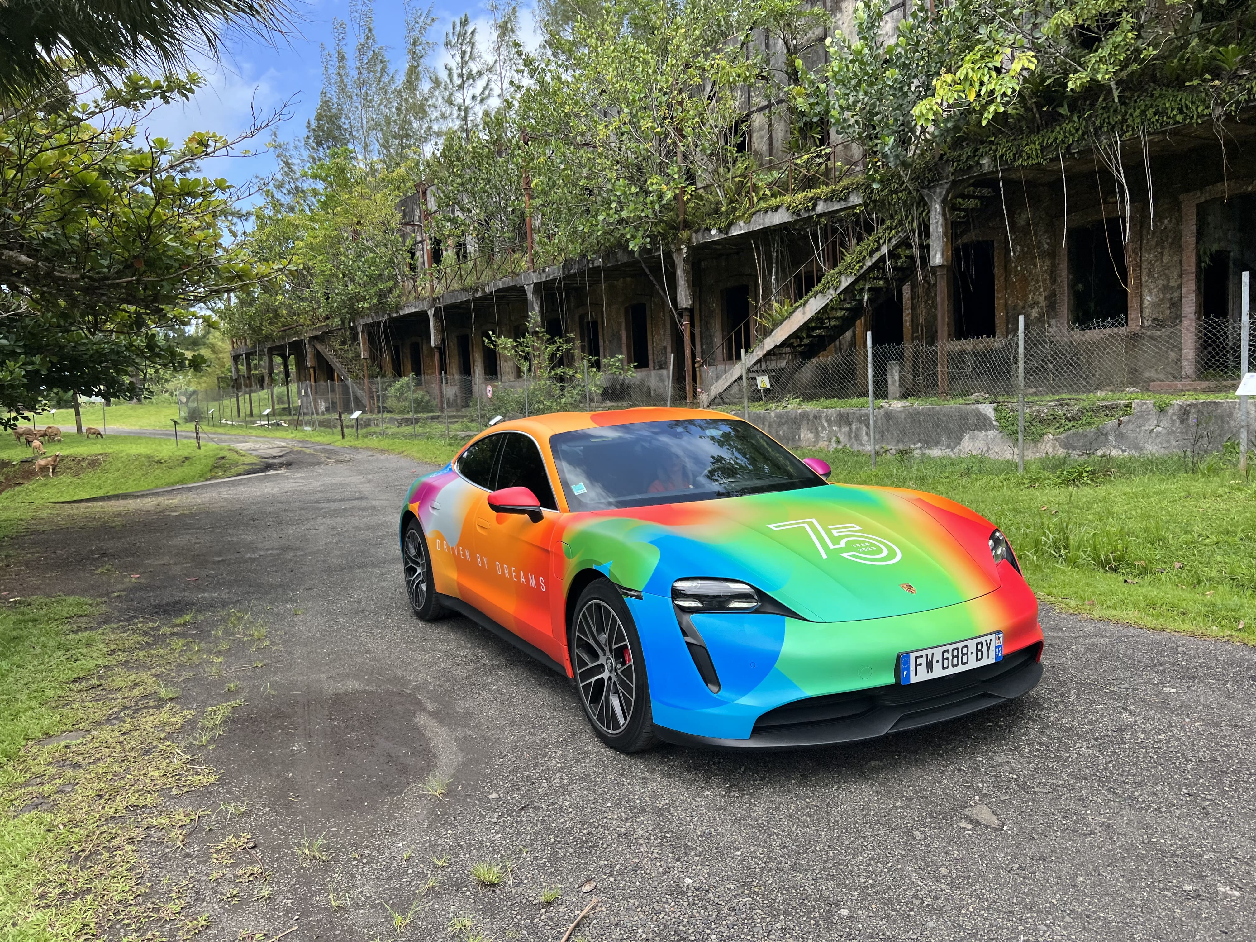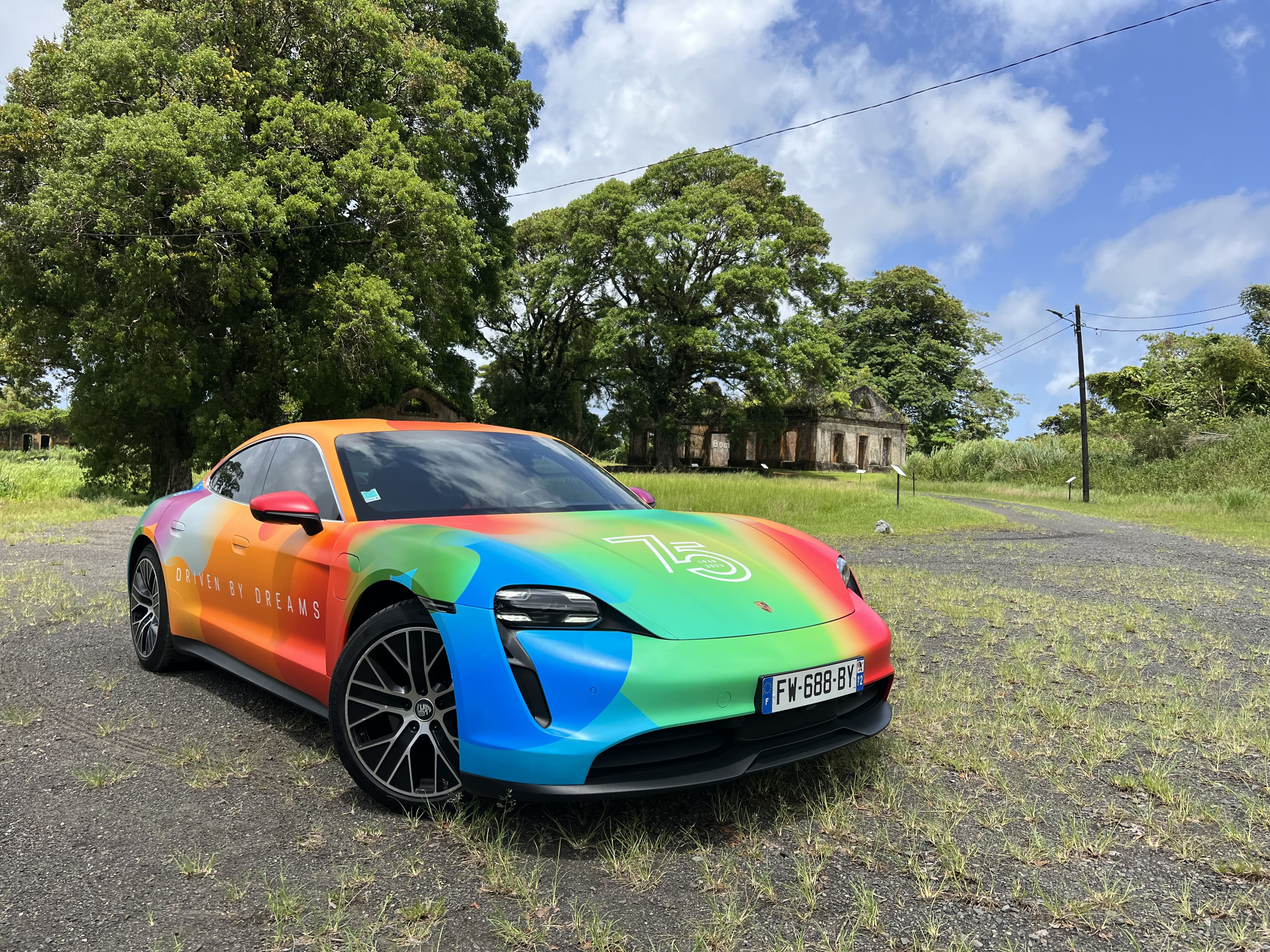 « La couleur, une expression de la personnalité et de la créativité, apporte un rayonnement unique au monde qui nous entoure. Ensemble, célébrons les 75 ans de Porsche avec nos couleurs les plus iconiques. Nous vous invitons à rêver et à rendre le monde plus coloré. » cela explique les couleurs de notre modèle de ce matin que vous avez vu ou que vous verrez quelques temps sur les routes de notre île ! Très bon idée de Porsche Antilles... Alors bon anniversaire Porsche…