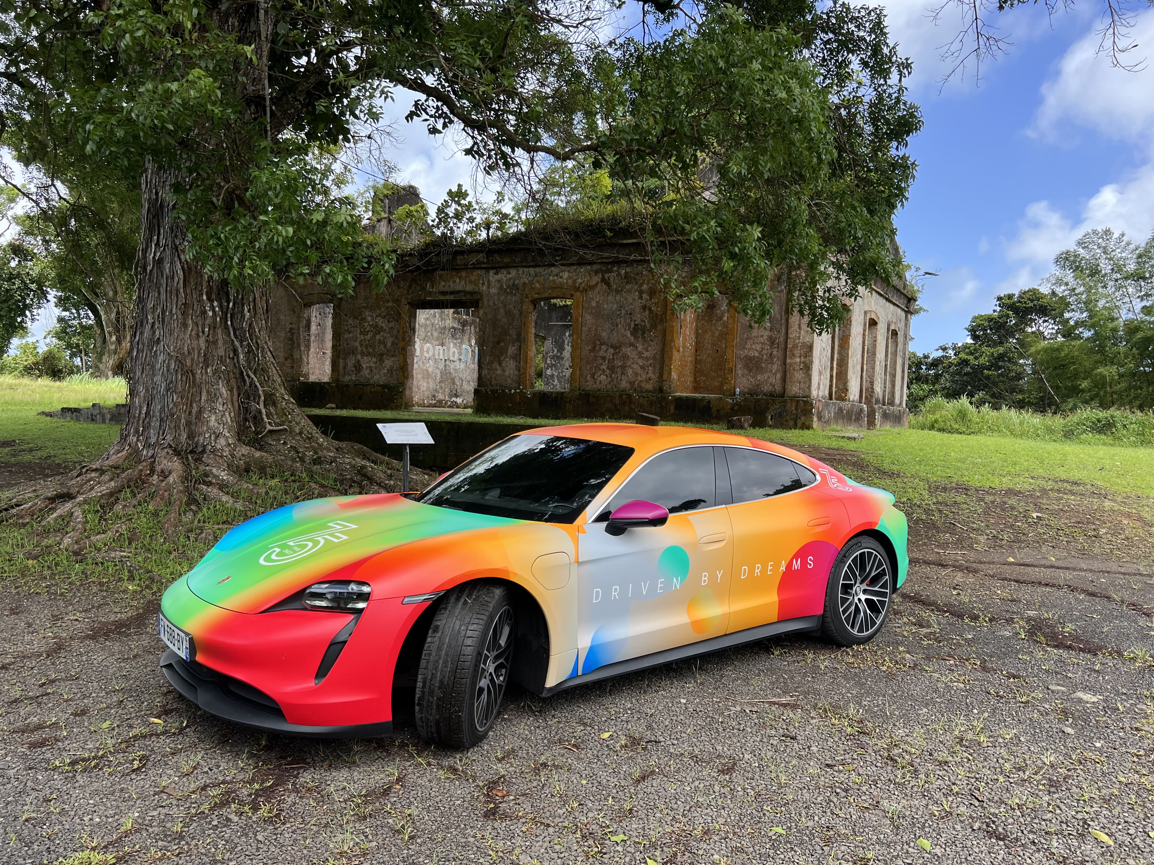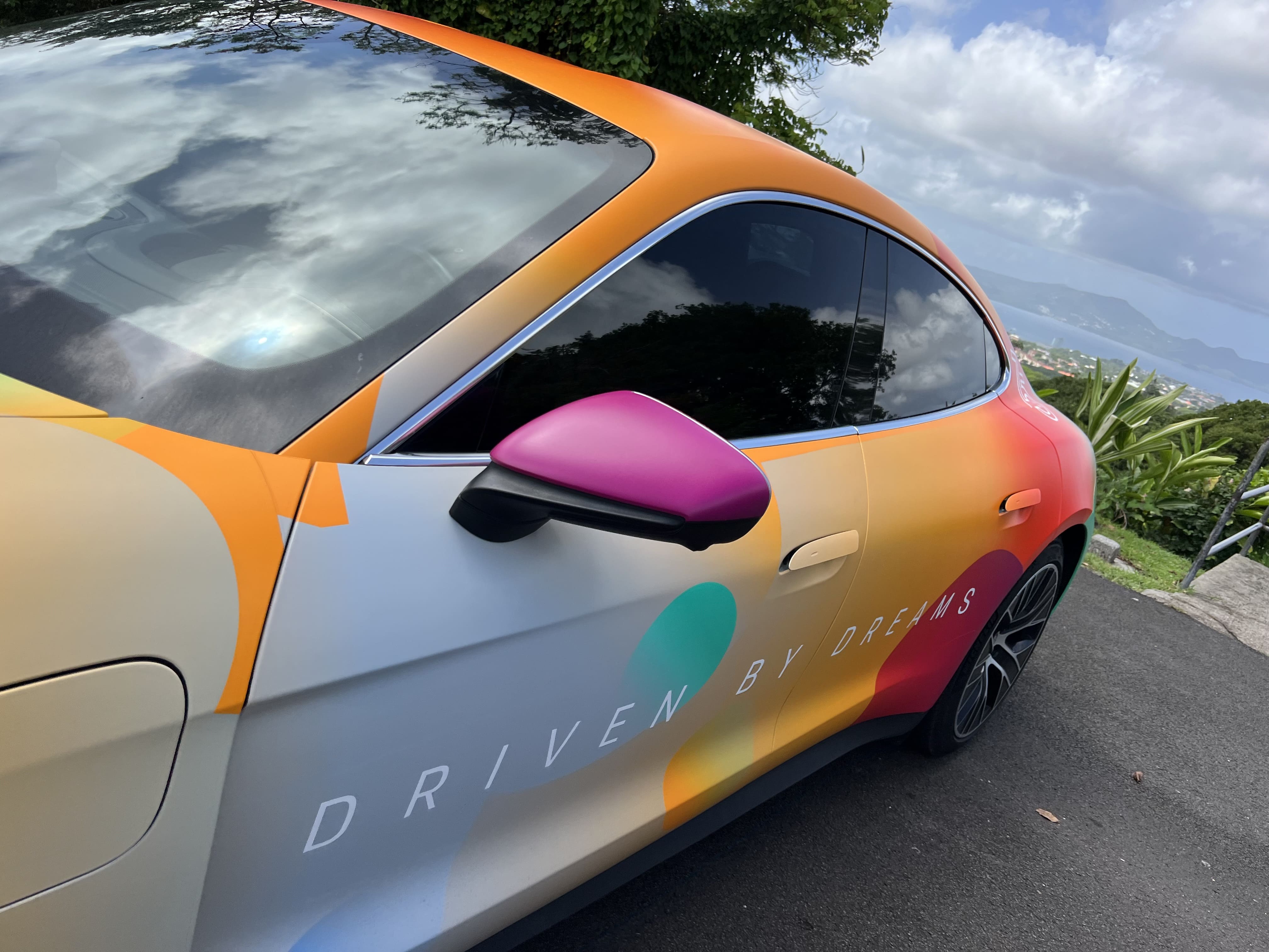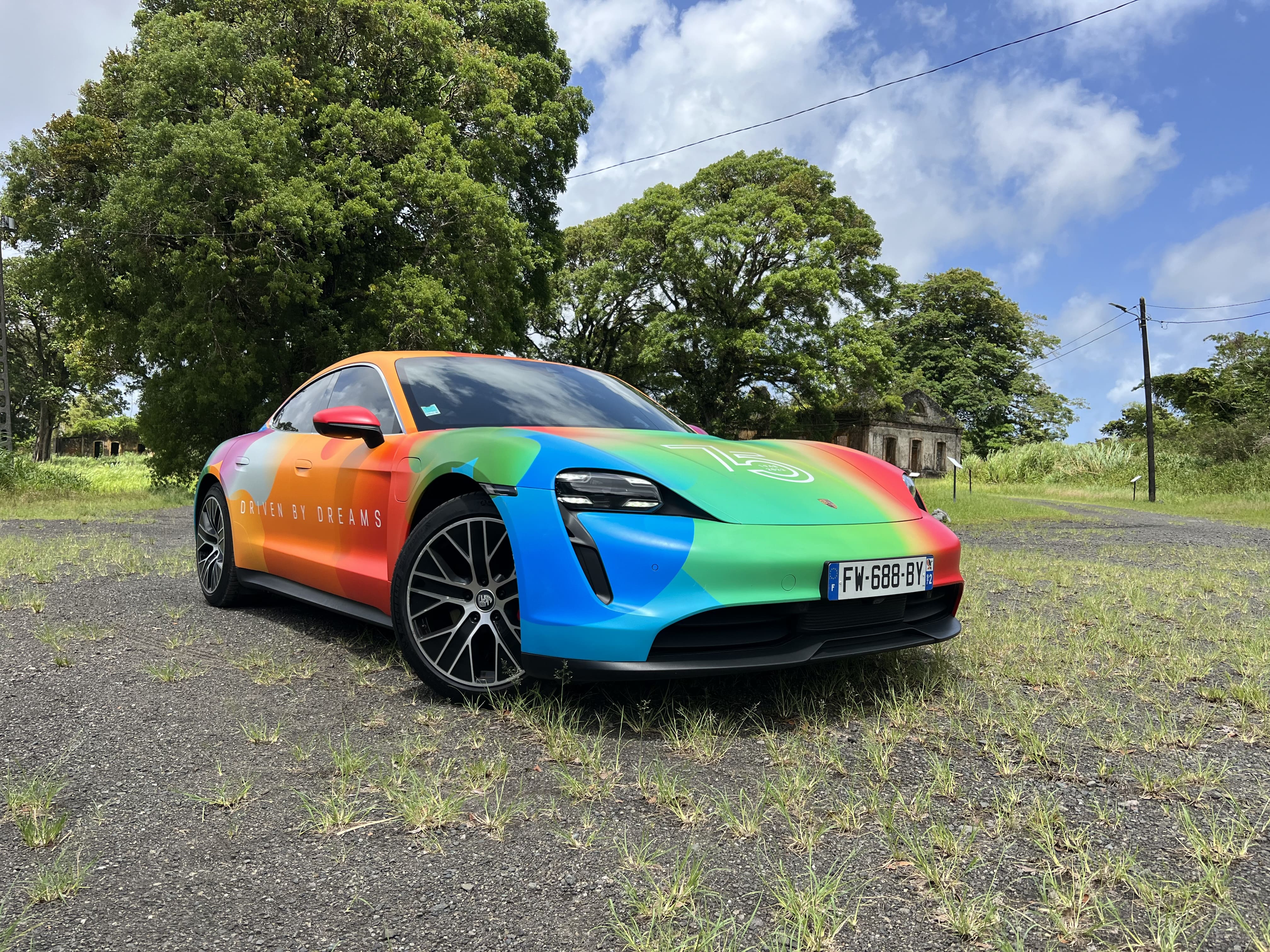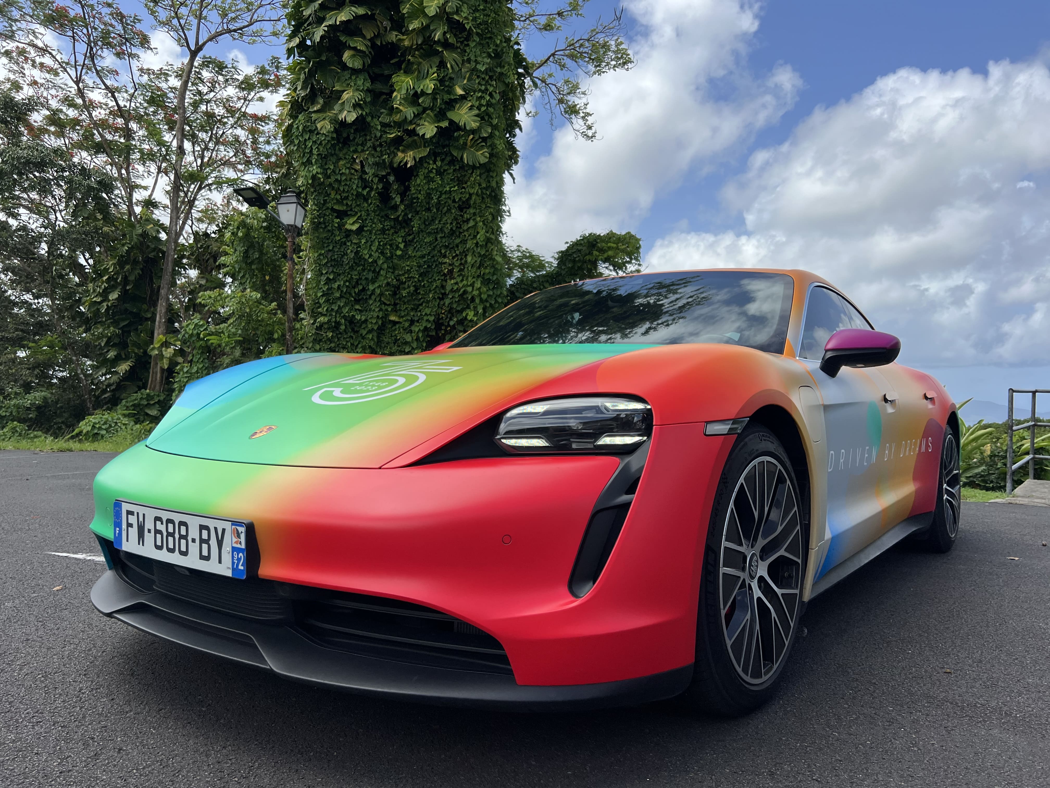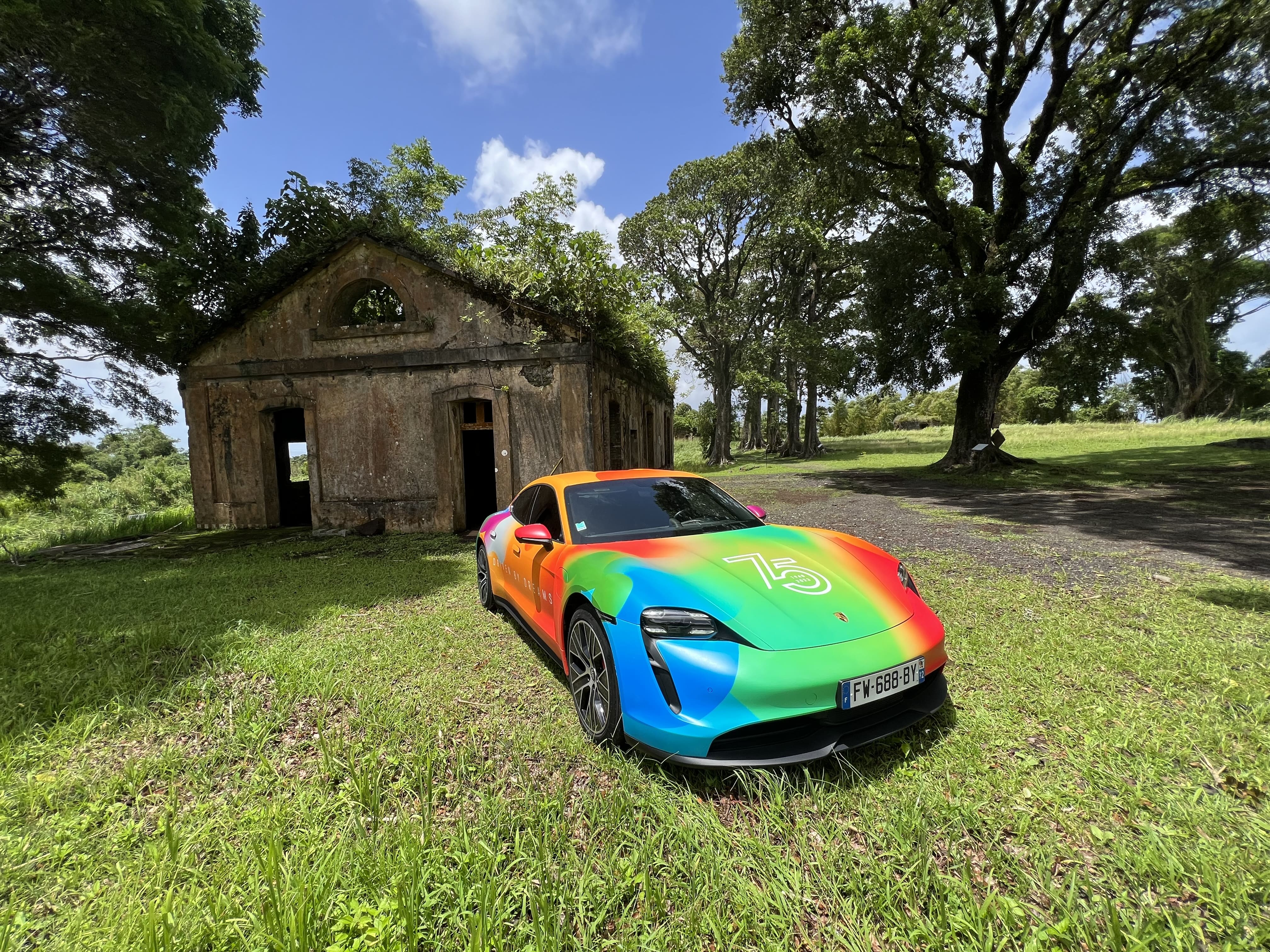 « La couleur, une expression de la personnalité et de la créativité, apporte un rayonnement unique au monde qui nous entoure. Ensemble, célébrons les 75 ans de Porsche avec nos couleurs les plus iconiques. Nous vous invitons à rêver et à rendre le monde plus coloré. » cela explique les couleurs de notre modèle de ce matin que vous avez vu ou que vous verrez quelques temps sur les routes de notre île ! Très bon idée de Porsche Antilles... Alors bon anniversaire Porsche…