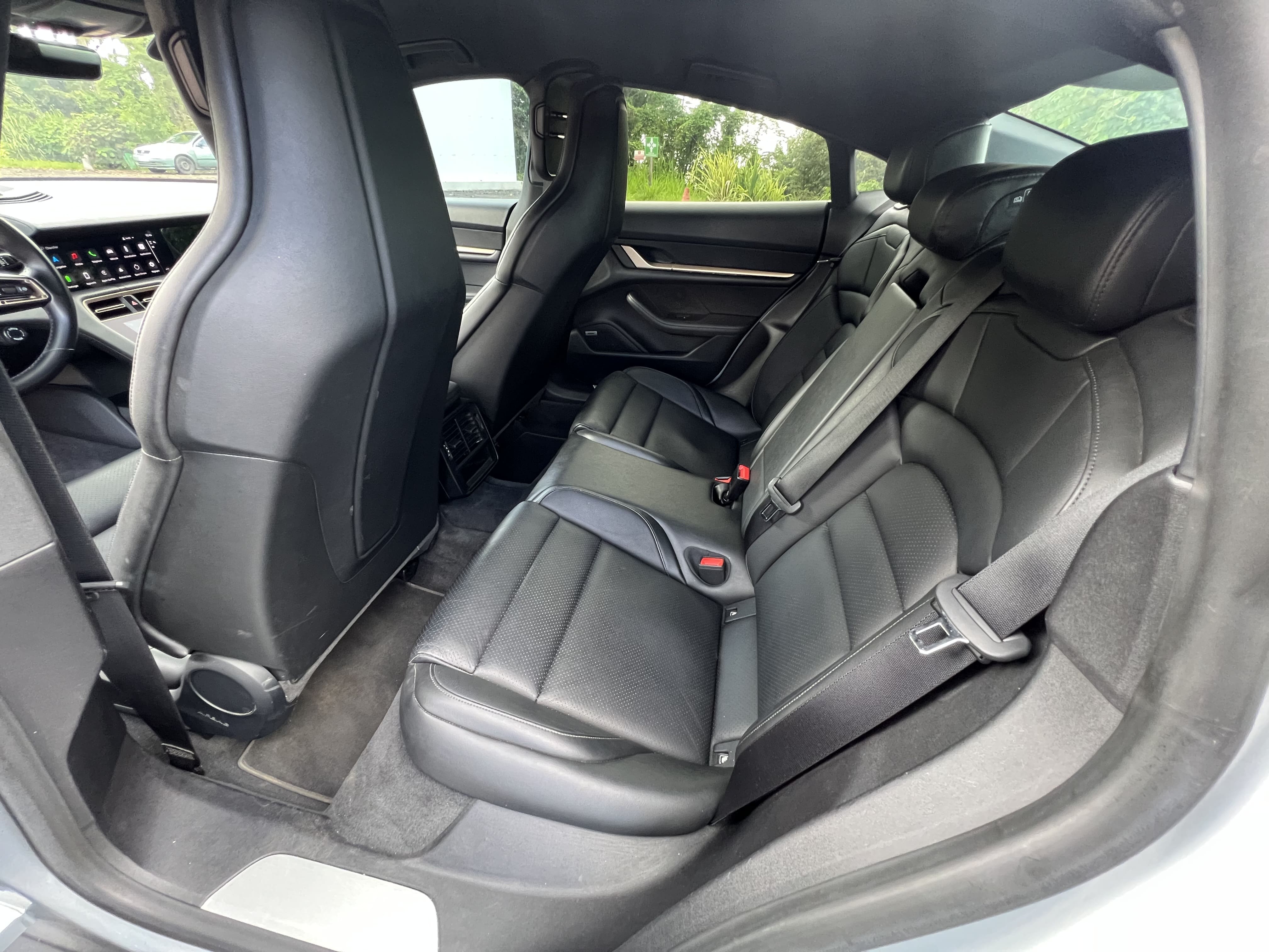Sous le plancher, cette version d’accès s'équipe d'un pack de batterie de 73,2 kWh (71 kWh utilisables), ce qui lui offre une autonomie de 407 km. Cependant, la Taycan 4S peut récupérer les batteries de la Turbo avec 93,4 kWh (et augmenter la puissance de ses moteurs à 571 ch par la même occasion). Cette capacité accrue lui offre alors la meilleure autonomie de toutes les Taycan, à savoir 463 km (WLTP). En outre, cette version peut également accepter une charge maximale plus importante (270 kW contre 225 kW). Mais il faudra trouver un chargeur rapide capable de pousser autant d'électrons en même temps ! Si l'on en trouve un, la Taycan réclamera alors seulement 21 min pour charger de 10 à 80%. À titre d’information, si vous décidez de la brancher sur une simple prise domestique, il lui faudra en revanche entre 36 et 48 h d’immobilisation…