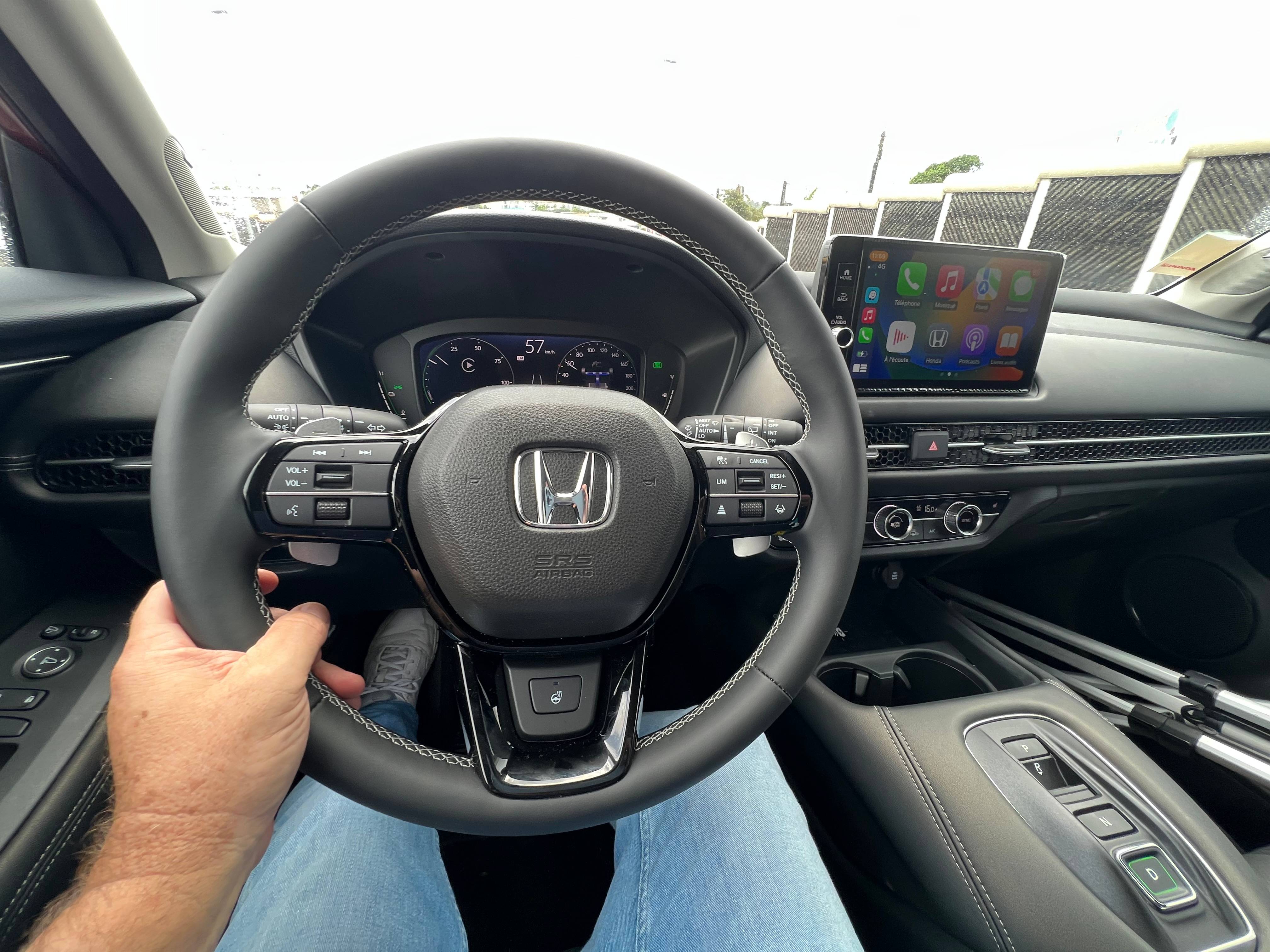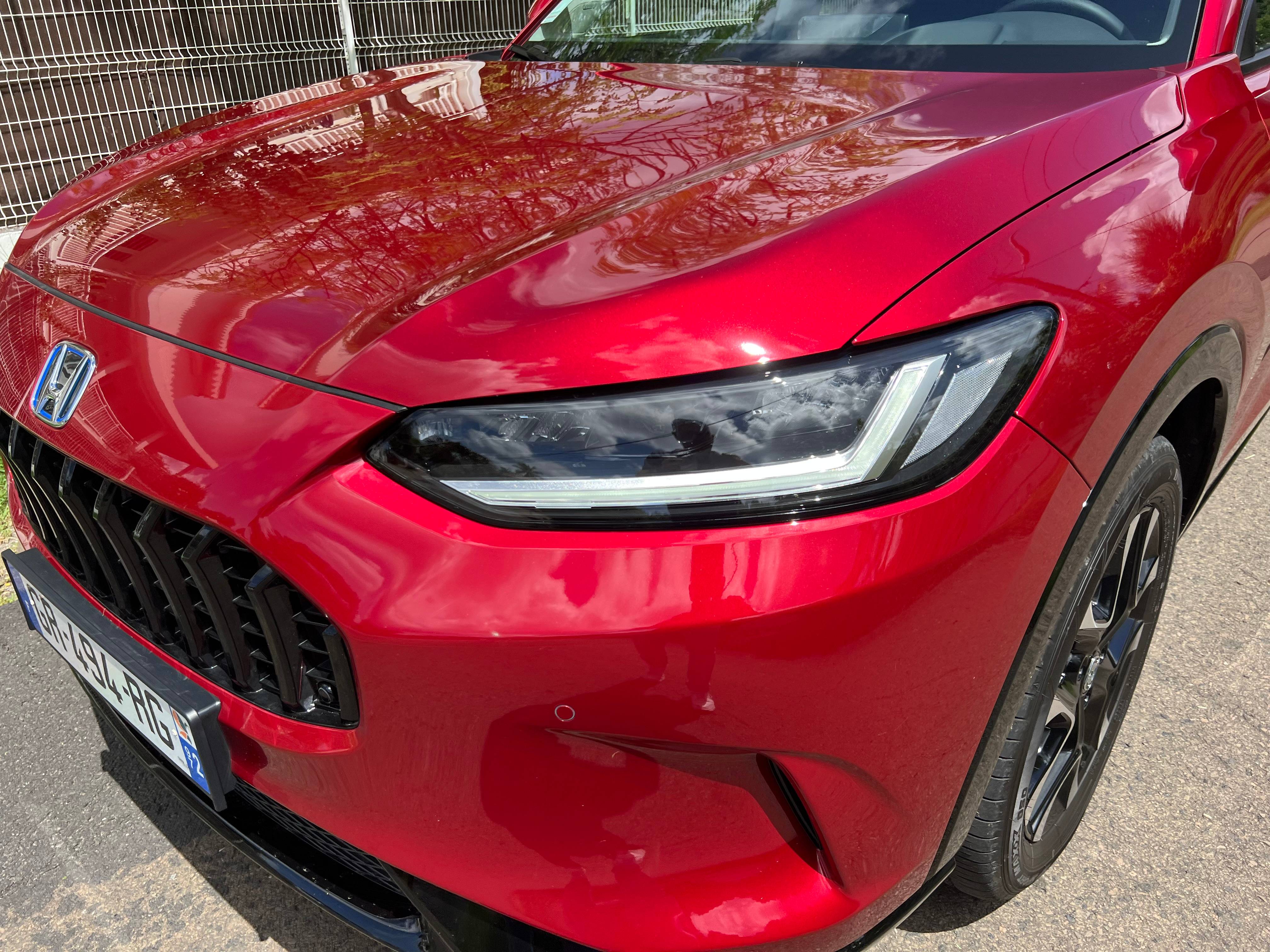 La médaille du mérite que je m’autorise à décerner à notre Honda ZR-V de ce matin est bien pour sa mécanique qui se montre très discrète grâce à une utilisation maximale de sa partie électrique et un bon travail d’insonorisation de l’habitacle. Bien heureux la ou le futur proprio de ce véhicule qui pourra performer avec les différents modes de décélération via les palettes situées derrière le volant, cela permet également d’économiser les freins et de recharger la batterie. La vraie surprise est la consommation pour un véhicule de 1.600 Kg qui s’est stabilisée à 5,7 l/100 km durant notre essai, un résultat plus qu’honorable sur un parcours alternant notre rocade et nos routes aléatoires parfois… La suspension liée à une direction précise et un châssis super équilibré révolutionnera sans doute votre vie après avoir lâché(e) votre vielle thermique… A vous de l’essayer…