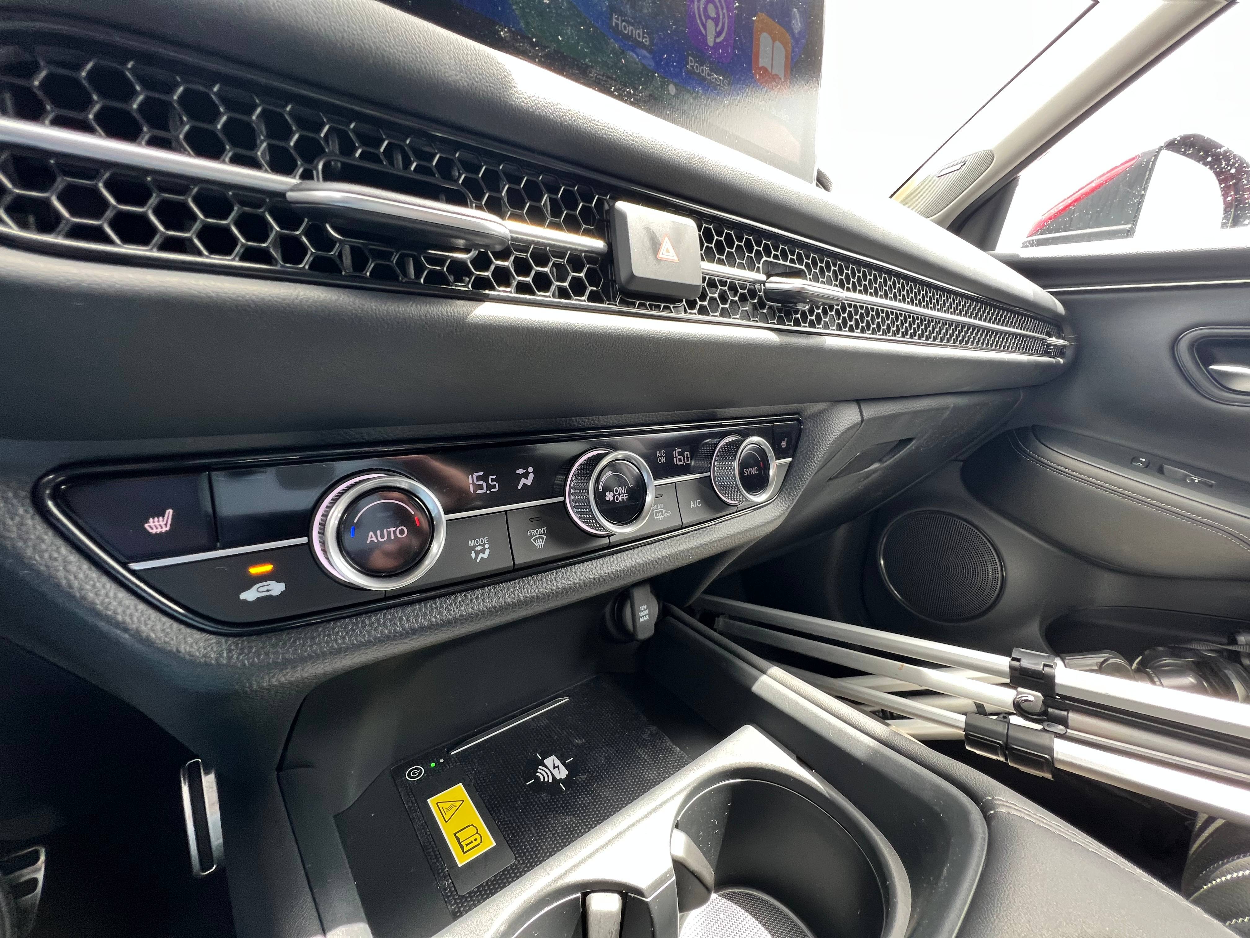 À bord, le ZR-V pas de grande surprise. La planche de bord et le mobilier semble très inspiré de la Civic, mais vraiment j’ai trouvé l’ergonomie aux petits oignons et l’ensemble des commandes très bien disposées. Bon point aussi pour l’originale console centrale, très épurée Je ne suis pas grand Fan des pseudo vaisseaux spatiaux ou rien n’est plus palpable et ou toutes les molettes disparaissent au profit de la future guerre des étoiles… Du coup j’aime vraiment l’idée dans cette Honda que certaines commandes restent encore ajustables avec des classiques boutons… L’habitabilité est plus que convenable et fait parfois mieux que les modèles de son segment… Les places arrière se révèlent assez spacieuses pour accueillir trois adultes seul le coffre de 390 dm3 est un peu décevant…