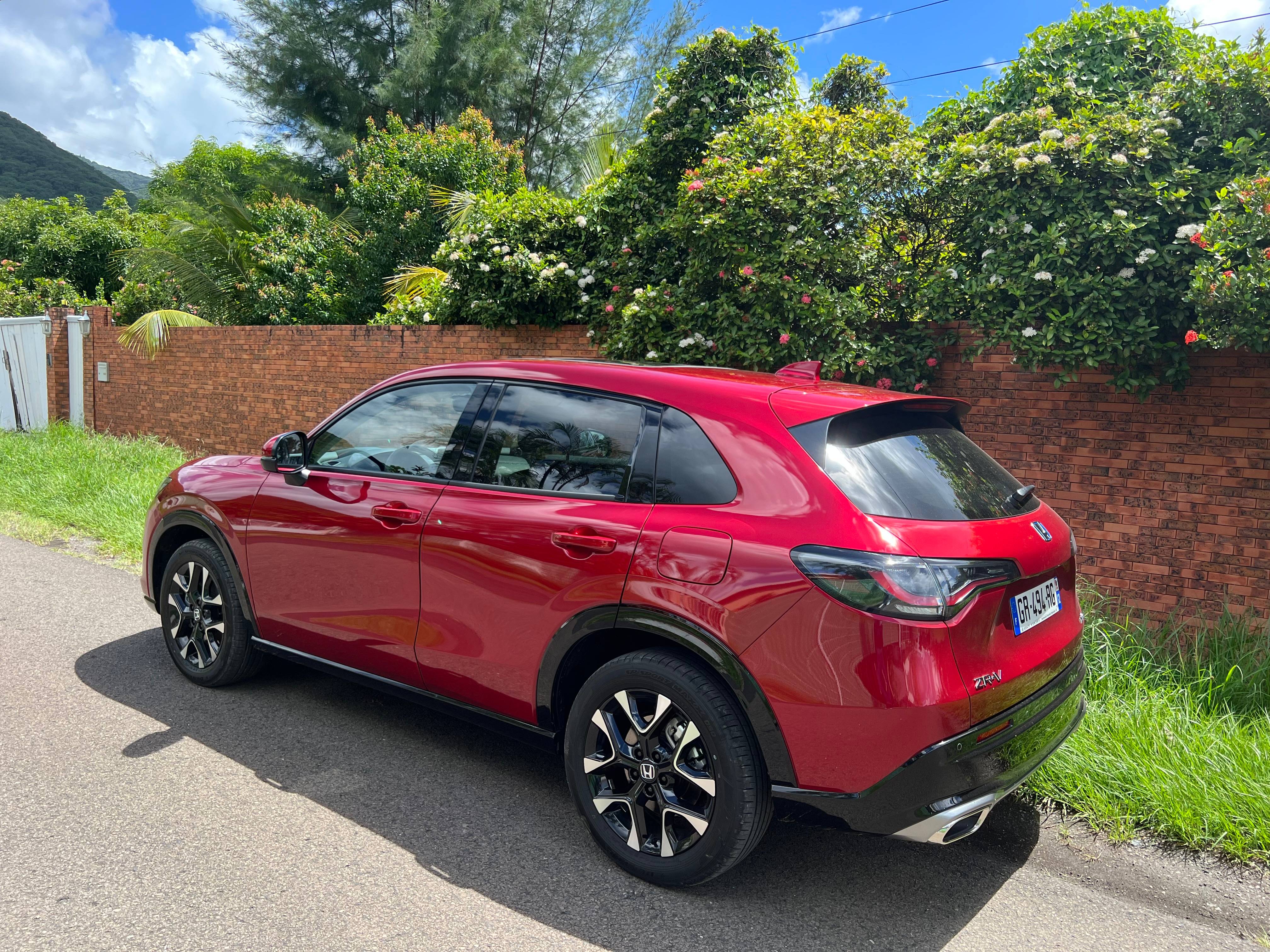 Dernier modèle en date développé autour de la technologie e:HEV hybride de Honda, le ZR-V embarque une version réactualisée du système à deux moteurs électriques. Le nouveau moteur motorisation 2.0l à injection directe de 143 ch se fait épaulé par deux petits moteurs électriques… Ce moteur CVT déjà présente à bord de la Civic e:HEV fournit désormais une puissance totale de 135 kW/184ch avec un couple de 315 Nm et abat le 0 à 100 km/h en 7,8 secondes seulement. Avec les performances d’un VUS plutôt musclé et sportif, ce Honda ZR-V s’adapte selon moi assez bien pour un usage au quotidien sur notre île particulièrement grâce à sa motorisation e:HEV remaniée… Cette motorisation e :HEV génère des émissions de CO2 à partir de 130 g/ km (WLTP) avec une consommation de carburant de 5,7 L/100 km (cycle combiné WLTP) .La motorisation hybride intégrale conjugue une batterie lithium-ion dense en énergie et deux moteurs électriques compacts et puissants avec un nouveau moteur à injection directe et cycle Atkinson de 2.0 litres, le moteur passe automatiquement entre les modes électrique, hybride et thermique sans intervention du conducteur.