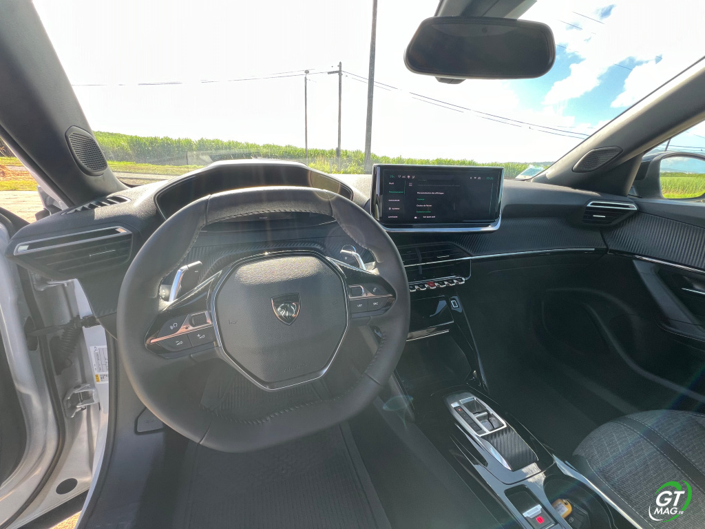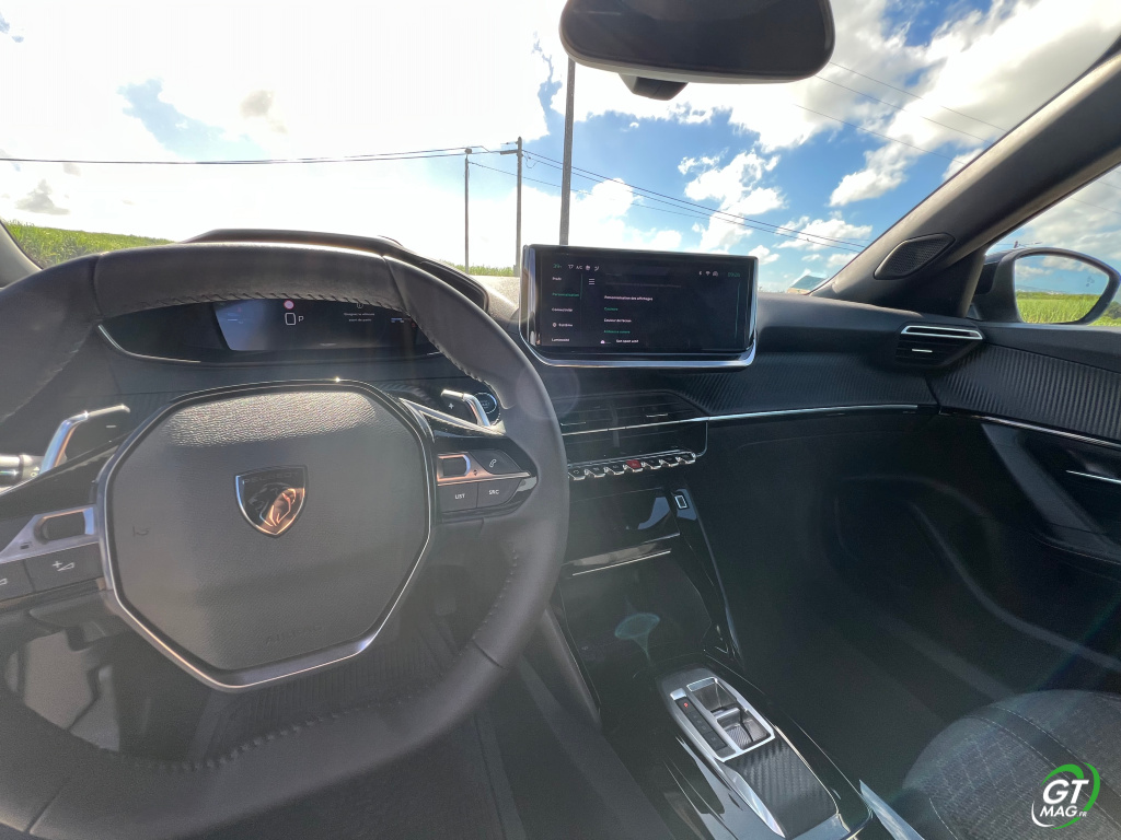 Sa longueur passe donc de 4,14 m à 4,30 m et l’empattement passe de 2,54 m à 2,61 m pour plus d’habitabilité aux places arrières-évidement… L’habitacle est soigné, de qualité et sincèrement ergonomique. On retrouve le tableau de bord de la 208 avec l’i-Cockpit on aime ou on aime pas il est organisé autour d’un petit volant et les compteurs placés au-dessus du volant. L’écran central tactile a 10 pouces. Ce combiné numérique prend une allure digitale sur les versions Allure et GT. Les espaces de rangements sont plutôt bien organisés et nombreux. La position de conduite, elle, est excellente et les sièges avant sont très confortables et bien dessinés. A l’arrière, l’assise de la banquette est, cependant, un peu courte. Le coffre est de bonne capacité avec 410 litres qui peuvent passer à 1496 litres en rabattant les dossiers des sièges arrière.