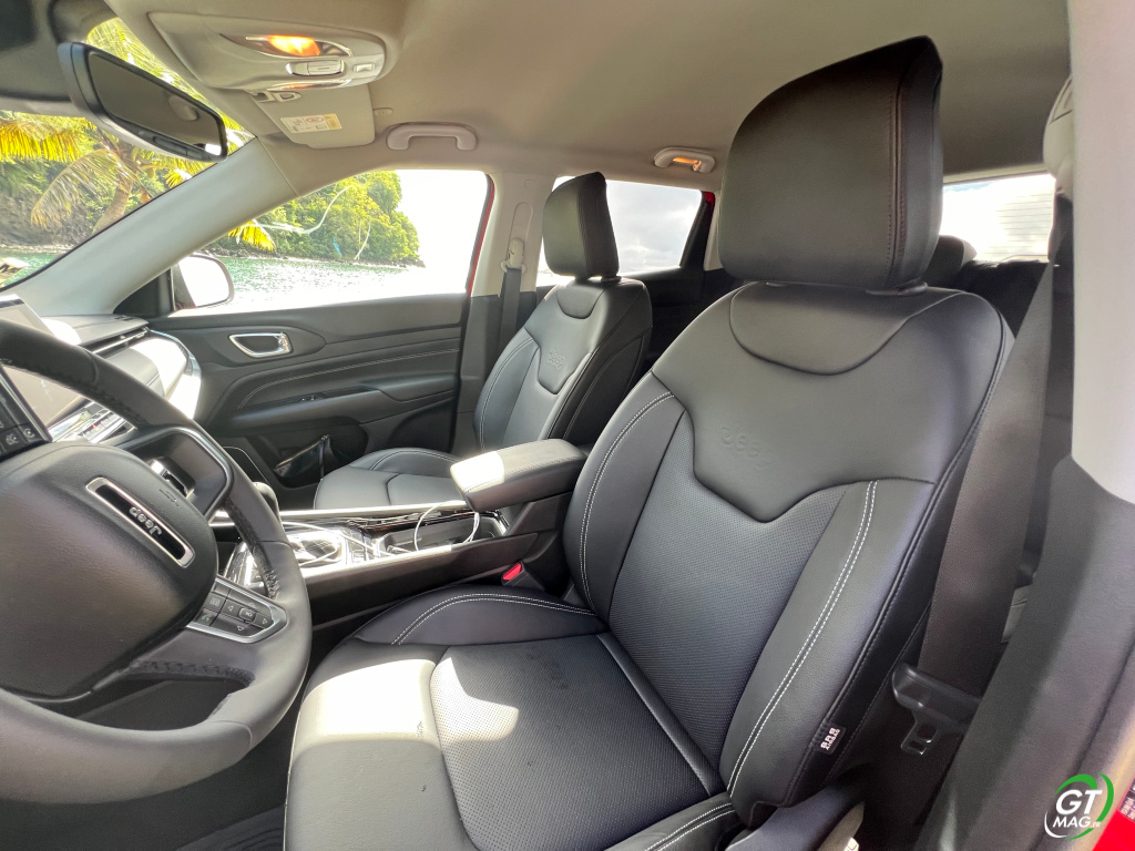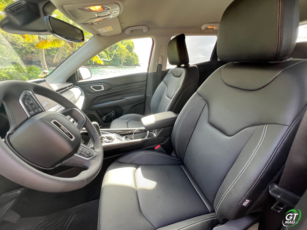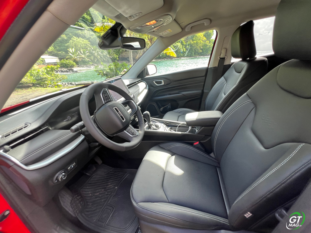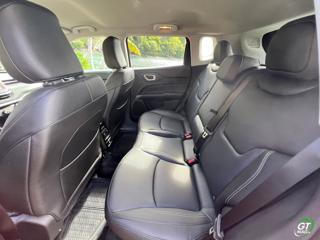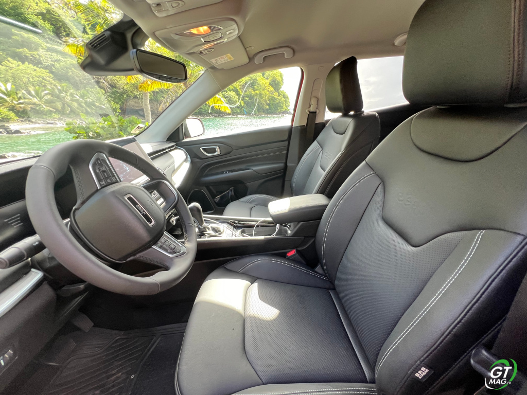 Pas de doute nous sommes bien dans un Jeep et cela se ressent en matière d’espace et de volume. Les places avant sont très confortable, l’assise semble personnalisée à son premier contact… Idem pour la qualité de la sellerie arrière seul le passager central sera un peu à la peine pour faire Saint-Pierre-Saint-Anne dans un confort absolu. Rien de très grave… Le volume du coffre est déjà conséquent, allant 438 litres à 1387 lorsque les sièges arrière sont rabattus. Des chiffres plutôt sympas dans la catégorie. Avec le hayon électrique mains-libres, vous pouvez ouvrir et fermer le hayon les bras chargés. Grâce aux capteurs de sécurité, il suffit d'un simple mouvement du pied sous le pare-chocs arrière pour l'actionner. De plus, avec le système Enter-N-Go, pas besoin de sortir vos clés pour ouvrir les portes, il suffit de les avoir sur soi, dans une poche.