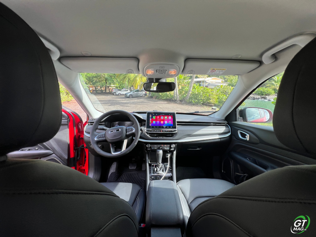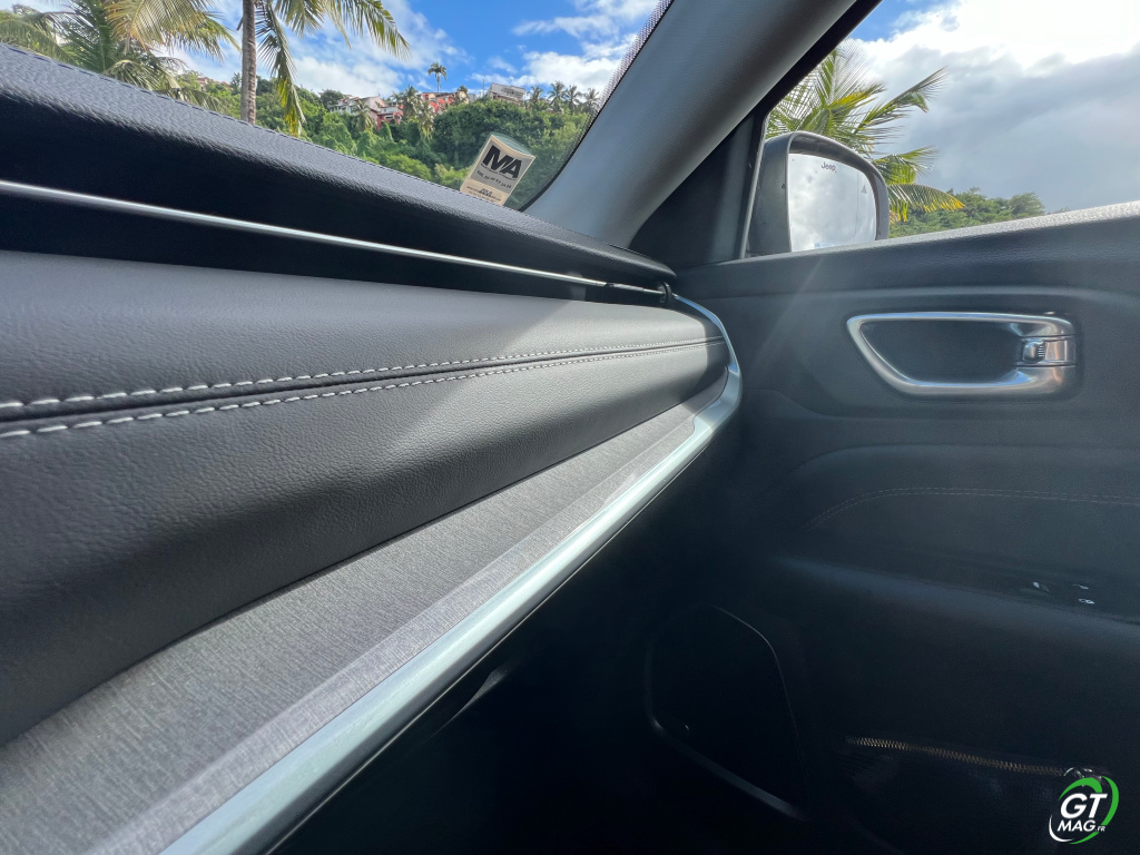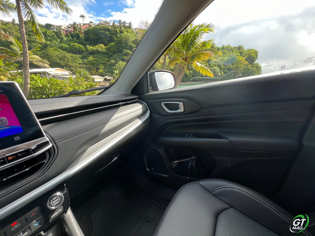 Sur nos routes je trouve le COMPASS beaucoup plus confortable que le RENEGADE… Il dispose d’une insonorisation largement améliorée… Sur nos routes sinueuses et pour l’essai de ce matin il passe les virages avec aisance et des mouvements de caisse progressifs… Le 2 roues motrices nous oblige à rester sage du côté du Morne Vert mais la tentation est grand d’aller battre les sentier caillouteux entre cabris et ravines chatoyantes… On attendra pour cela l’essai du 4XE en janvier 2024 surement… Le comportement global de ce véhicule est plutôt rassurant avec un freinage sérieux et un compromis suspensions-direction que je trouve pour ma part taillé pour nos îles… A vous de voir…