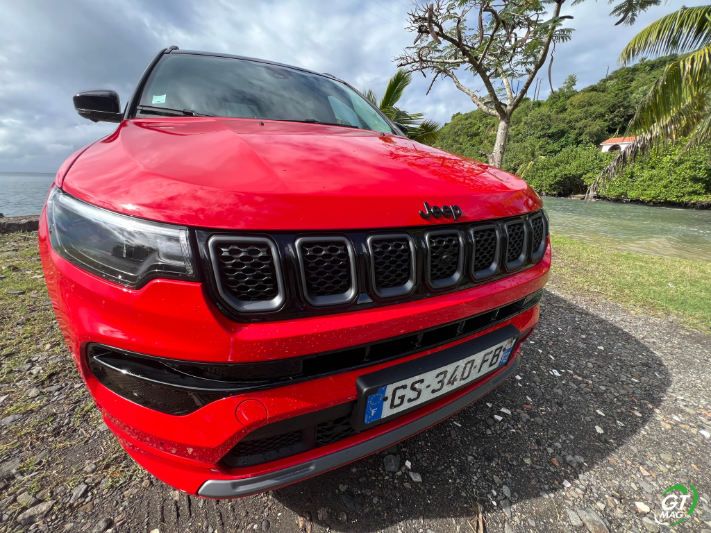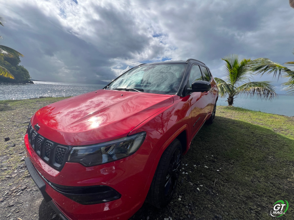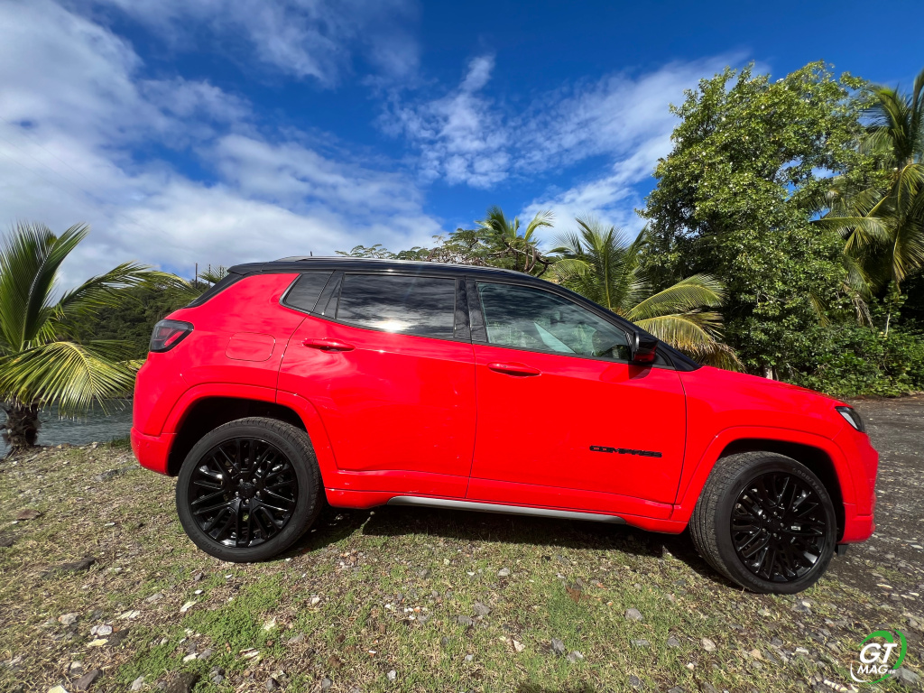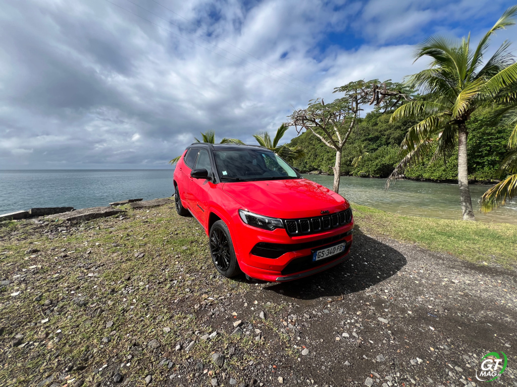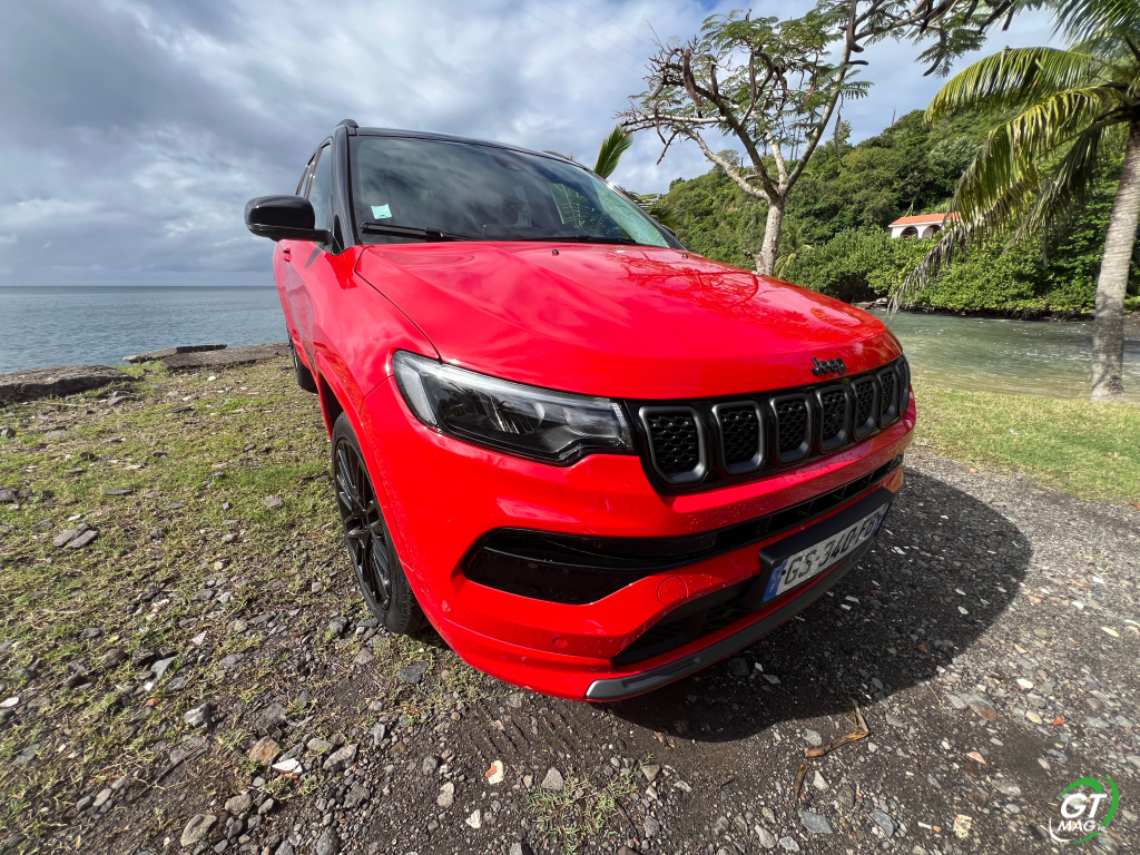 Retour chez Jeep ce matin distribué par Martinique Automobiles au Lamentin… Après le Jeep Renegade essayé il y a quelques semaines (A découvrir ici…), nous vous proposons l’essai du JEEP COMPASS en version hybride… L’hybridation légère de JEEP repose sur un coup de pousse électrique au démarrage et permet une brève conduite électrique à basse vitesse : par exemple, lors de manœuvres de stationnement ou de la conduite au pas dans une circulation urbaine dense. Il s’agit d’une assistance électrique simple et limitée, mais elle est efficace puisque la consommation annoncée de 6,1 l/100 km est tout à fait réalisable dans la réalité.