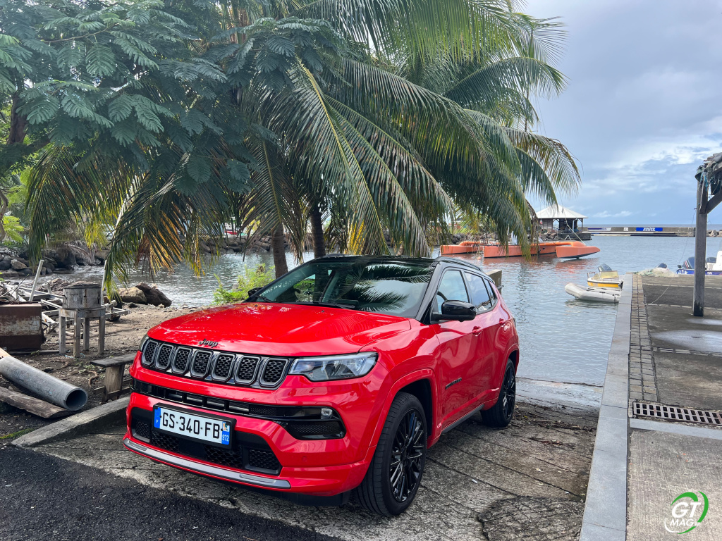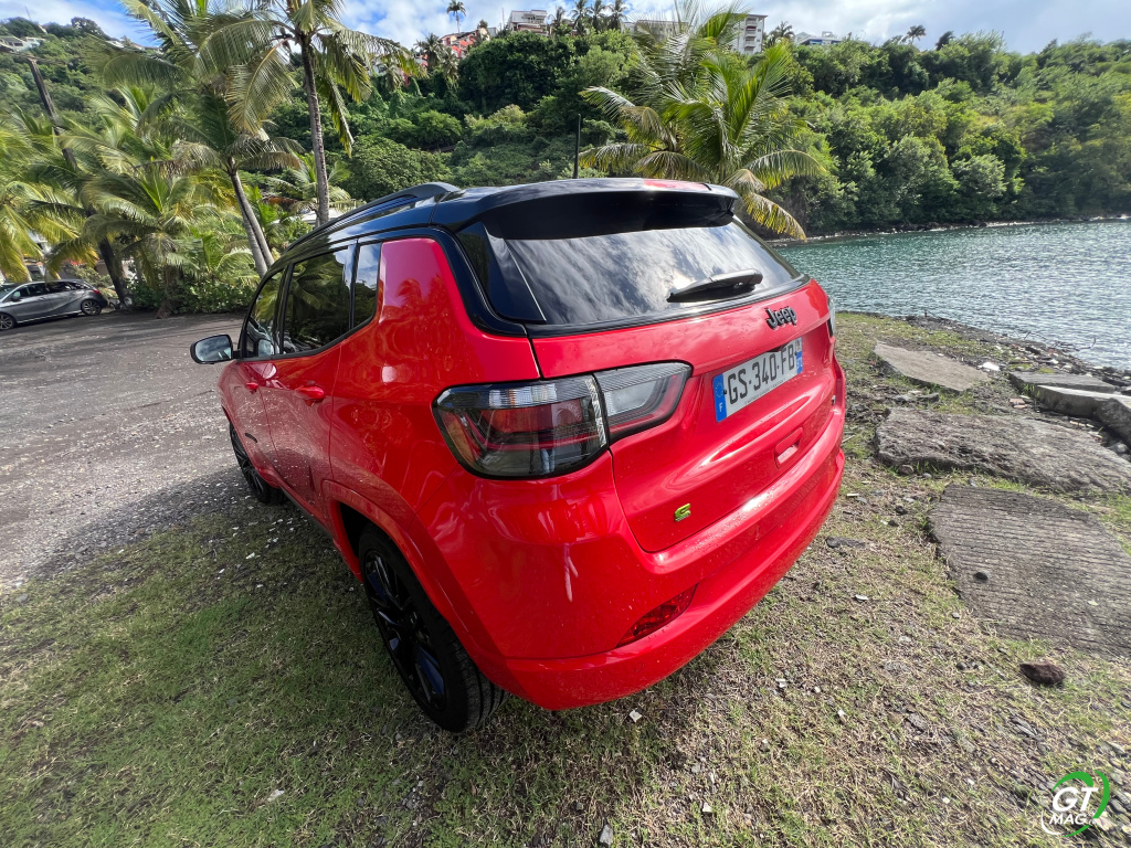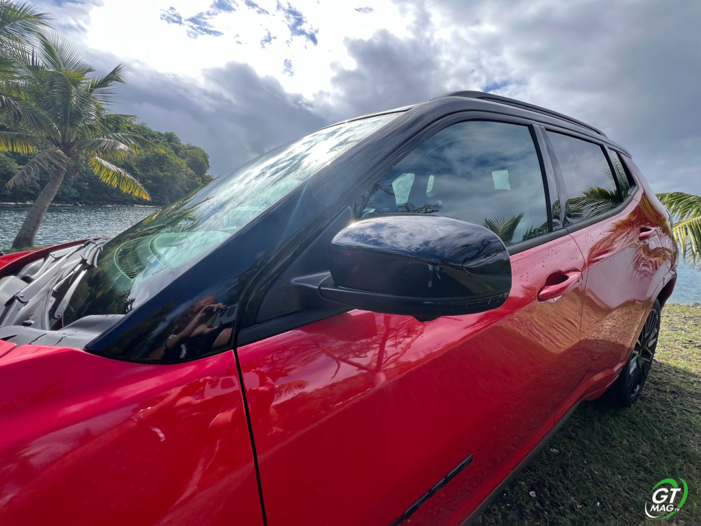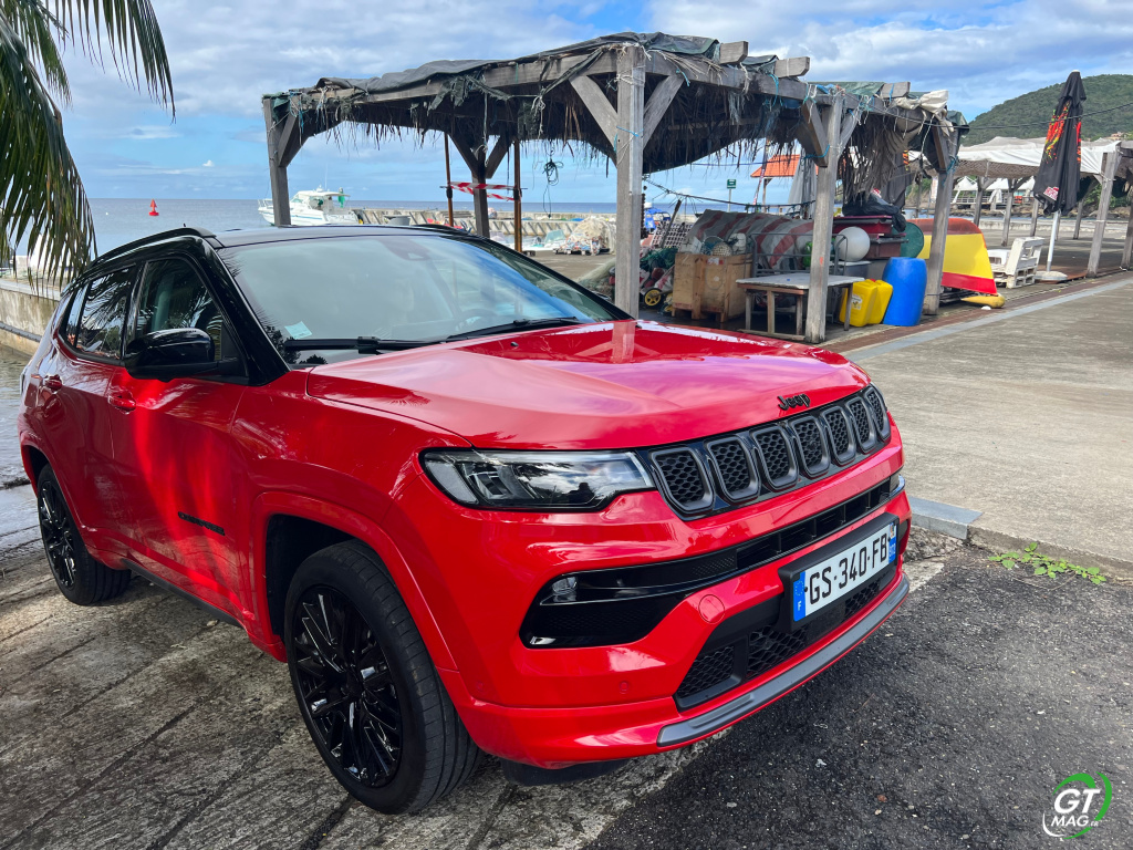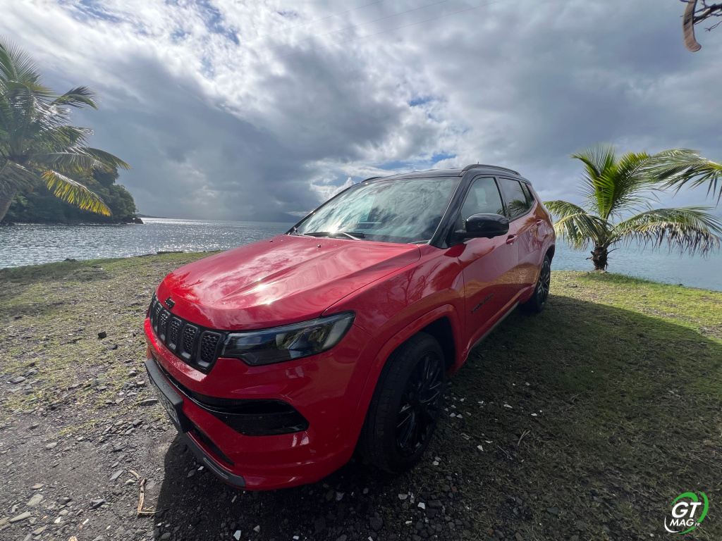 Retour chez Jeep ce matin distribué par Martinique Automobiles au Lamentin… Après le Jeep Renegade essayé il y a quelques semaines (A découvrir ici…), nous vous proposons l’essai du JEEP COMPASS en version hybride… L’hybridation légère de JEEP repose sur un coup de pousse électrique au démarrage et permet une brève conduite électrique à basse vitesse : par exemple, lors de manœuvres de stationnement ou de la conduite au pas dans une circulation urbaine dense. Il s’agit d’une assistance électrique simple et limitée, mais elle est efficace puisque la consommation annoncée de 6,1 l/100 km est tout à fait réalisable dans la réalité.