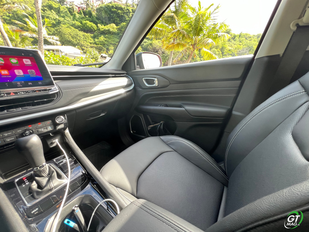 L’intérieur est je le pense vraiment bien dessiné dans les finitions les plus hautes avec de jolis matériaux et du cuir sur le tableau de bord. Une planche de bord sobre et simplifiée, dominée par le grand écran central de 10″1 au design très moderne et aux menus facilement accessibles. Face au poste de pilotage le conducteur découvre également un compteur digital qui lui offre toutes les informations nécessaires. Le volant est bien dessiné on l’adopte très rapidement. Enfin, les sièges sont parfaitement conçus et la position de conduite est excellente… Il me manque ce matin une planche à voile et un peu de temps pour pratiquer et ce serait le bonheur parfait…