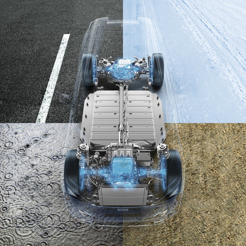 La batterie haute capacité a été intégrée sous le plancher, abaissant le centre de gravité pour améliorer la maniabilité et minimiser son encombrement afin d'augmenter l'espace à bord. De plus, le pack batterie forme, avec la carrosserie, une structure d'un seul tenant pour améliorer la rigidité du véhicule. Sachez que les angles d'attaque, de fuite et de franchissement ont été calculés par les ingénieurs japonais afin de préserver la carrosserie et la batterie intégrée au châssis. Qui peut douter du savoir faire indéniable de Subaru en matière d’adhérence au sol ? Aussi bien dans ses berlines thermiques monstres de puissances que dans ses SUV à la pointe du marché, la maîtrise du 4 roues motrices (AWD) est un fer de lance une vraie philosophie pour cette marque d’exception…