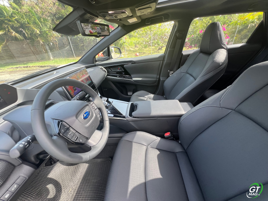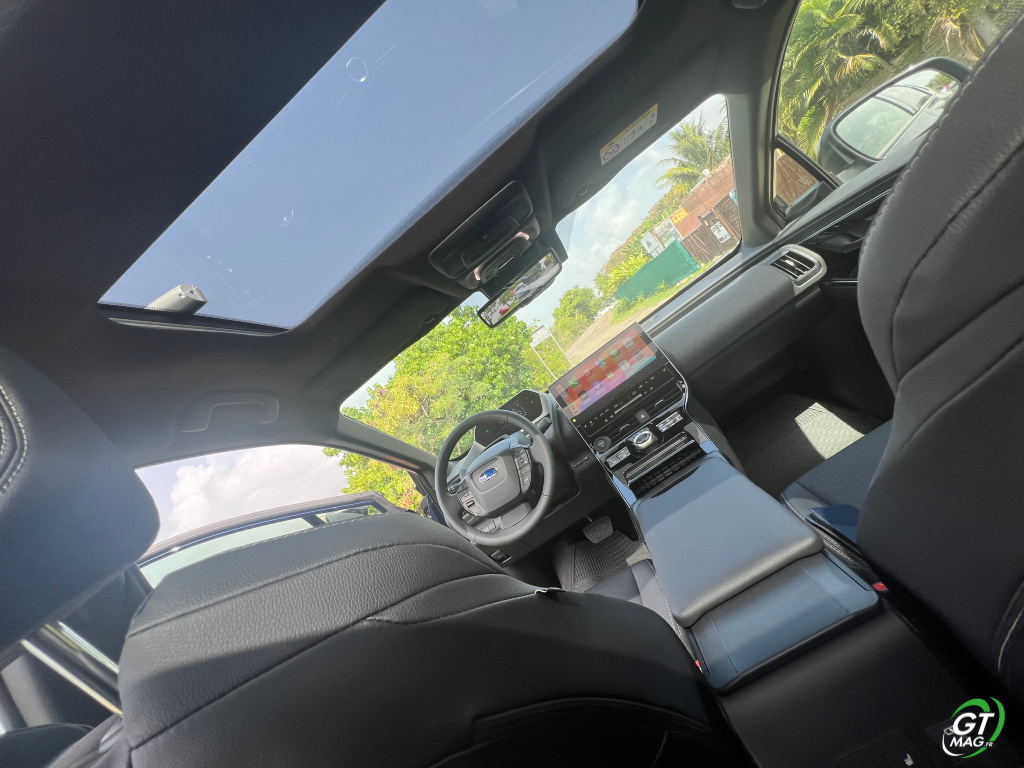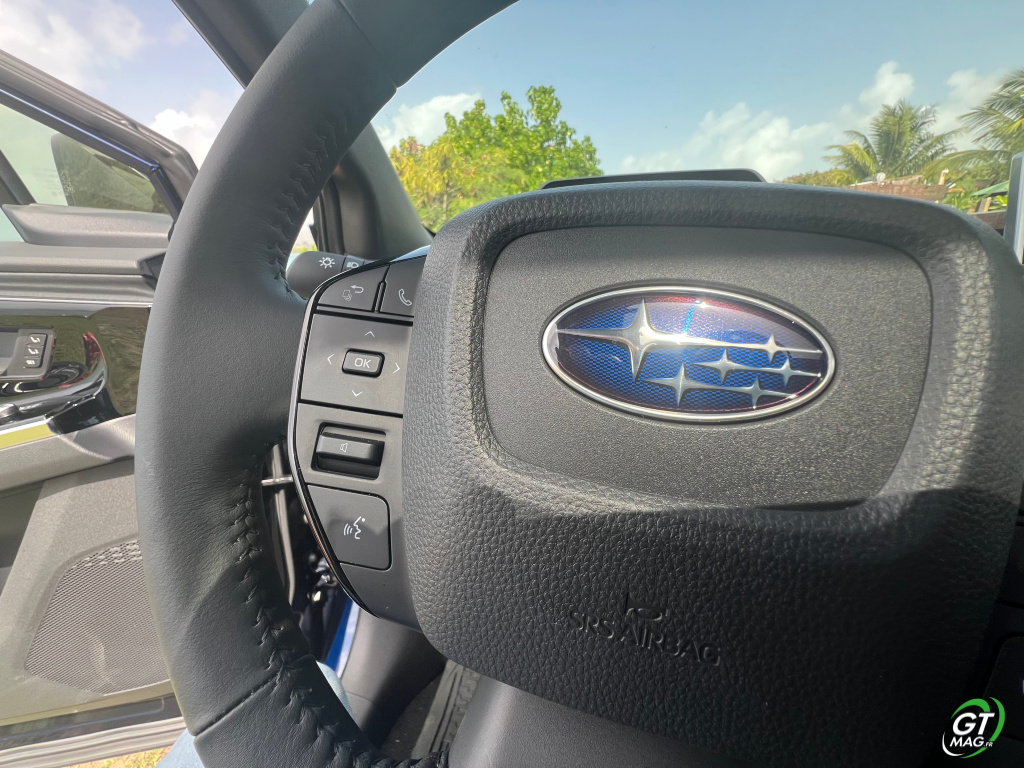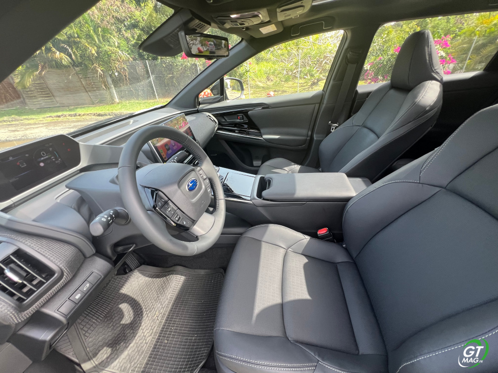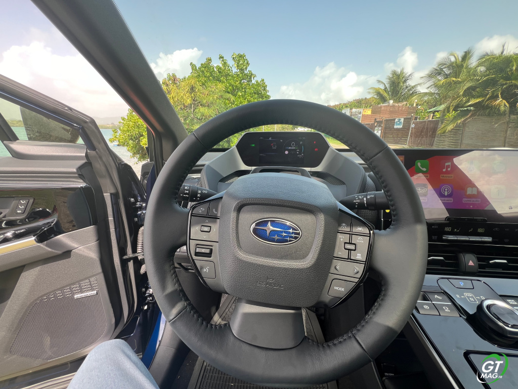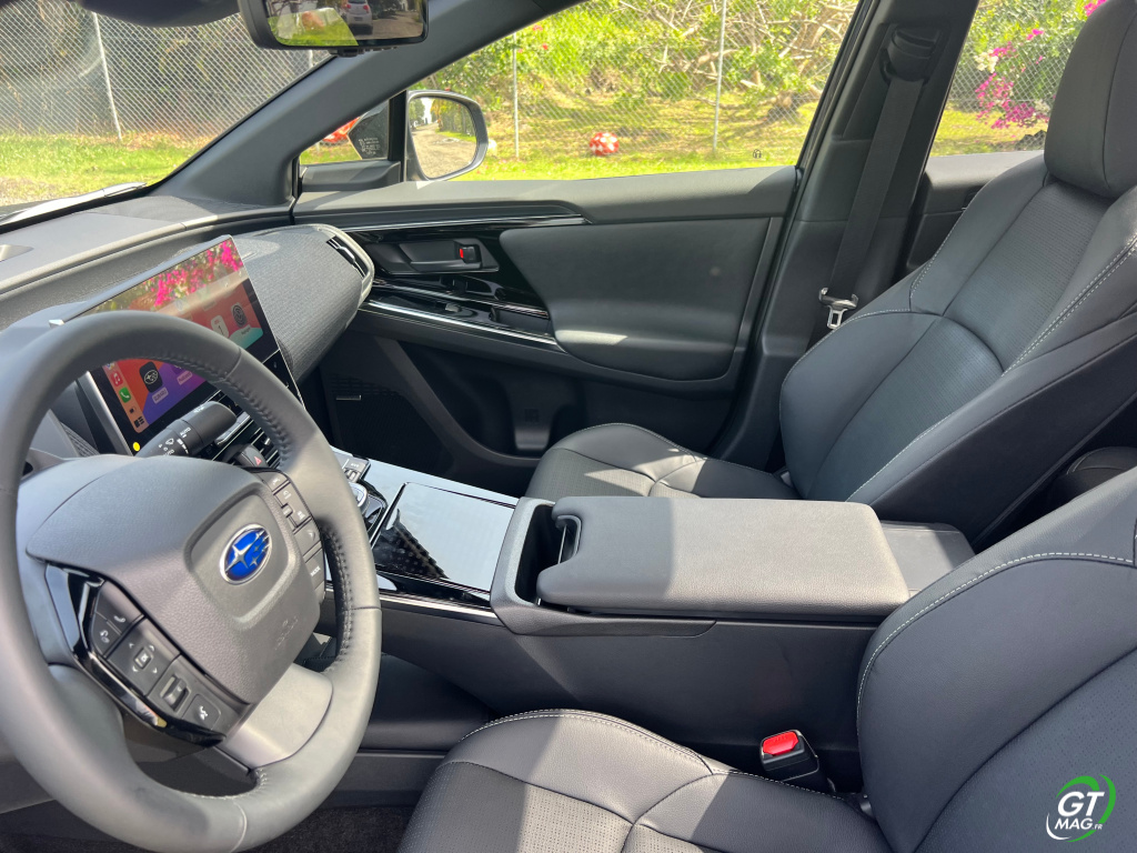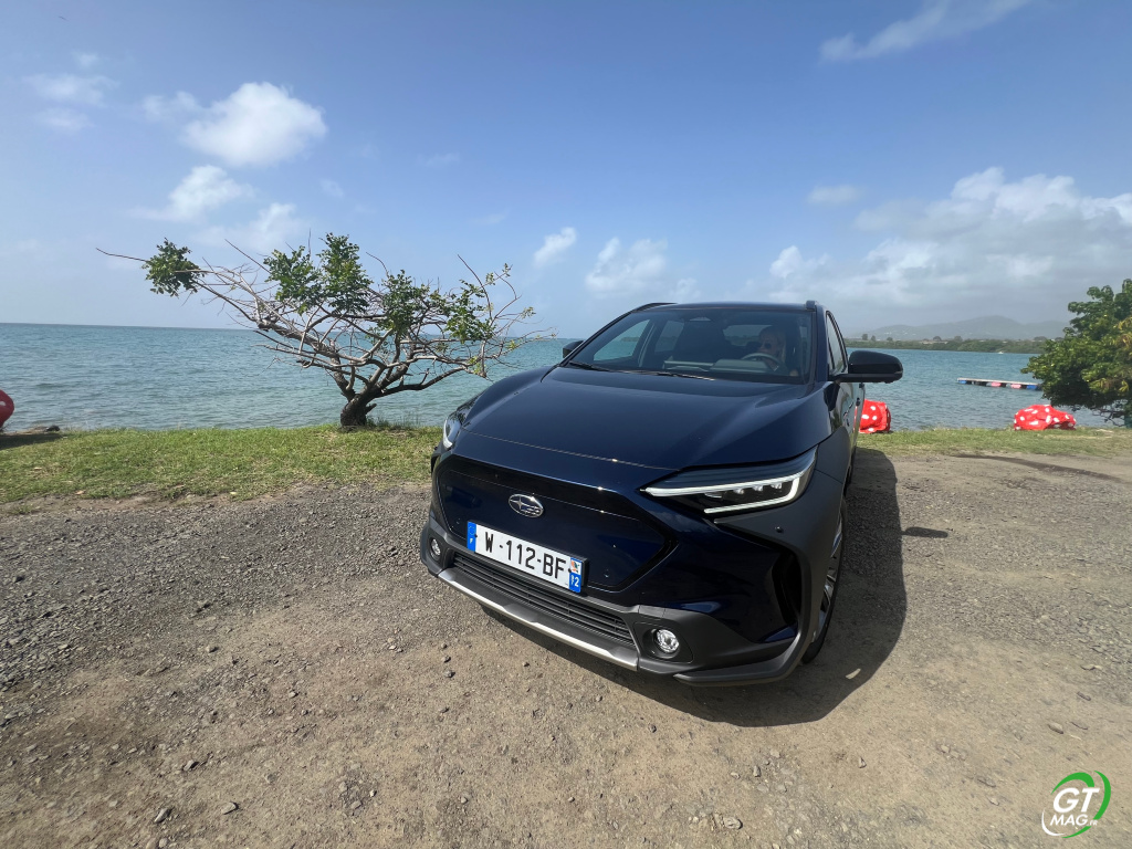 Nous sommes plutôt conquis par le Subaru Solterra qui propose une sécurité de conduite rare sur son segment. Il est doux, silencieux, et ses suspensions, associées à une garde au sol relevée, permettent des sorties plages ou des aventures entre nos mornes confortables. Il déambule au gré de votre conduite tantôt sportif tantôt pépère silencieux… En temps de pluie sa transmission intégrale permanente autorise une très bonne tenue de route et des capacités off-road qui séduira nos infirmières. Sa garde au sol de 211 mm et ses angles d’attaque et de sortie généreux lui permettent de franchir des obstacles sans trop de difficultés… Le Xmode garantit encore plus de possibilités, peu importe les conditions de montée ou de descente. Il bénéficie également du système EyeSight qui regroupe plusieurs aides à la conduite comme le régulateur adaptatif, l’assistance au maintien dans la voie ou le freinage d’urgence automatique. A vous de l’essayer maintenant pour mieux vous rendre compte de la belle qualité de ce modèle 100% électrique de Subaru !!!