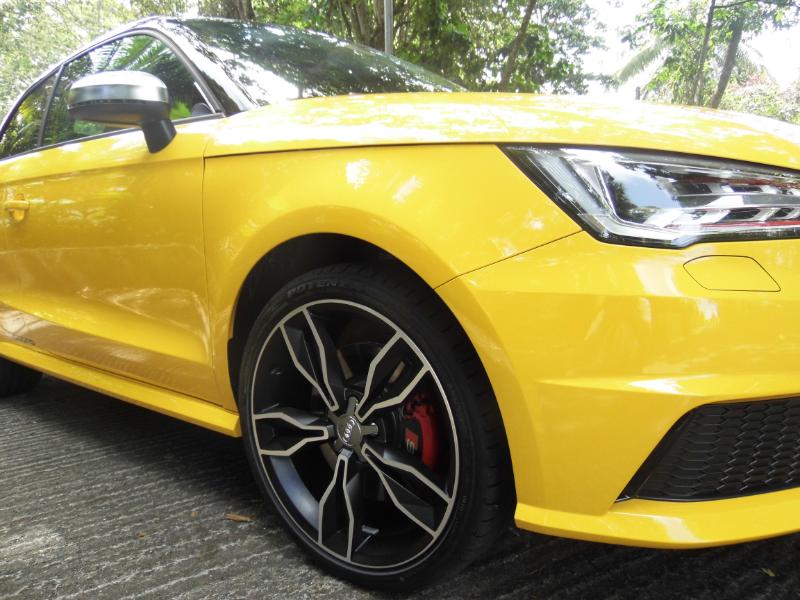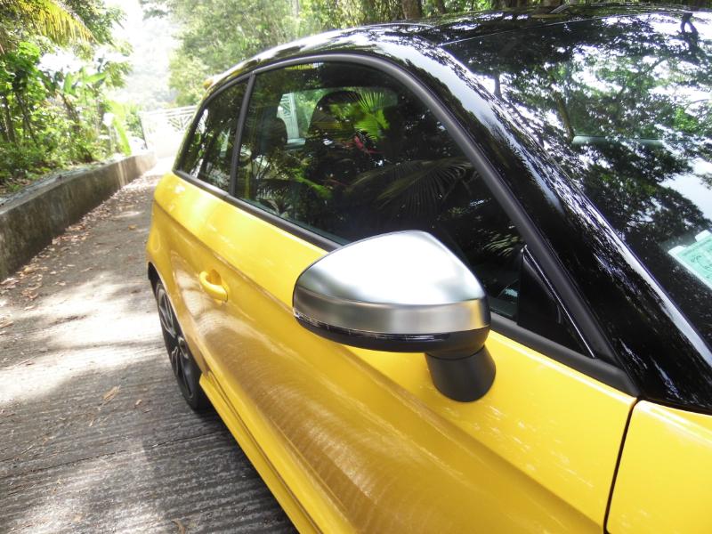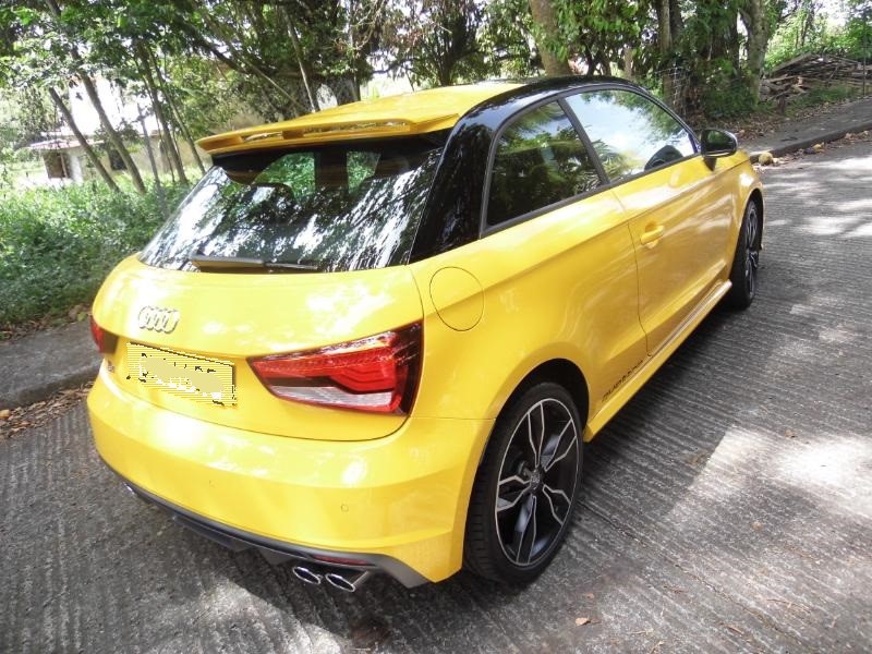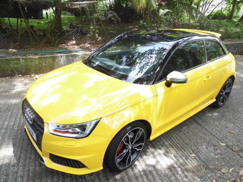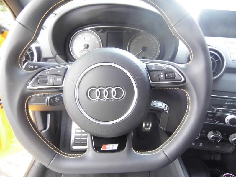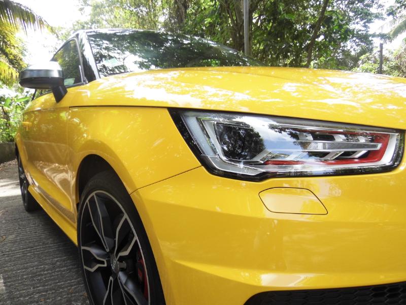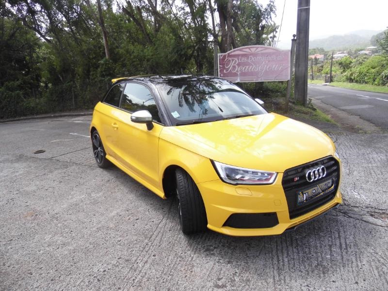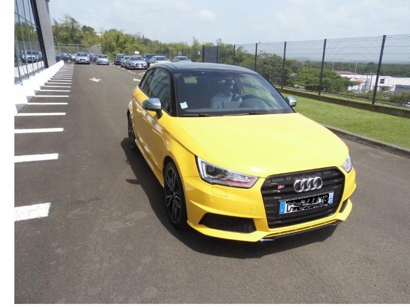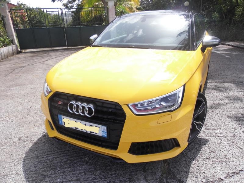 Responsable commercialAUDI Martinique et non moins très bon pilote de m’accompagner pour me faire découvrir le dernier phénomène AUDI de la concession… La S1 Sportback 2.l TFSI 3 portes toute de jaune vêtue et agrémentée d’un bon 231 ch… Miam… Bruno Symphor responsable commercial AUDI Martinique Directionles routes de Palmiste en toute sécurité l’idée étant de découvrir la qualité d’accélération de la petite sportive et plus généralement son confort de conduite… Dés les premiers tours de roues Bruno me fait remarquer la musique de la motorisation S1,le fameux 2 l TFSI de 231 ch et, pas de doute, ce n’est pas une voiture pour Grand-Maman diantre non… L'élégance aussi, elle passe par un becquet proéminent à l'arrière, des étriers de freins rouges et surtout quatre sorties d'échappement qui en disent long sur ce que vous avez sous le capot. A l'intérieur, au cas où vous l'auriez oublié, rien ne manque pour vous rappeler que vous êtes à bord d'une S1 : sur le volant, dans le compte-tours,dans l'ordinateur de bord et dans le cuir des sièges avant, on trouve le logo. Parlons des choses sérieuses : le moteur. Jusqu'à présent, la version de "grande série" la plus puissante était l'A1 TFSI 185 ch, deux roues motrices. Déjà un beau jouet. Avec la S1, on franchit un palier puisque la cylindrée du quatre-cylindres turbo essence passe à2 litres (1,4 litre pour la TFSI 185), la puissance atteint231 ch, la transmission devient uneQuattro et la boîte de vitesses forcément manuelle. Les accros à la DSG (pardon, S-Tronic) devront prendre leur mal en patience puisqu'une version automatique n'est pas prévue avant mi-2015. Et encore, ce n’est pas sûr ! L'avantage de la boîte manuelle, c'est qu'elle garantit le plaisir de conduire. OK, c'est moins efficace que des palettes mais au moins on s'active à jouer du levier, donc on s'amuse plus. Pour ajouter à la liste des festivités, la S1 est équipée de série (précision importante)du Drive Select qui propose 3 modes (Efficiency, Auto et Sport).