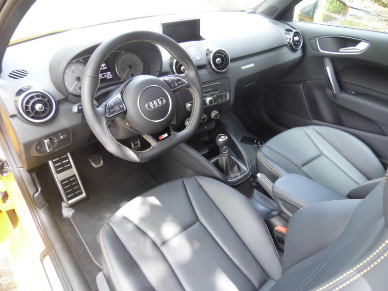 La différence se fait sentir dans le volant (direction plus ferme en Sport) et dans la suspension. A noter quela suspension pilotée de laS1 n'est pas aussi sophistiquée qu'une Magnetic Ride : l'amortissement varie du fait de la pression du gaz, pas avec le passage d'un courant électrique. Au niveau sonore, on entend aussi clairement une différence puisque le mode Sport active un amplificateur des fréquences audioqui permet de mieux entendre les bruits du moteur. Je suis surpris par le côté ‘Crabe’ de la voiture qui s’accroche bien à plat sur l’asphalte qui nous mène vers la Ménard…l'Audi S1 profite au maximum de son empattement court qui lui confère une terrible agilité. La transmissionQuattro intervient en courbe en forçant la roue arrière extérieure à aider l'auto à tourner. La S1 semble posée sur des rails, imperturbable. Elle motrice, elle freine fort, ne faiblit pas... La souplesse du moteur est phénoménale. Et même en tapant dans les tours, la consommation reste (relativement) raisonnable : autour de 13 litres de moyenne. A allure plus posée, on arrive sans peine aux 7,4 litres annoncés par l'homologation. A noter que le modeEfficiency se traduit par une "économie" d'environ 1 litre par rapport au mode Sport. On perd en sonorité et en sensations mais on gagne aussi en confort. A bord, ça va sans dire mais on vous le dit quand même : la position de conduite est idéale. Pas question de i-cockpit ou autre élucubration, tout est à sa place, au bon endroit. Le guidage de la boîte, le diamètre du volant... Chacun trouvera sa "config".Bruno Symphor nous y à rajouté le toit en verre les gentes 18 pouces et l’ETC afin de rendre la S1 un Joujou Extra !