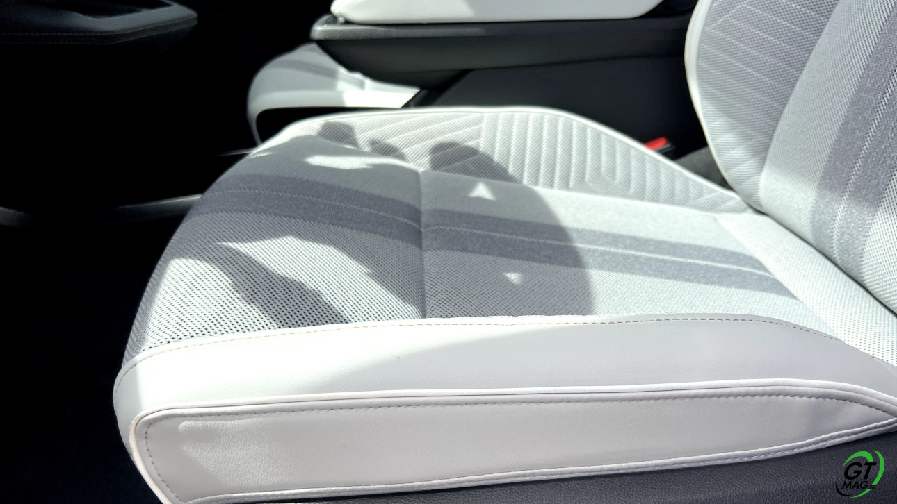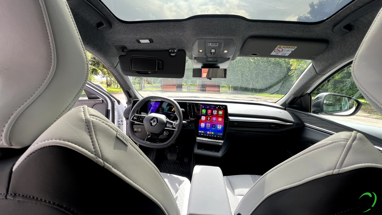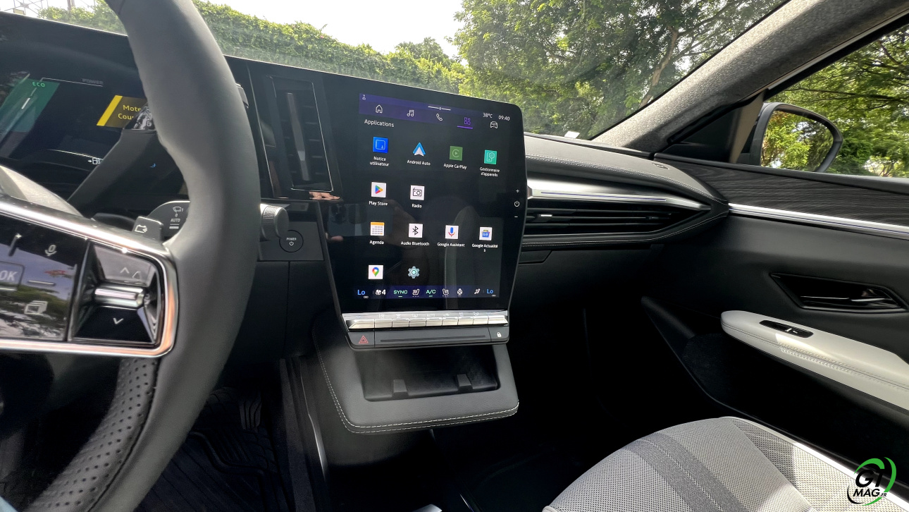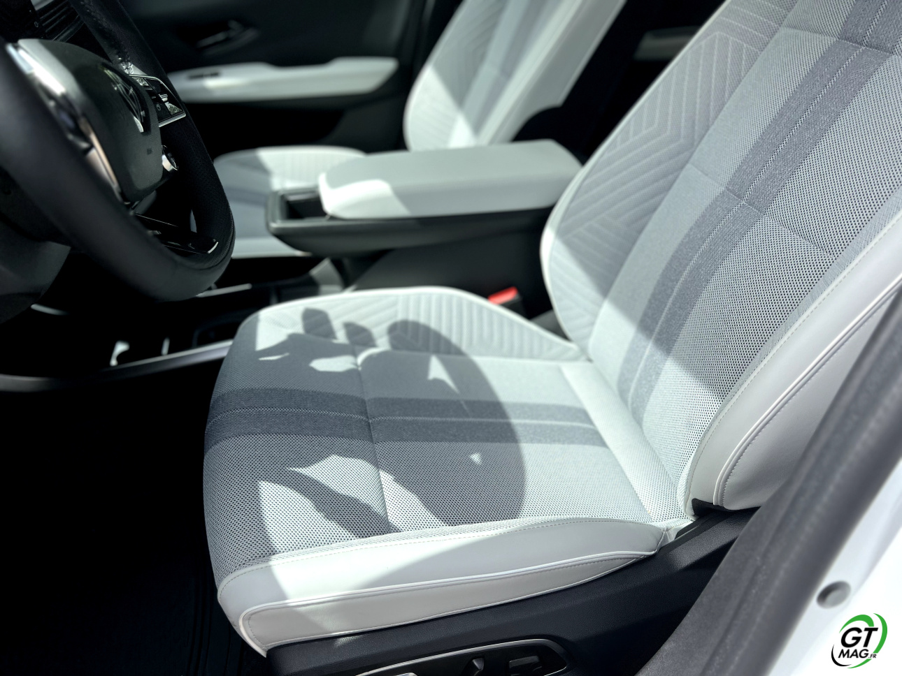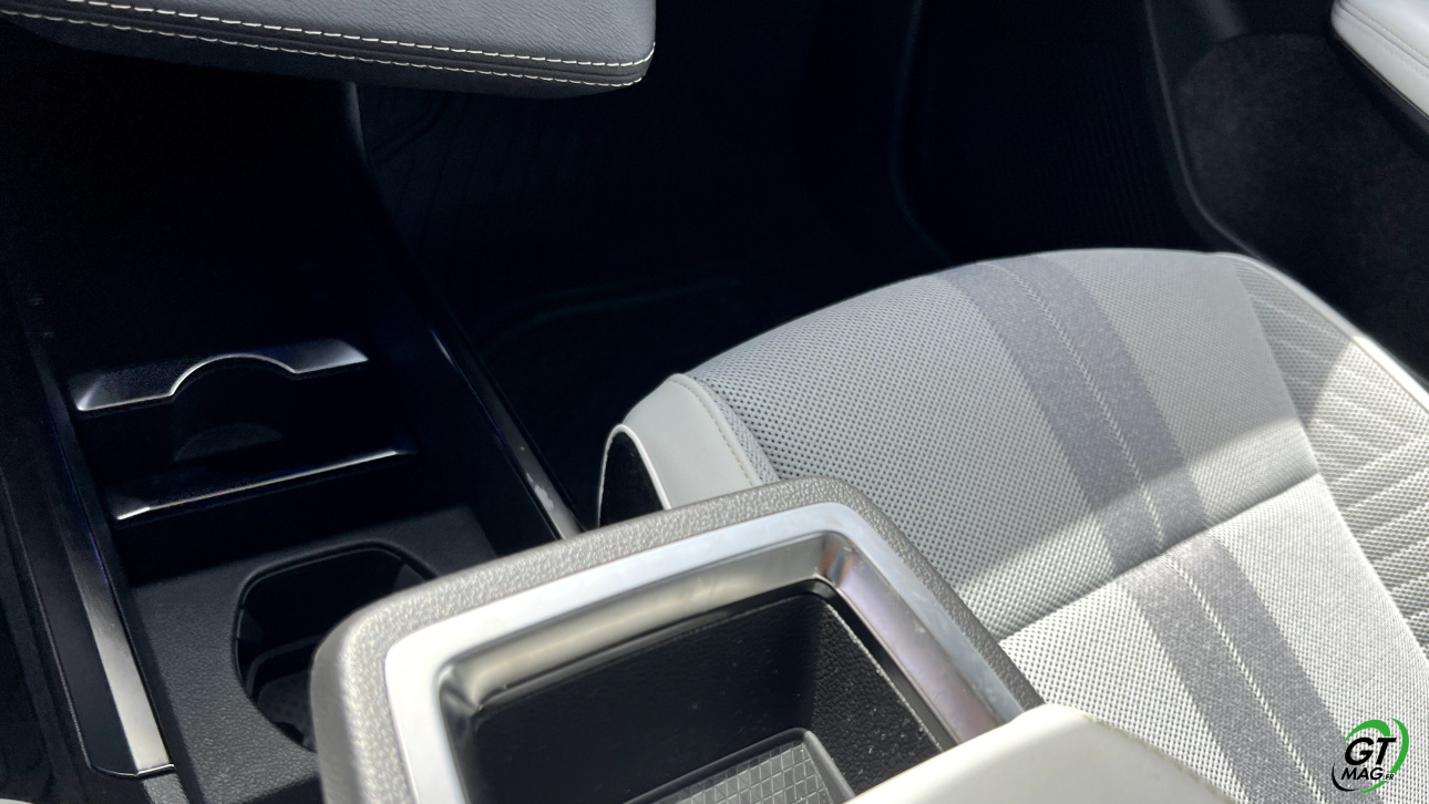 À l’intérieur, le constat est le même : la planche de bord – empruntée à la Mégane E-Tech – fait le plein de style et de technologies. Elle se compose de deux écrans de 12 », disposés en forme de L. Les équipements multimédia se commandent aisément et les rares commandes physiques permettent de contrôler facilement certaines fonctionnalités, dont la climatisation. La présentation globale se veut relativement soignée, bien que les plastiques puissent paraitre un peu durs à certains. Notons d’ailleurs que la 5e génération du Renault Scénic abandonne totalement le cuir, y compris dans ses versions haut de gamme, au profit de matériaux recyclables et recyclés. 40% de matériaux sont d’ailleurs recyclables dans le Scénic E-TECH !