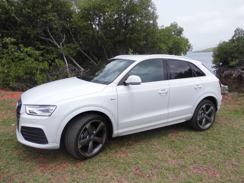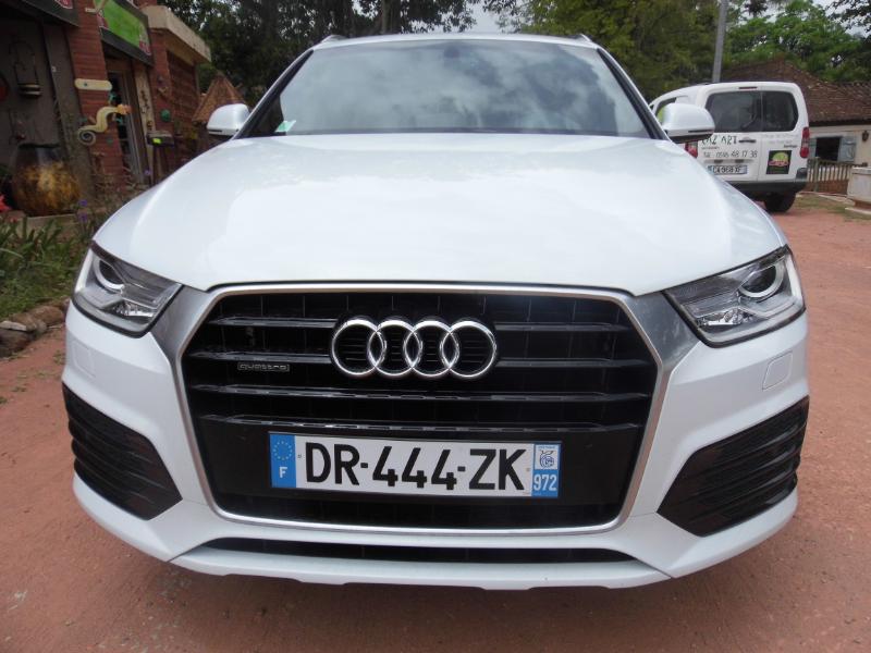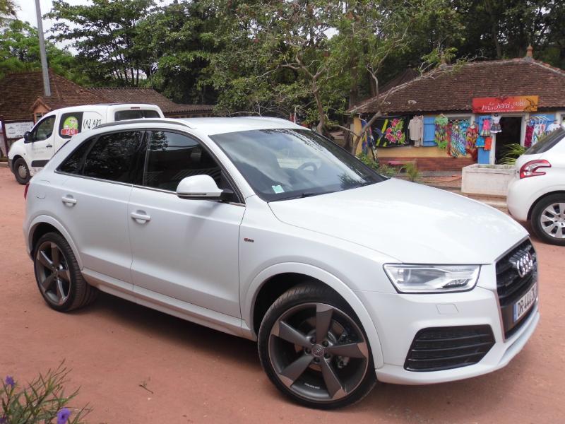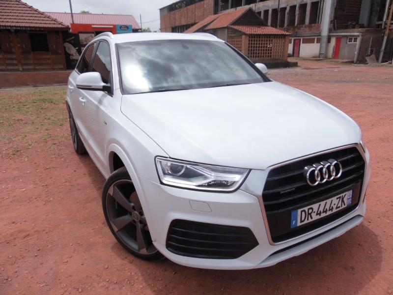 L’Audi Q3 est un SUV qui compte. AUDI offre à son SUV une petite cure de rajeunissement. Au programme, des évolutions moteurs, de nouveaux équipements et unetoute nouvelle calandre Singleframe inédite. Style Bruno Symphor, (Responsable commercial),nous remet ce matin la clé deson tout nouveau Q3 chez AUDI Martinique.La nouvelle machine AUDI présente une réelle nouveauté de style qui sera déclinée sur tous les prochains SUV de la marque. Véritable signature,la calandre Singleframe présente un effet 3D et rejoint désormais les blocs optiques. Une évolution significative, et commune avec le nouveau Q7 qui sera lancé dans quelques mois (Début 2017). Cette nouvelle calandre peut également s’habiller de noir avec le pack esthétique noir.La finition S Line est ici agrémentée du kit carrosserie S Line optionnel, mais aussi de jantes alliage de 17 pouces : Dans un autre esprit, la clientèle peut préférerle pack offroad avec des élargisseurs d’ailes et des éléments noir mat pour les boucliers.