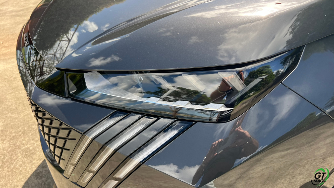 Côté esthétique justement difficile de rester indifférente ou indifférent devant cette poupe plutôt agressive… Le nouveau 3008 change tout ou presque en termes de style avec un esprit de SUV coupé. Peugeot a donc choisi un profil “fastback” plutôt dans l’air du temps pour son SUV. Les changements sont bien perceptibles à l'avant, le nouveau 3008 s’éloigne assurément de sa seconde génération. La calandre sans délimitation est imposante, comme le bouclier d'ailleurs… Les phares Matrix Led plus fins sont positionnés très haut, juste sous le capot. Les trois griffes caractéristiques des nouveaux modèles de la marque se prolongent jusqu'aux phares, dont la signature lumineuse forme désormais trois lignes. L'arrière est massif et sculpté ce qui rend ce nouveau 3008 très dynamique sachant que les designers de la marque qui malgré un véhicule plus haut et plus long sont parvenus à abaisser son Cx de 0,31 sur la précédente version, à 0,28 sur ce nouveau E-3008. On remarquera également le nouveau lettrage Peugeot sur ce nouveau e-3008.