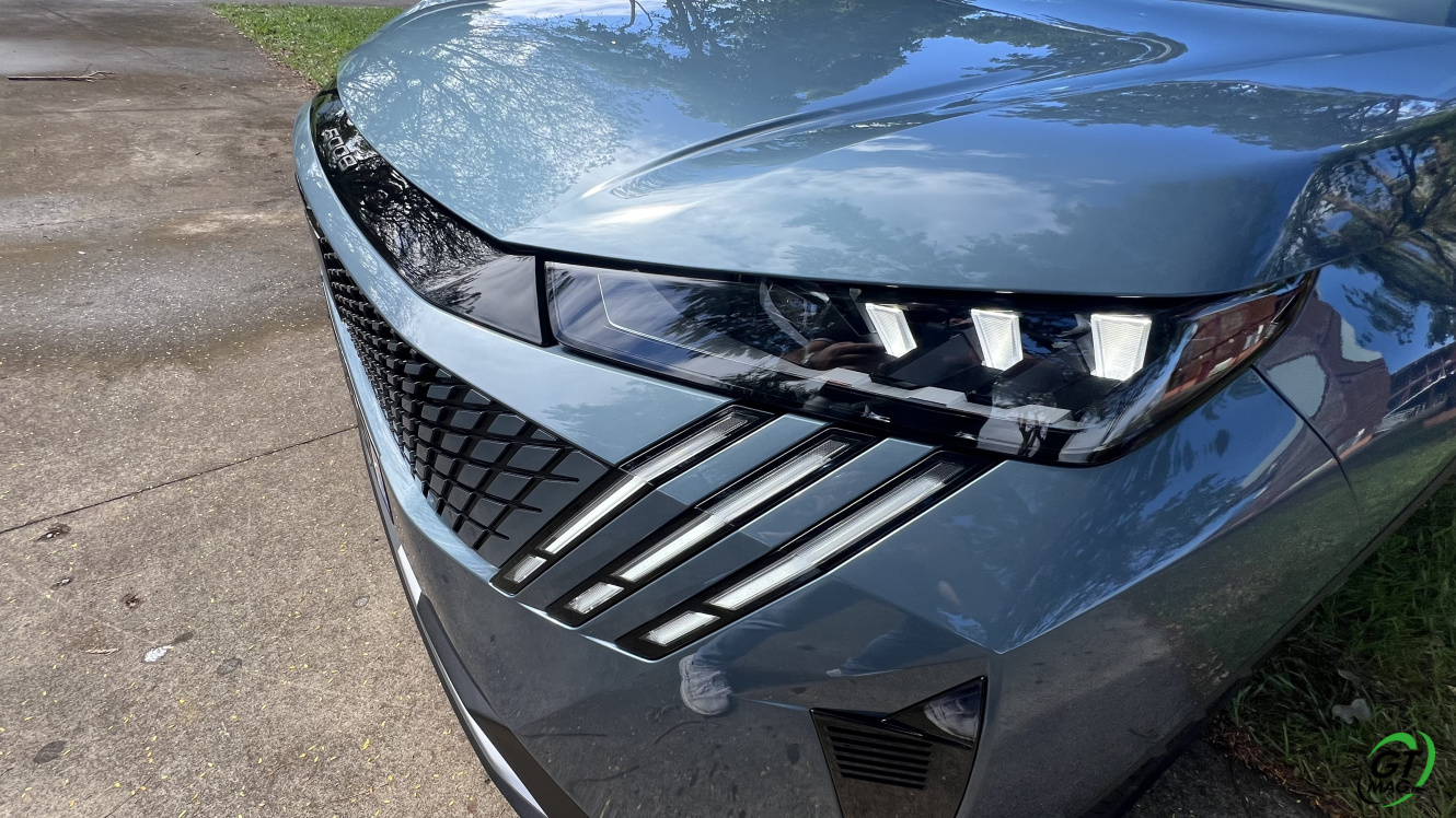 En matière esthétique depuis la seconde génération on se rapproche beaucoup plus du SUV que du monospace… Le nouveau Peugeot 5008 est doté d’une calandre spécialement tournée vers la puissance et la sportivité c’est mon impression au premier contact… Nul doute que dans le rétroviseur cette face avant impressionne… Le Peugeot 5008 GT Hybride disponible en version 7 places uniquement s’équipe des trois griffes fidèles à la signature Peugeot sous les phares et la calandre efface ses « délimitations », portant fièrement le nouveau logo de la marque. Elle en impose donc cette calandre synonyme de puissance tranquille…