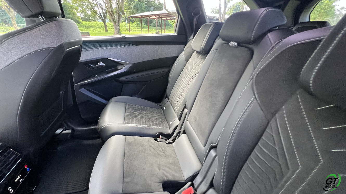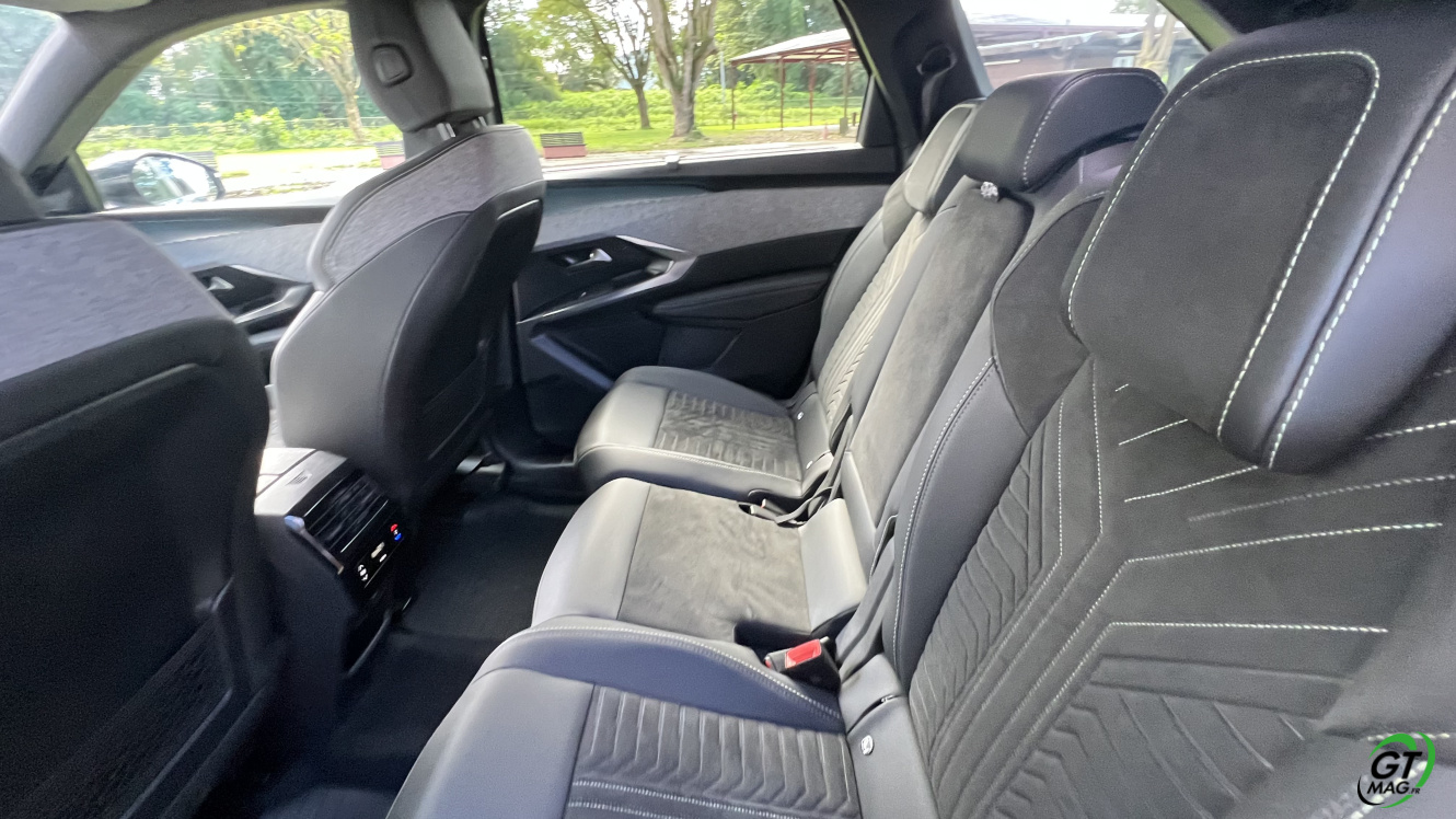 L’arrière reste identique les feux sont reliés par un bandeau. Néanmoins, le nouveau Peugeot 5008 hybride propose un hayon beaucoup moins incliné que le 3008. Il rompt avec l’esprit d’un SUV « coupé » chers à la concurrence et conserve l’ADN d’une silhouette « carrée » proche de l’ancien 5008. Il faut bien qu’il puisse loger les passagers du troisième rang ; lui dont l’empattement s’étale sur 2,90 mètres. Les dimensions du 5008 sont désormais de 4791 mm x 1895 mm x 1694 mm. Son empattement s'allonge de 16 cm par rapport au 3008 pour atteindre 2901 mm on l’a vu. Le porte-à-faux arrière atteint quant à lui les 950 mm. De quoi offrir un espace généreux !
