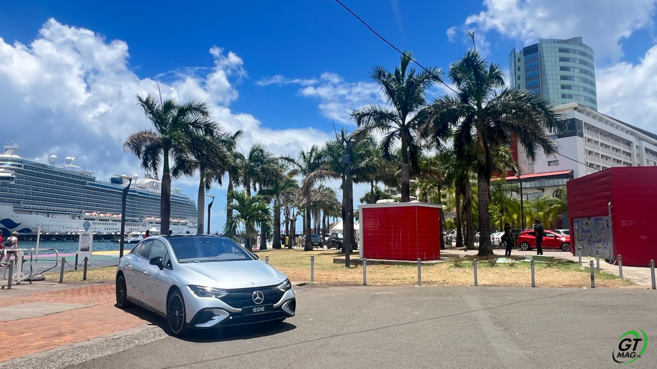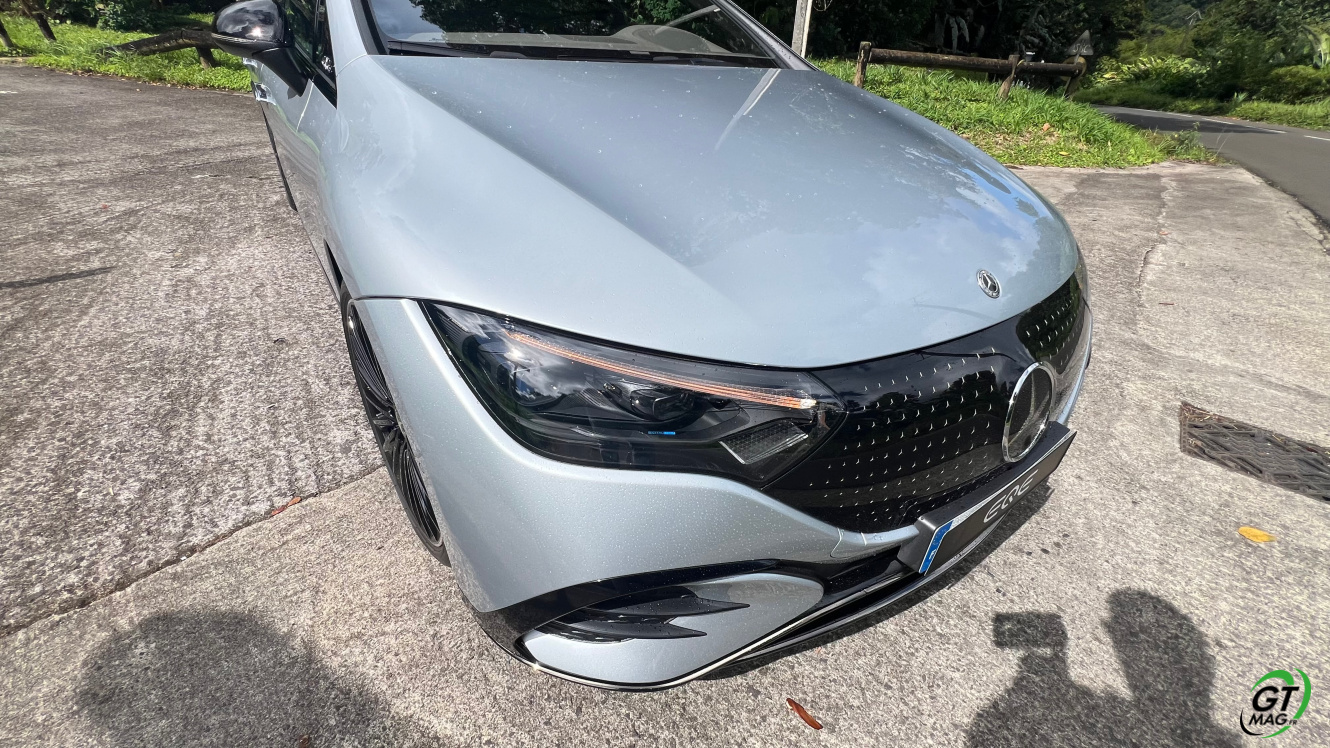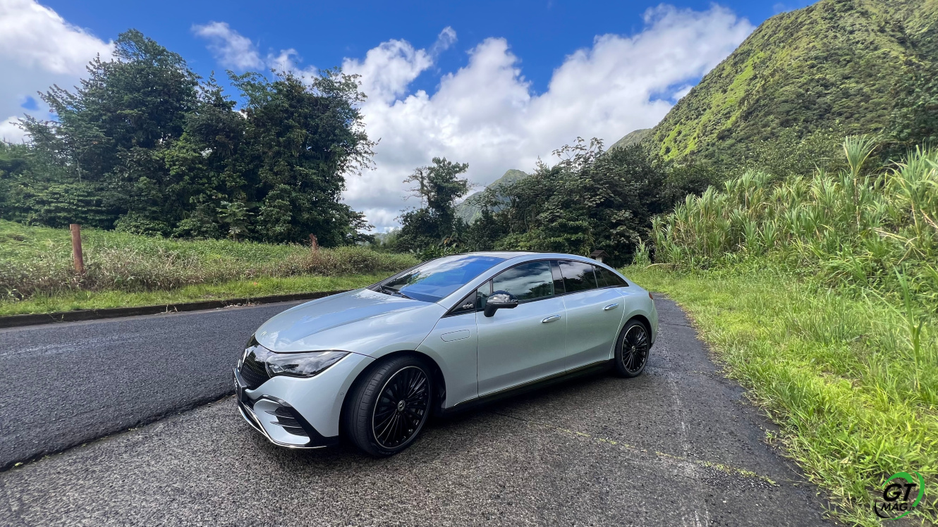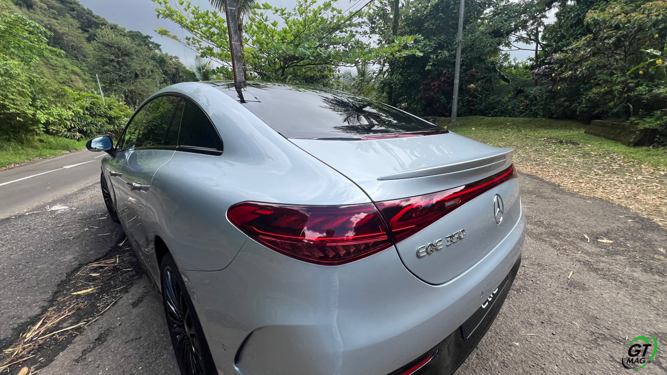 L’EQE est le deuxième modèle basé sur la plateforme 100 % électrique EVA2 après l’EQS. Elle intègre une batterie de 90,5 kWh de capacité lui offrant une autonomie comprise entre 567 et 654 km. Le moteur synchrone à aimants permanents, placé sur l’essieu arrière, développe 215 kW, soit l’équivalant de 292 ch. Il est alimenté par un bloc de batteries lithium-ion d’une capacité de 89 kWh net. Le couple de 565 Nm offre une réserve suffisante pour faire face à tout dépassement. En Martinique ou sur rocade et autoroute, les consommations moyennes relevées varient entre 18,5 et 20,5 kWh/100 km. De quoi parcourir 510 km en roulant très économiquement, soit sensiblement moins que les 650 km annoncés. Avec 6,4s sur le 0 à 100 km/h, l’EQE accélère correctement pour une limousine de 2.3 tonnes. Une recharge de 10 à 100% prend environ 8h30 sur une borne 11 kW et 5h sur une borne 22 kW.