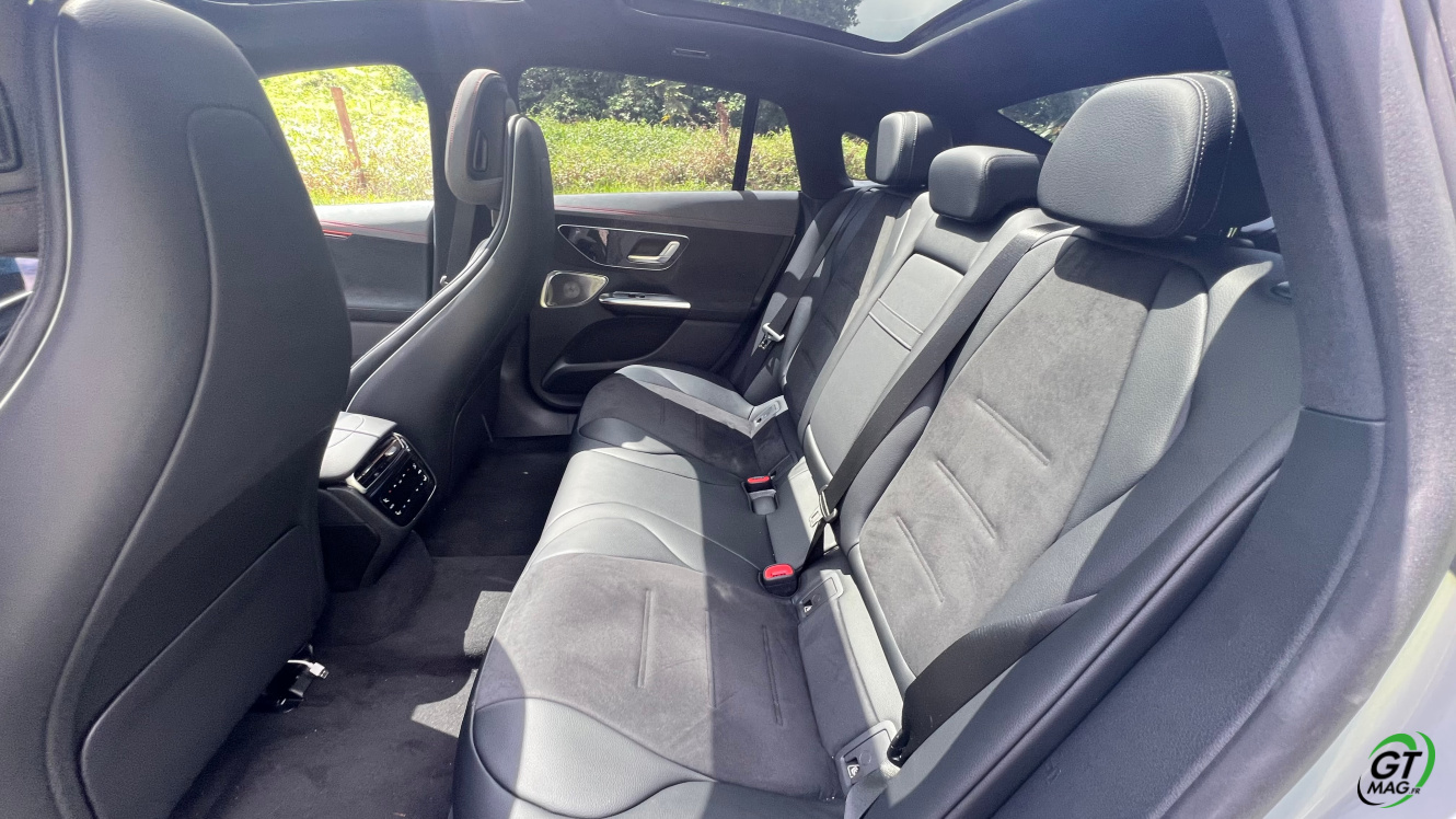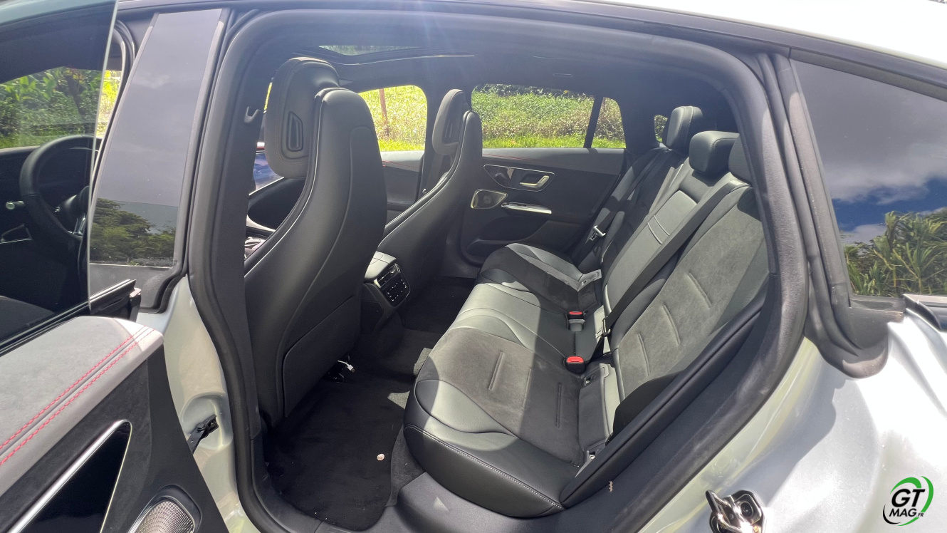A bord Les capacités du système d’infodivertissement MBUX sont particulièrement étendues, d’autant plus que l’utilisation est assez conviviale même pour les profanes. Le pack AMG Line rajoute une sellerie Sport avec des dossiers un peu plus enveloppants sans être des sièges baquets non plus. L’instrumentation numérique est claire et lisible, tandis que l’écran tactile de 12,8 pouces assure une expérience multimédia fluide avec une connectivité sans fil Apple CarPlay et Android Auto. La climatisation est gérée de manière efficace dans l’habitacle, et le régulateur de vitesse adaptatif ainsi que la caméra de recul ajoutent des fonctionnalités pratiques à l’expérience de conduite. L’affichage tête haute compris dans l’option Pack Premium Plus améliore la sécurité et la visibilité. Avec son empattement de 3,12 mètres de long, soit l’un des plus généreux du segment des berlines électriques, la Mercedes EQE offre de l’espace aux passagers arrière, bien que ce ne soit pas vraiment extraordinaire pour une berline d’environ 5 mètres de long. En ce qui concerne le coffre, Mercedes annonce propose 430 litres un peu juste…