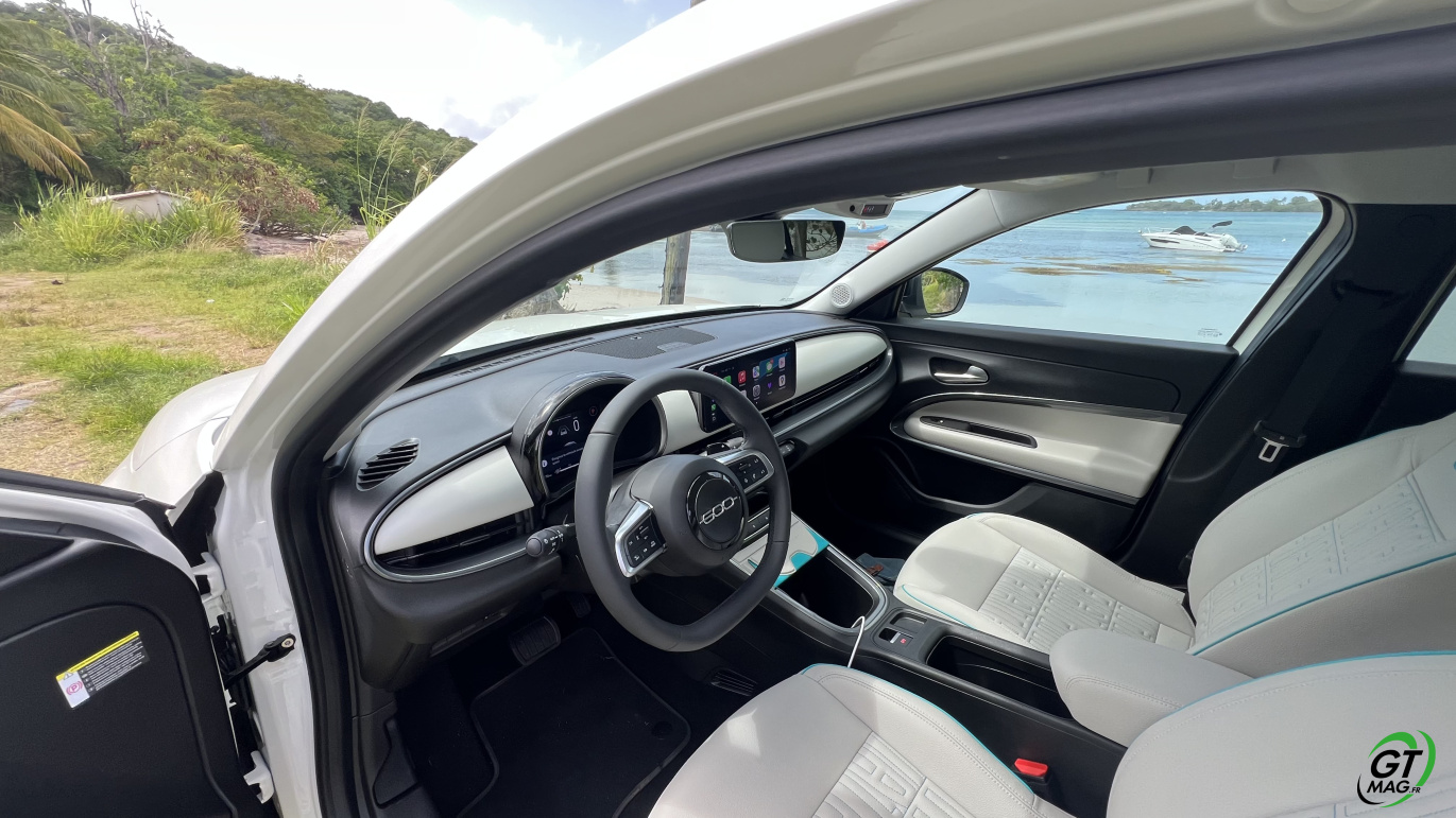 La finition haut de gamme de la Fiat 600, La Prima, ajoute la caméra de recul, les clignotants à LED, le chargeur à induction, la conduite autonome de niveau 2, la climatisation automatique, les détecteurs d’angles morts, le frein à main électrique, le hayon à ouverture mains libres, l’ouverture et le démarrage sans clés, le régulateur de vitesse adaptatif, la navigation, les vitres arrière surteintées et propose la sellerie ivoire soft touch et la lumière d'ambiance on est dans le raffinement à l'intérieur, c'est surtout la liste des équipements qui s'étoffe. Elle comprend notamment des aides à la conduite, comme la reconnaissance des panneaux de signalisation, le régulateur de vitesse adaptatif, la caméra de recul à 180°, des radars de stationnement à 360° et l'assistant aux embouteillages pour une conduite assistée de niveau 2. Côté confort, on peut compter sur l'ouverture et le démarrage sans clé, le hayon à ouverture électrique mains libres, la climatisation automatique et la navigation connectée.